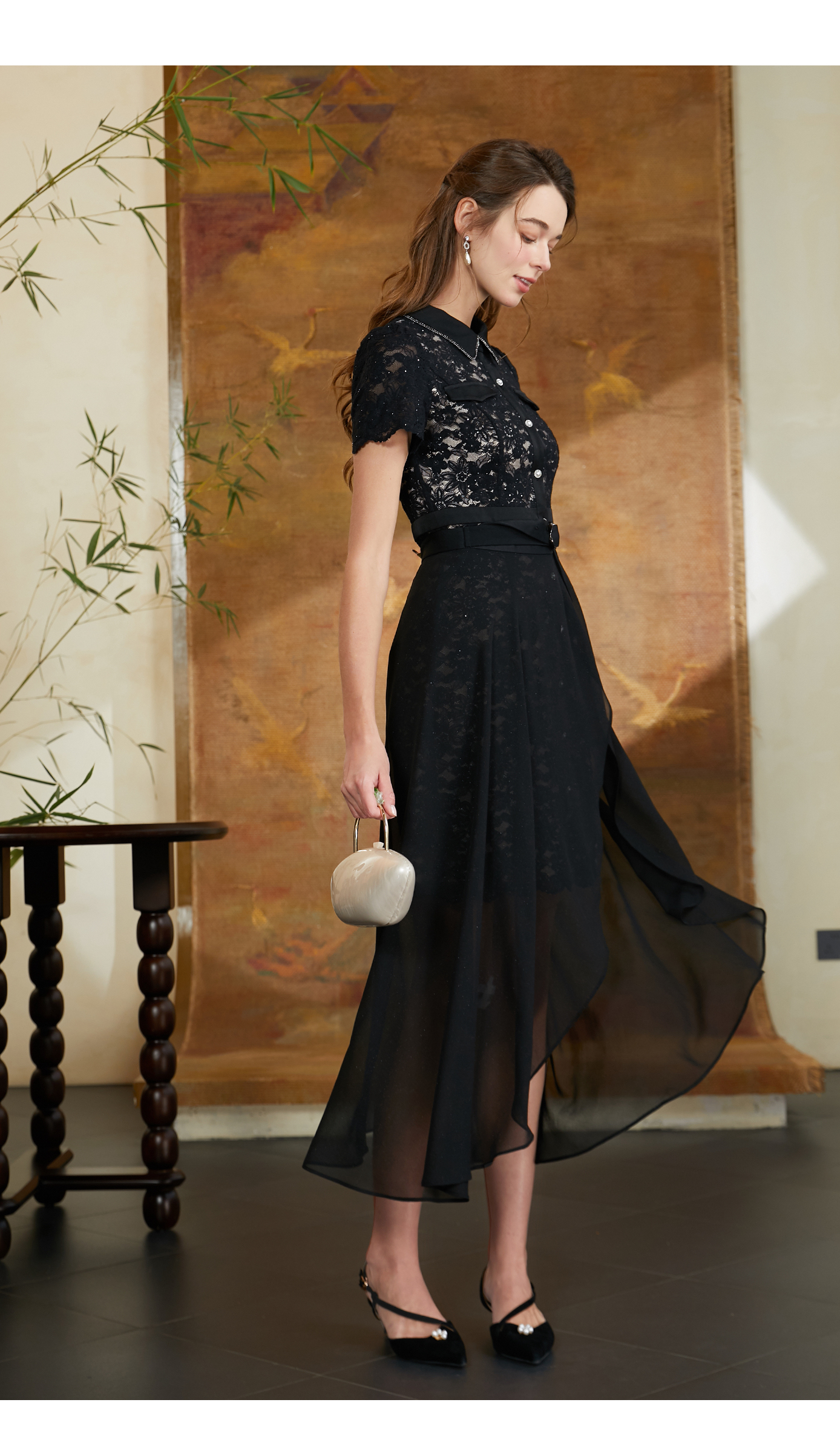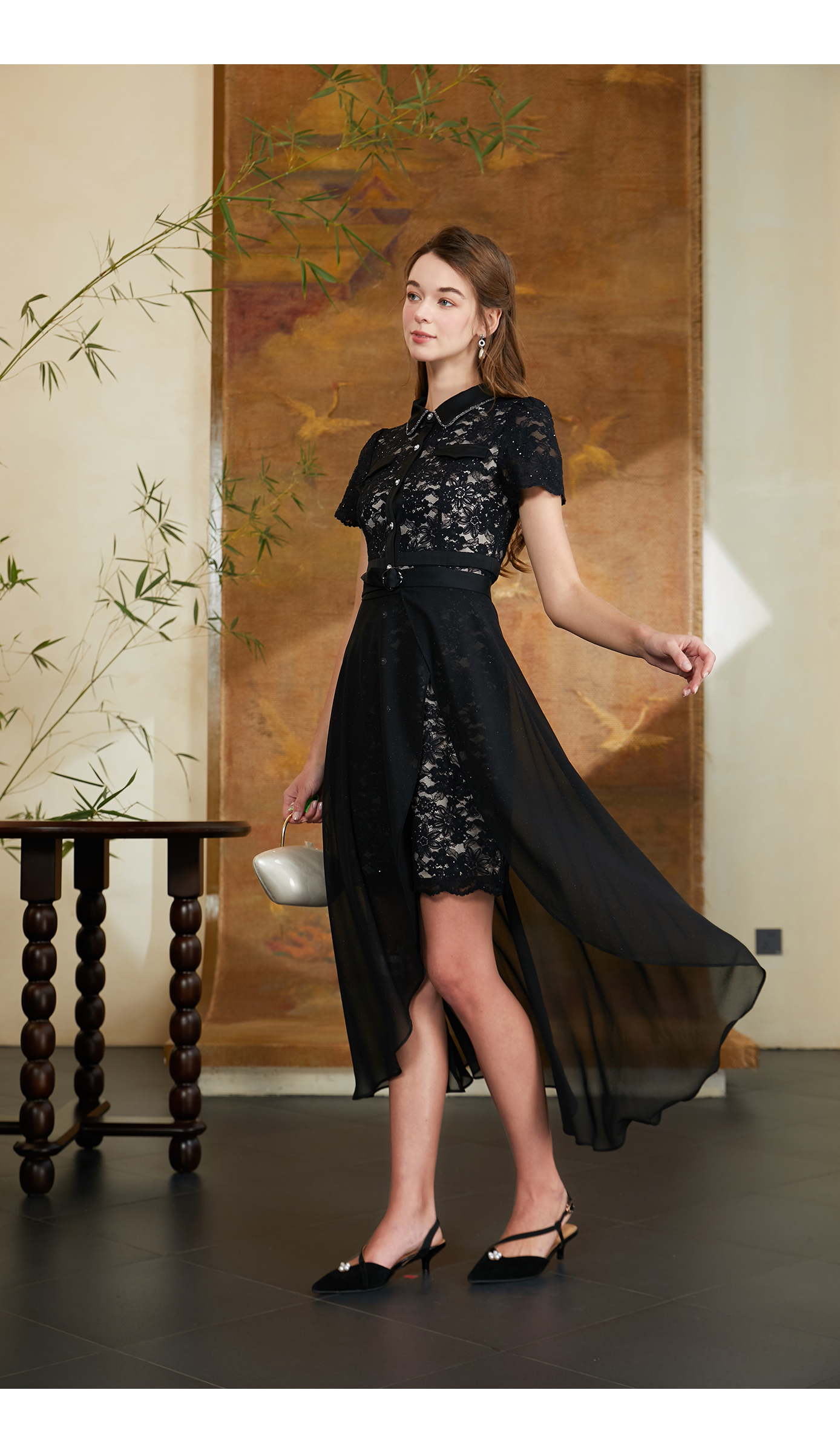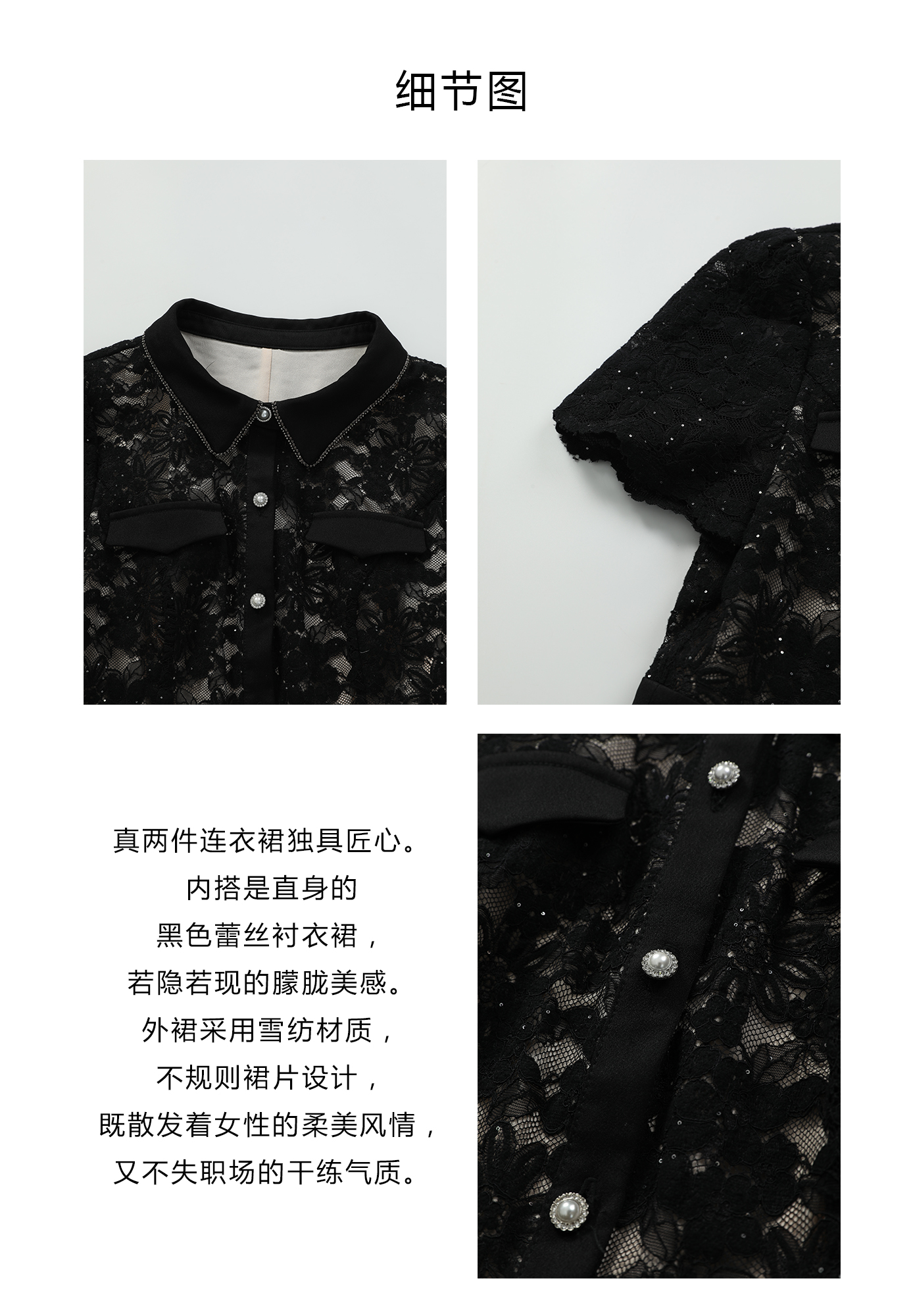 司歌两件套蕾丝连衣裙雪纺套装TO911027X
