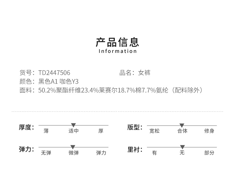 VIVIAN LIU薇薇安刘TD2447506秋女装新款斜插兜显瘦休闲萝卜长裤