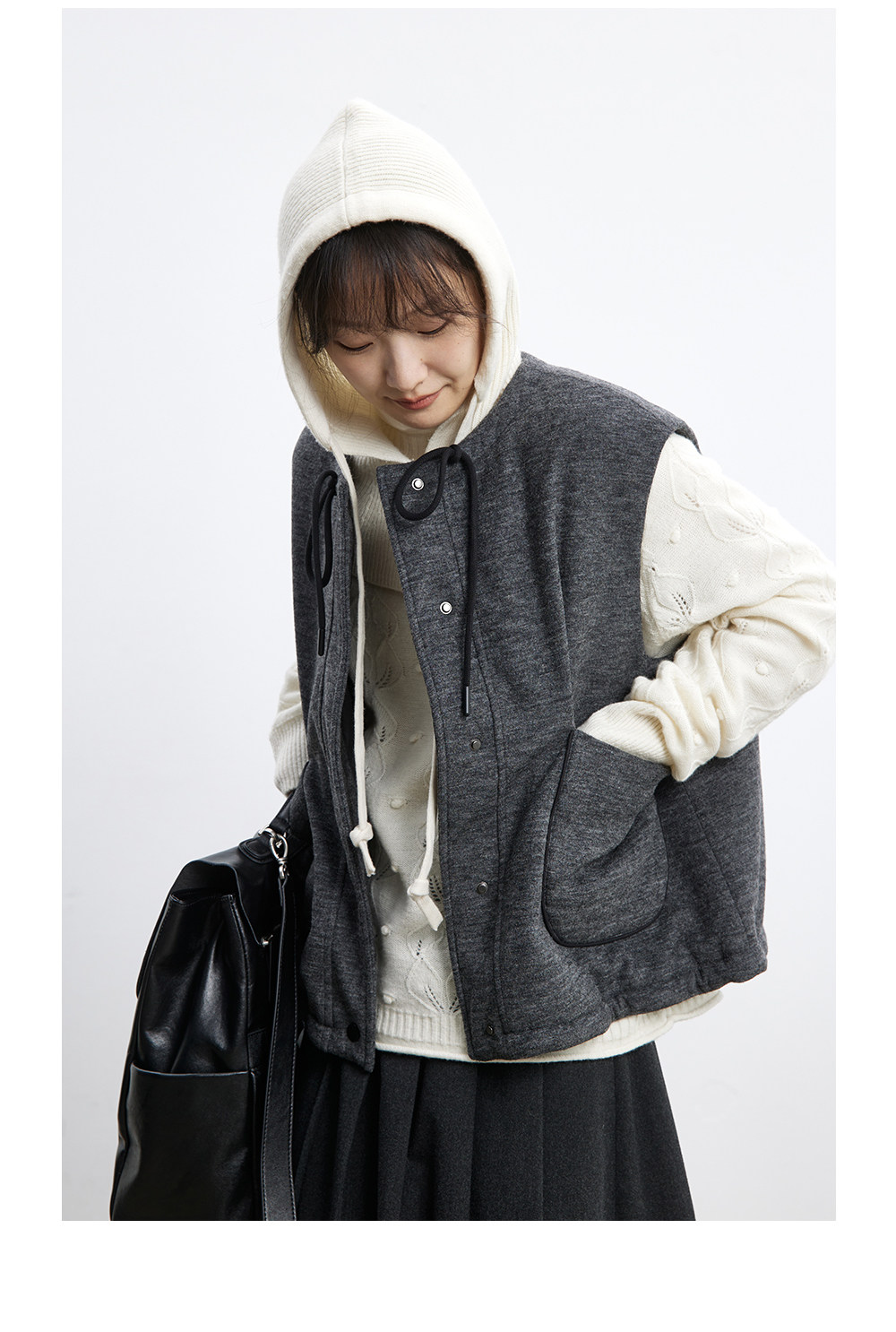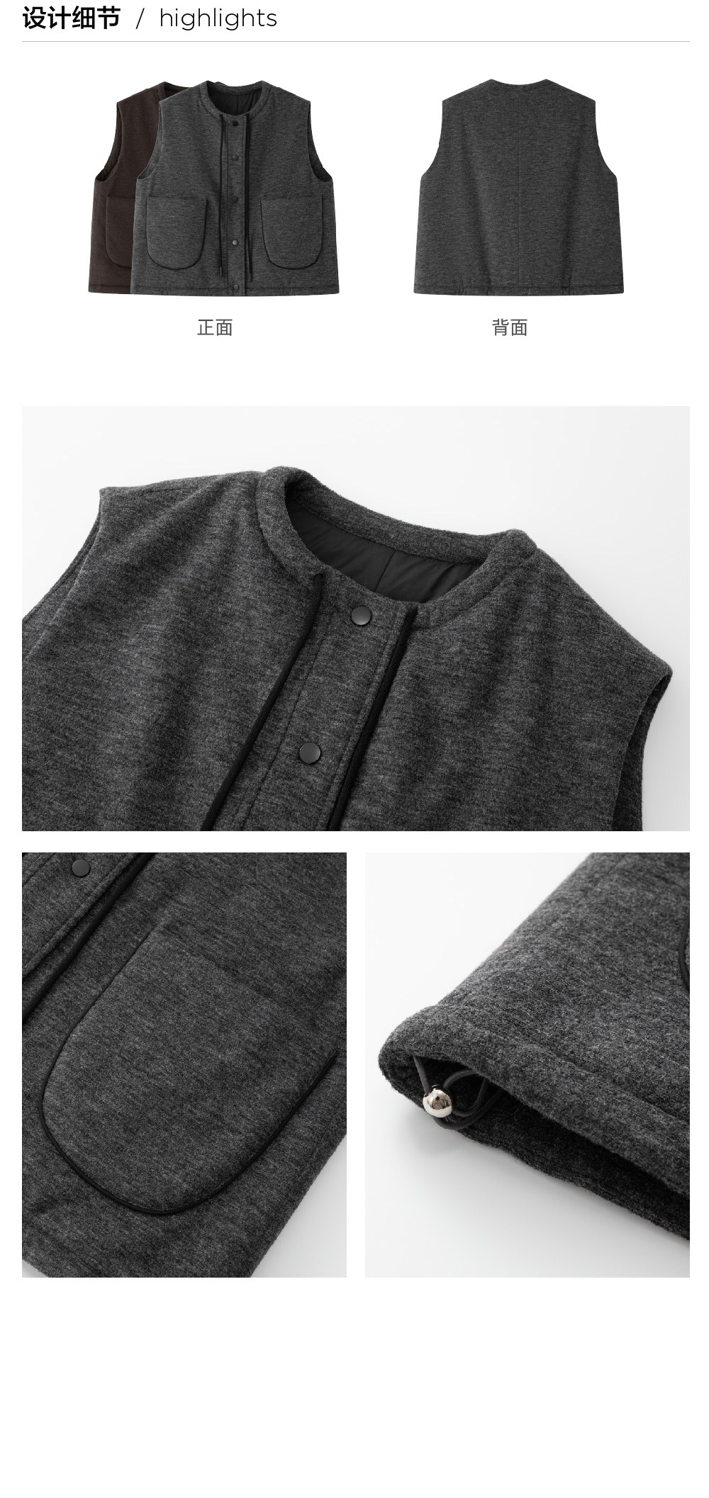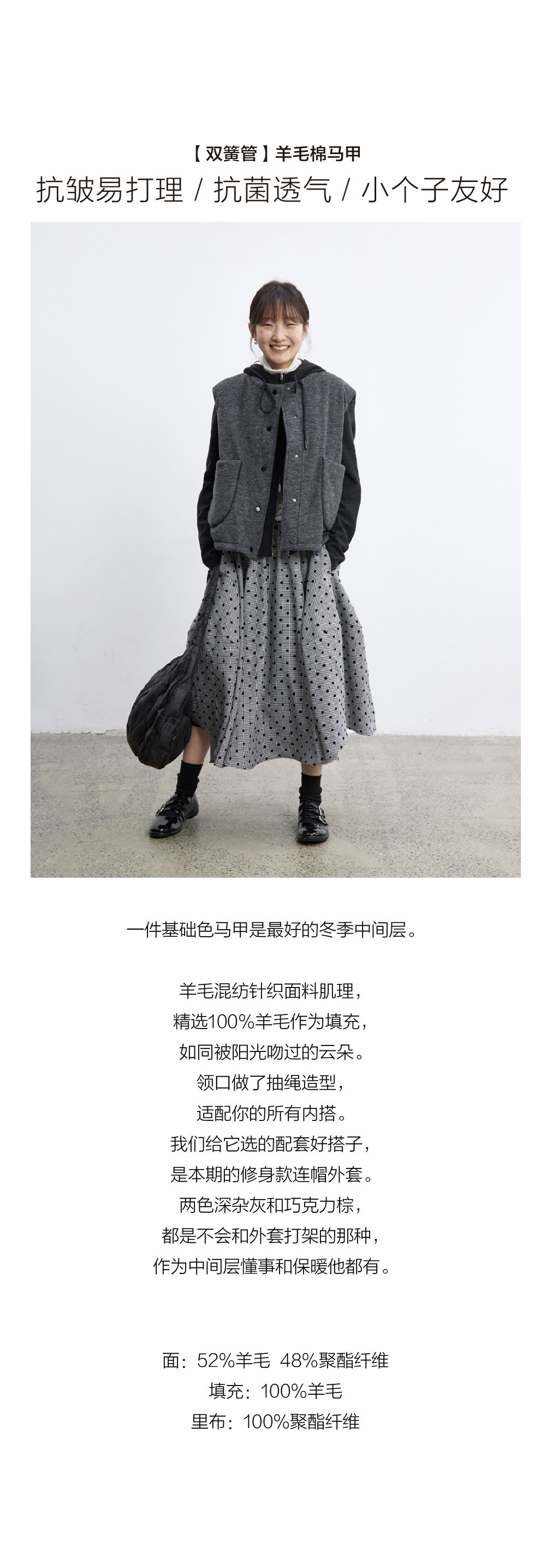 步履不停/5D14070C/羊毛填充保暖轻盈百搭休闲肌理棉马甲