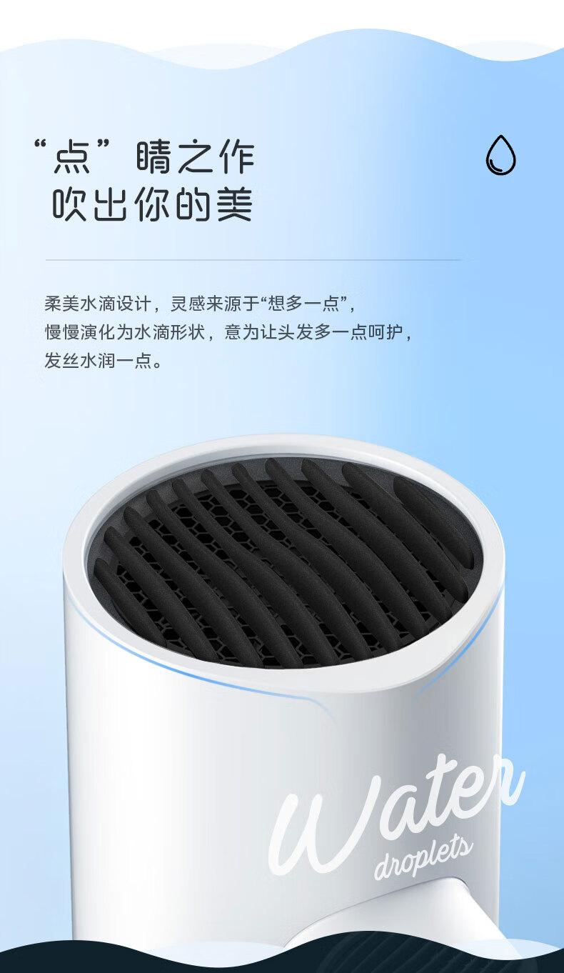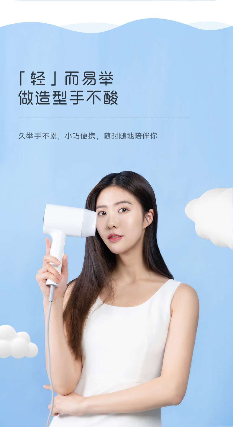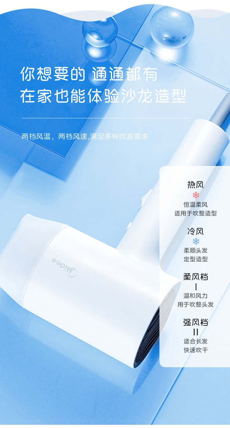 美的(Midea)电吹风 负离子吹风机 家用大功率吹风筒 柔顺护发电吹风机 节日礼物 MB-AJ0501 小米白