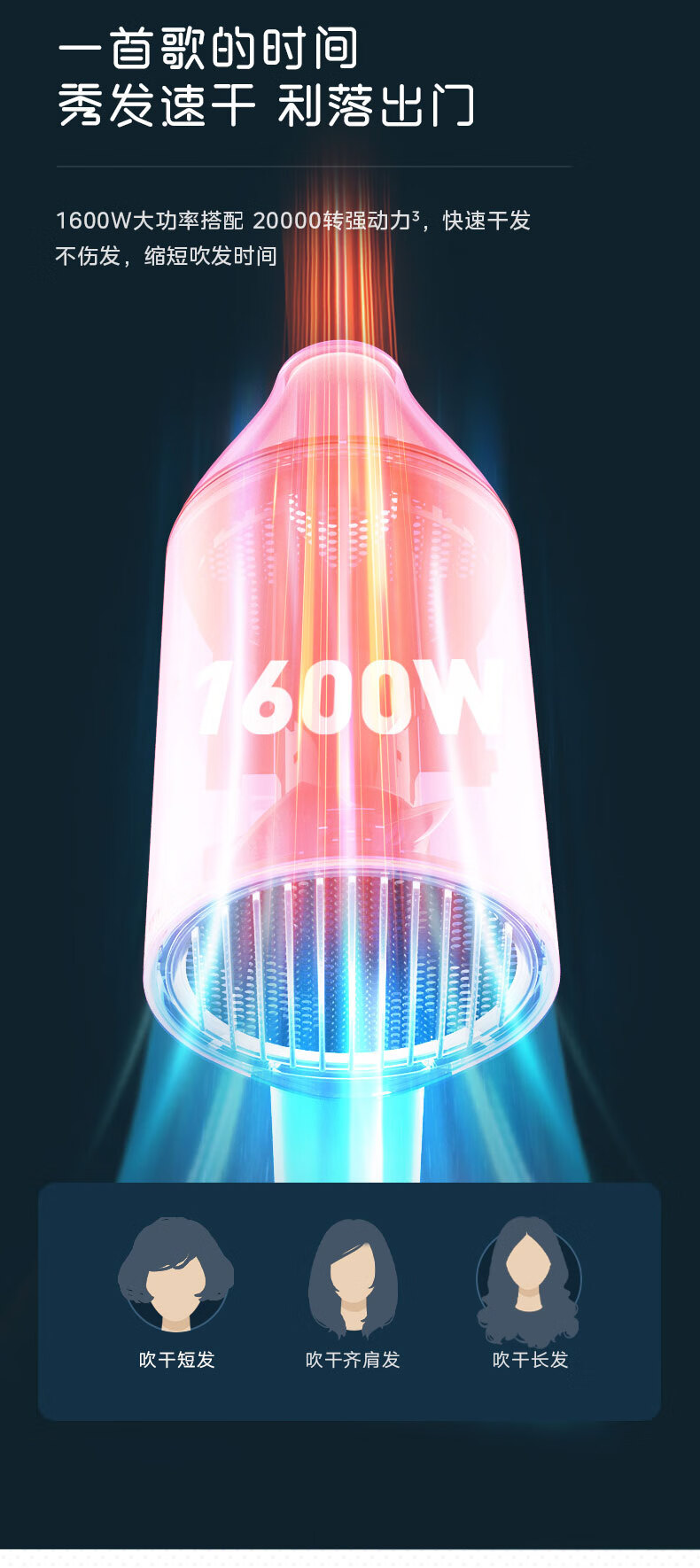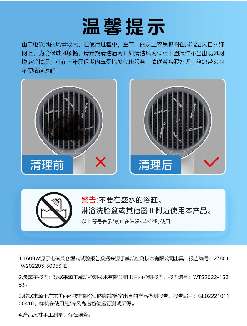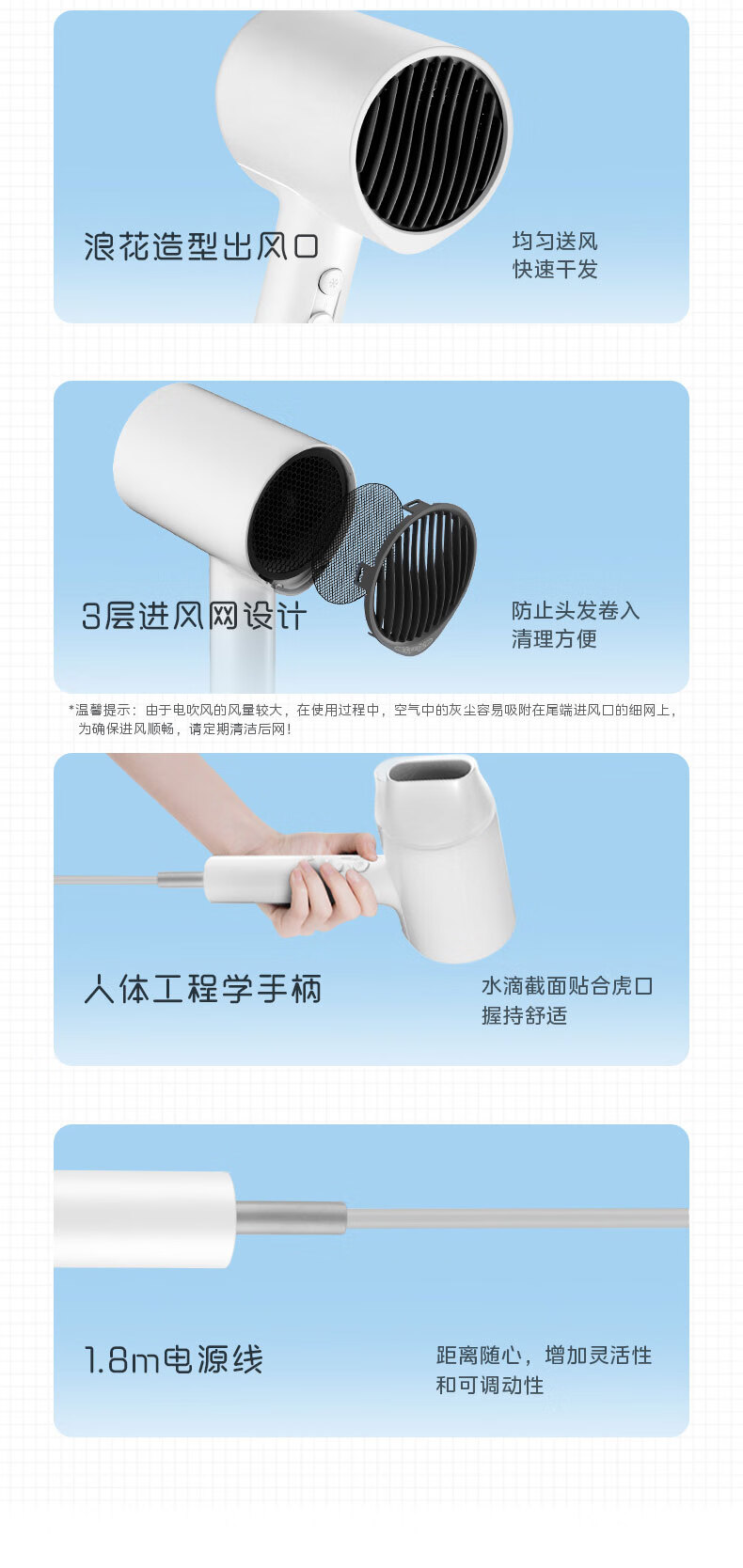 美的(Midea)电吹风 负离子吹风机 家用大功率吹风筒 柔顺护发电吹风机 节日礼物 MB-AJ0501 小米白