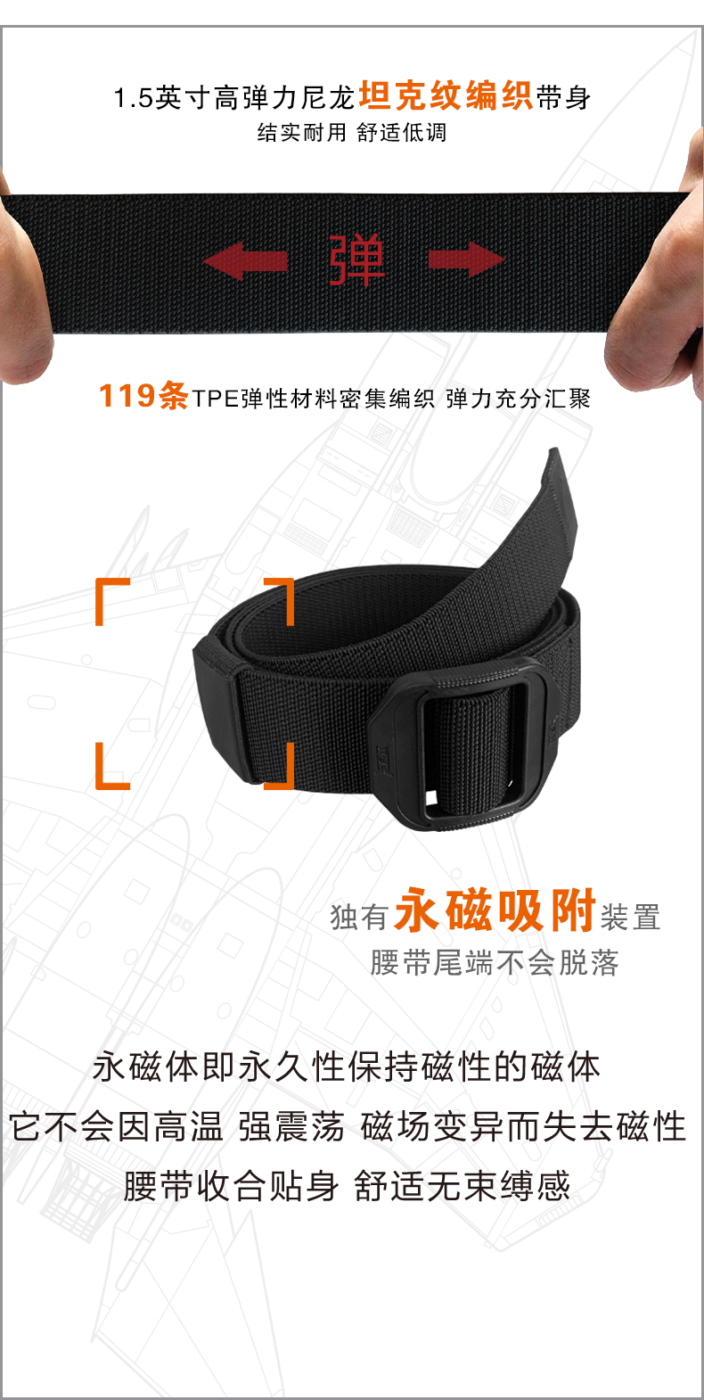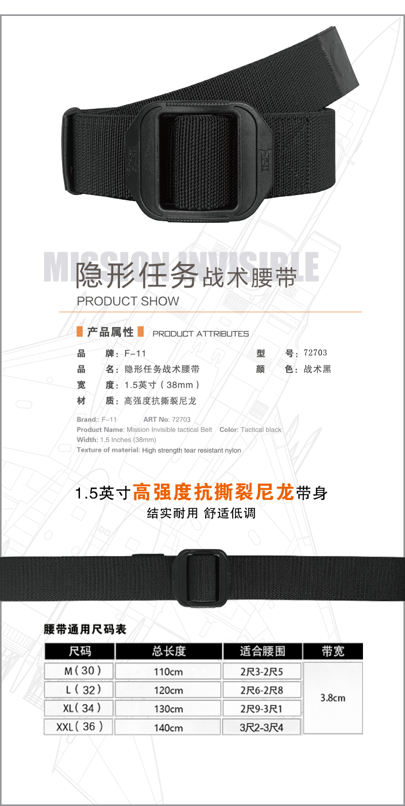 F-11隐形任务2.0战术腰带尼龙弹力永磁吸附无极调节户外运动腰带