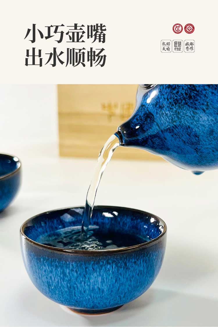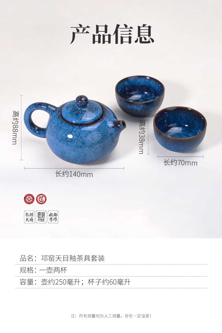 【邛窑■天目釉茶具】成都手作功夫茶具一壶两杯 家用茶杯 高档送礼茶具【四川非物质文化】【大师匠作】