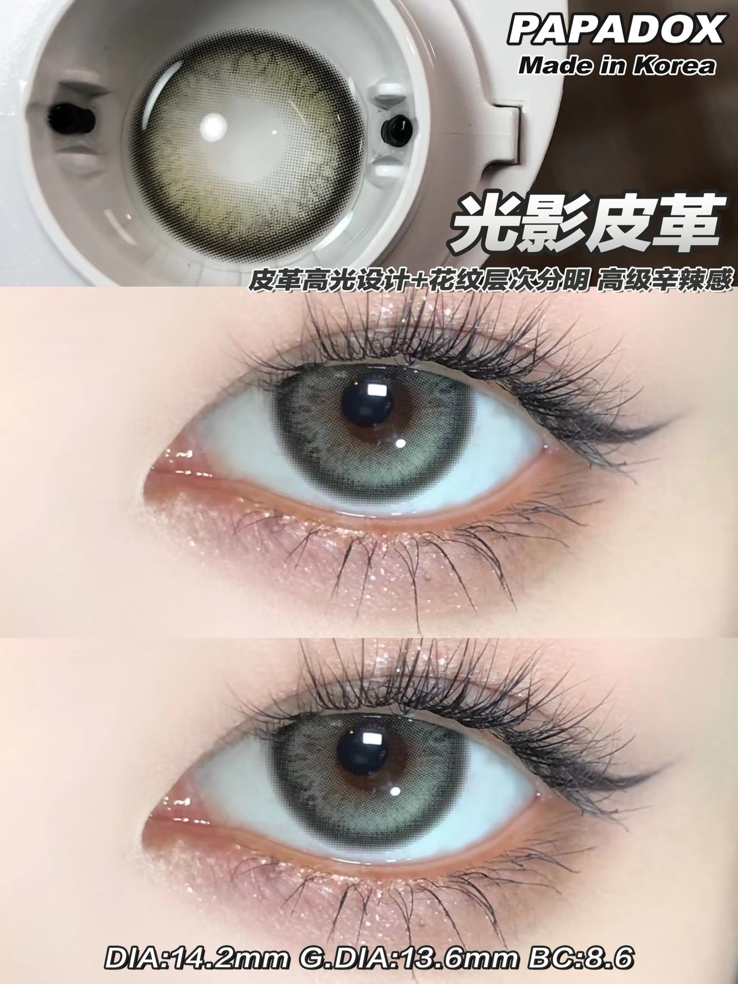 papadox月抛 光影皮革 烟灰色 14.2mm 一盒一个度数