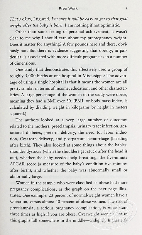 Oster offers the real-world advice one would never get at the doctor's office. Knowing that the health of your baby is paramount, readers can know more and worry less. Having the numbers is a tremendous relief - and so is the occasional glass of wine.