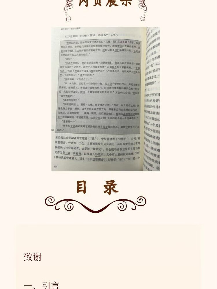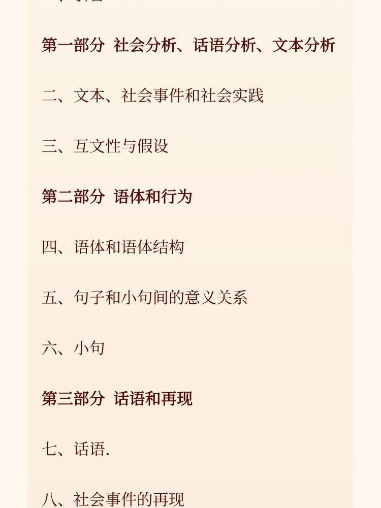 《话语分析――社会科学研究的文本分析方法》是一本难得的集理论阐释和分析方法为一体的学术著作。作者将布迪厄、福柯、哈贝马斯等学者的理论观点融入语言学研究之中,不仅为语言学研究提供了清晰的社会学研究思路,而且从语体( genre)、话语( discourse)和风格( style)三个方面系统阐释了基于文本的话语分析路径。该书对文本、互文性、语体及语体结构、话语及话语再现、社会实践、风格、情态和评价等话语分析的基本概念都有所阐释,并以丰富的分析案例揭示出语言与社会之间相互构建的辩证关系,对于语言学专业师生和社会科学研究者从事话语分析研究具有很高的参考价值。