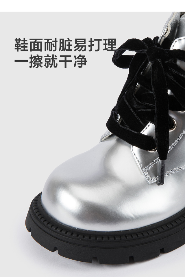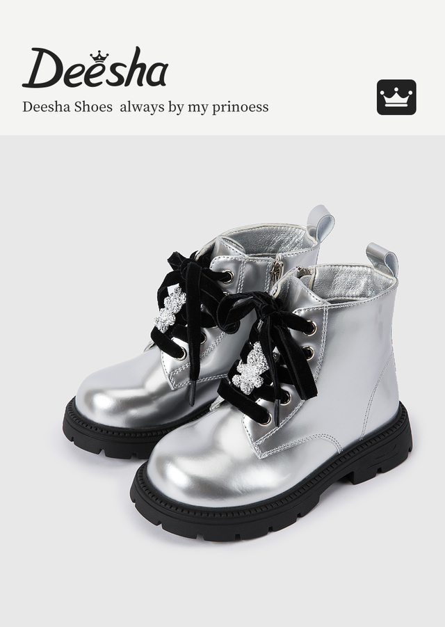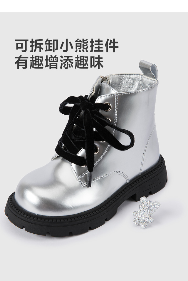 笛莎Deesha 女童童鞋2025冬季新款短筒薄绒皮靴