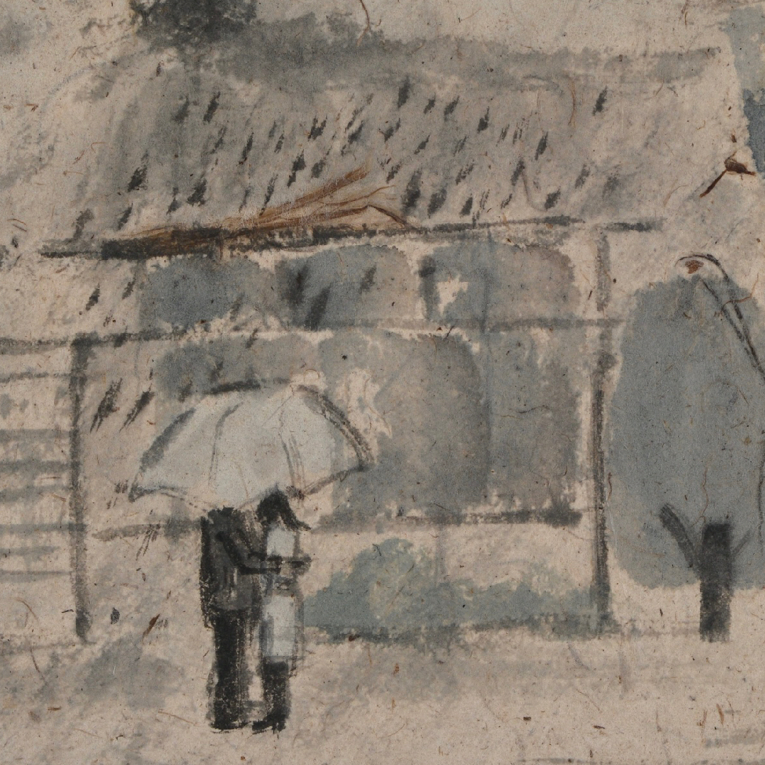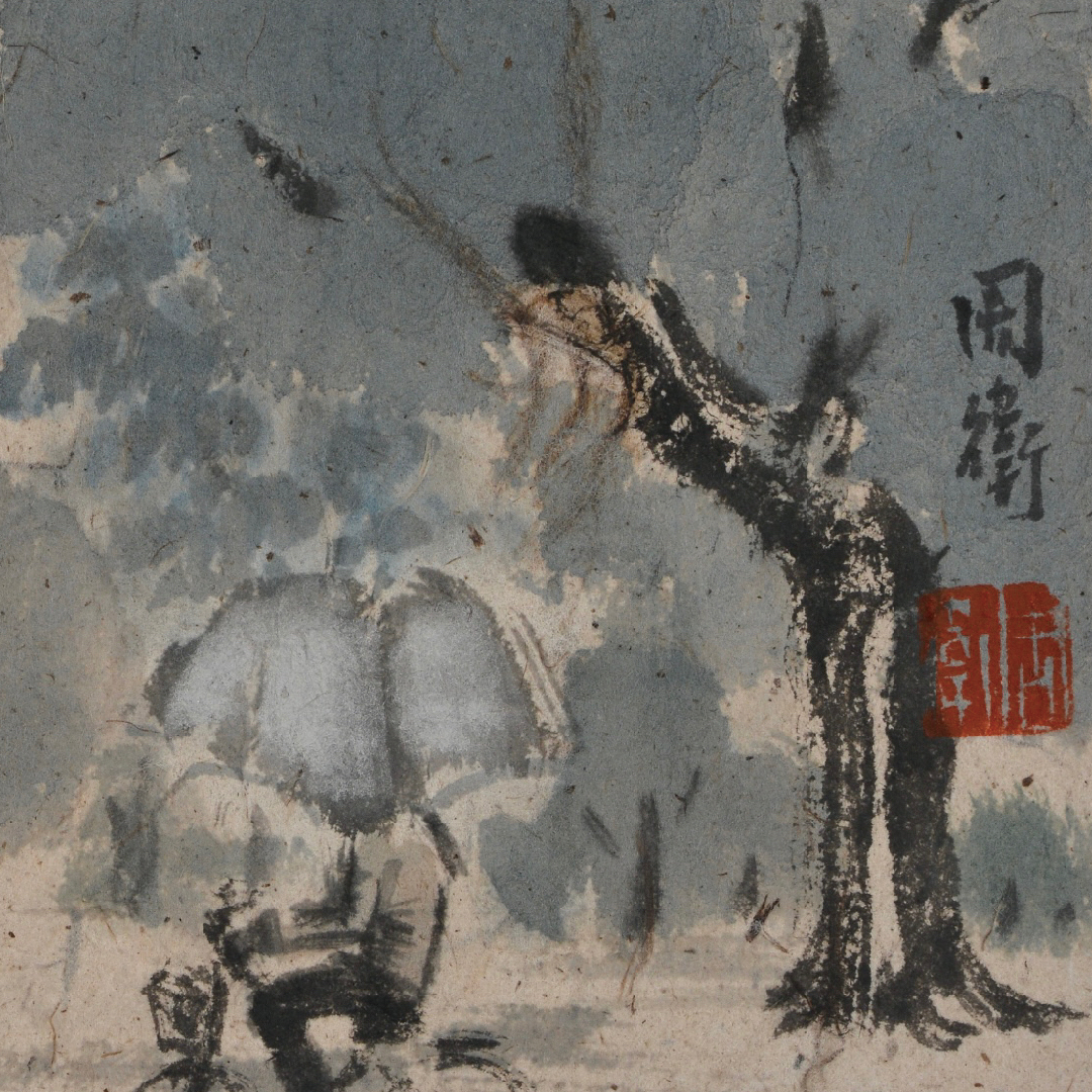 李周卫《雨季》国画人物 17CM*25CM 约半平尺 卡纸(未装框)【原作编号GH0027】