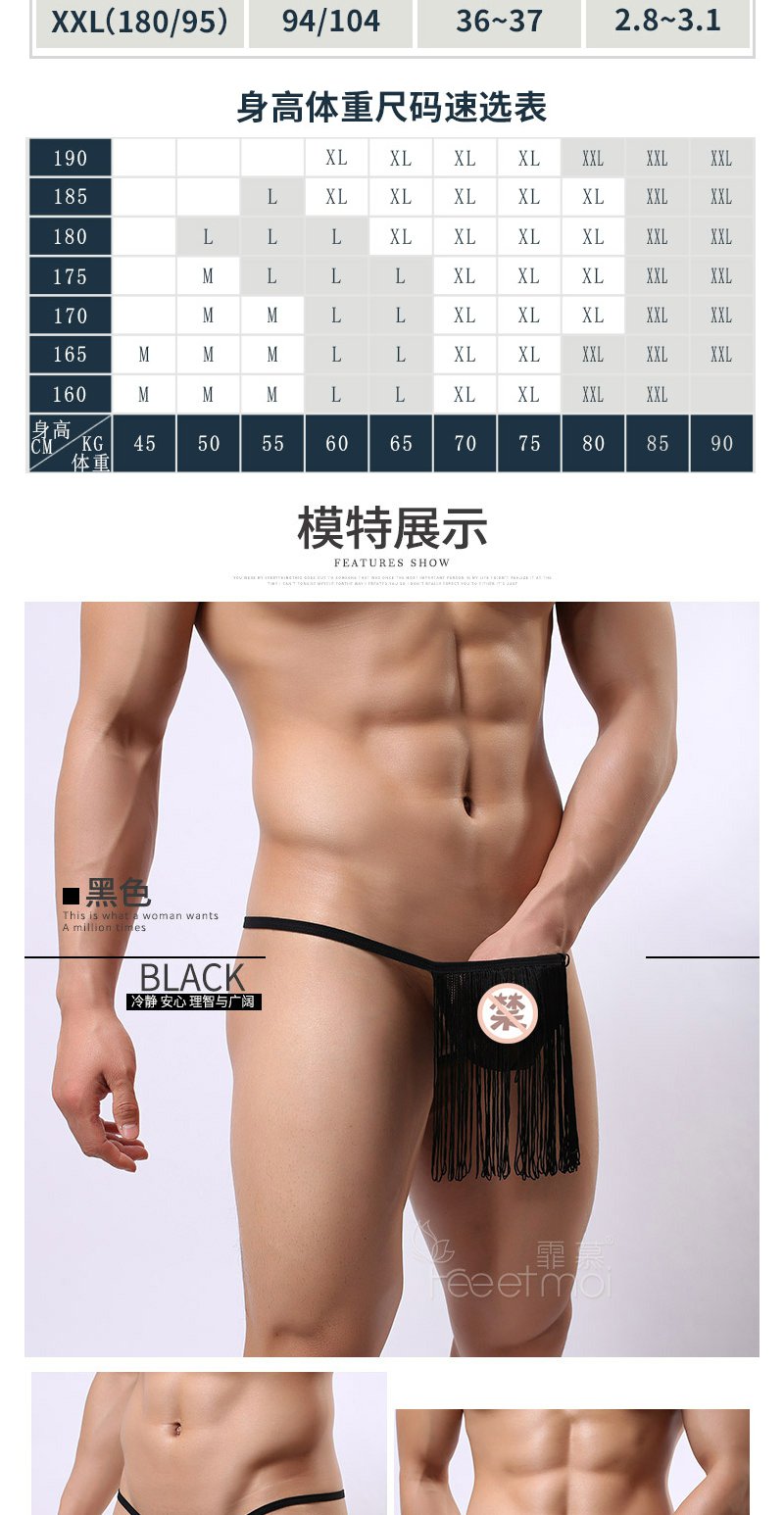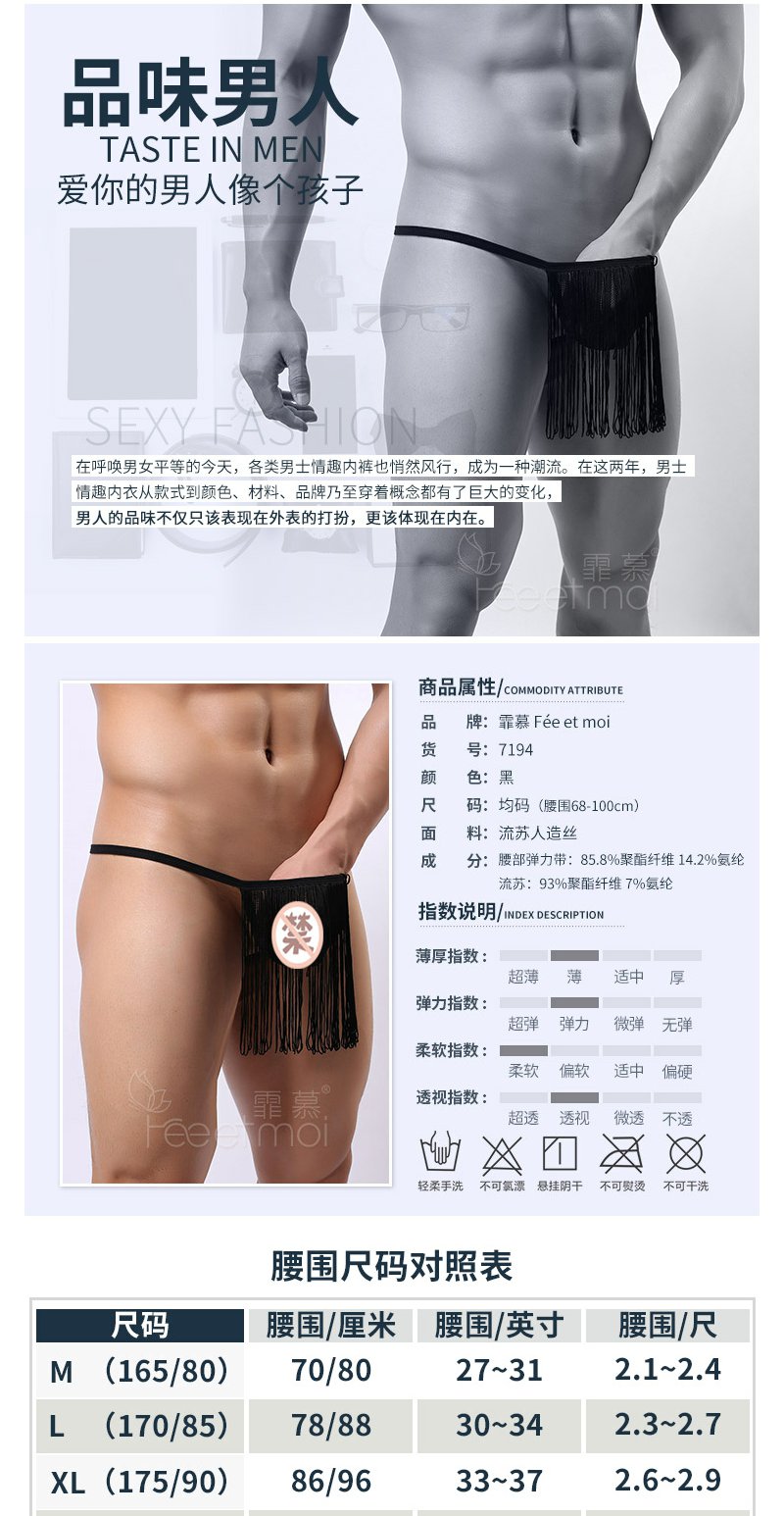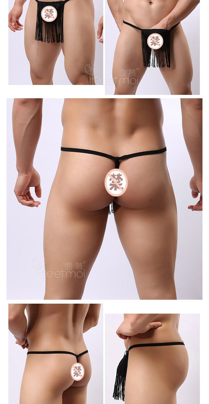 男士性感流苏丁字库情趣内衣内裤JJ套囊袋透视网纱内裤