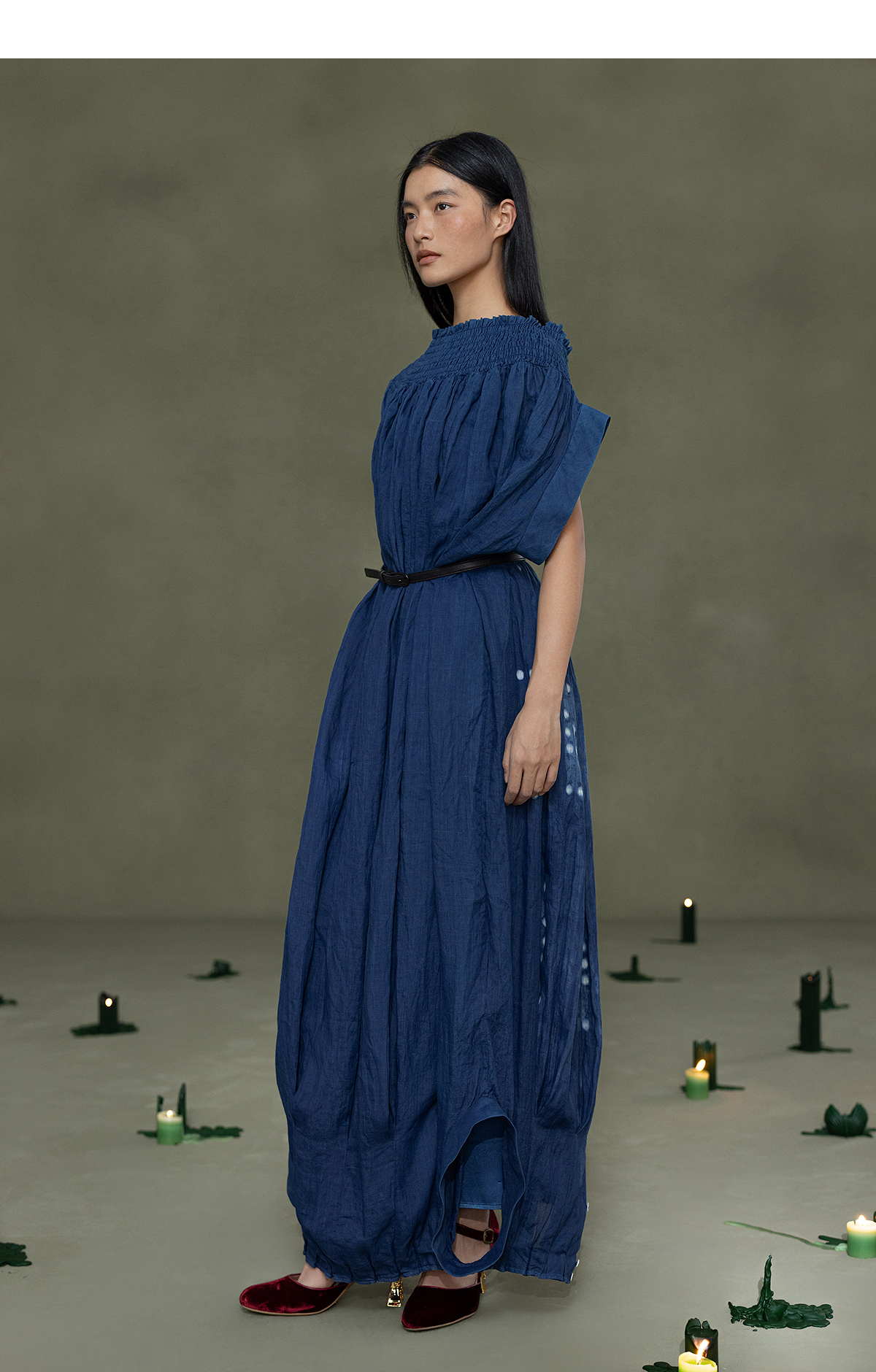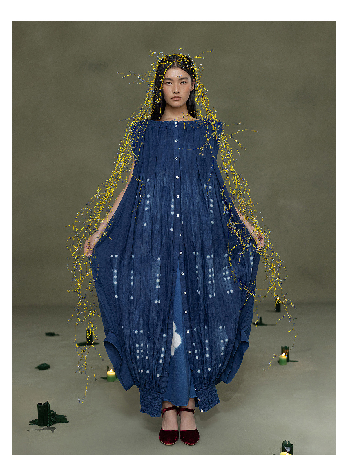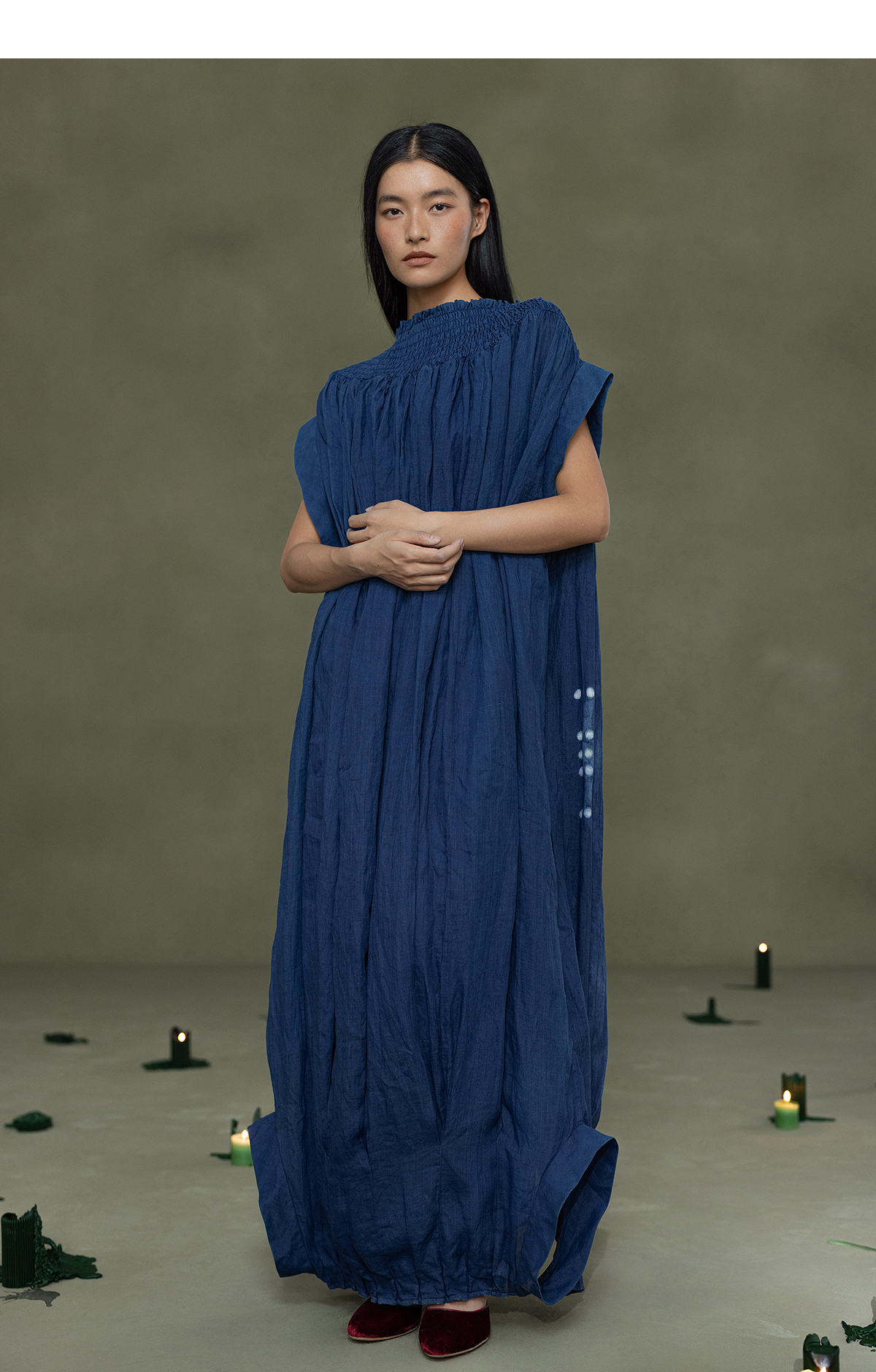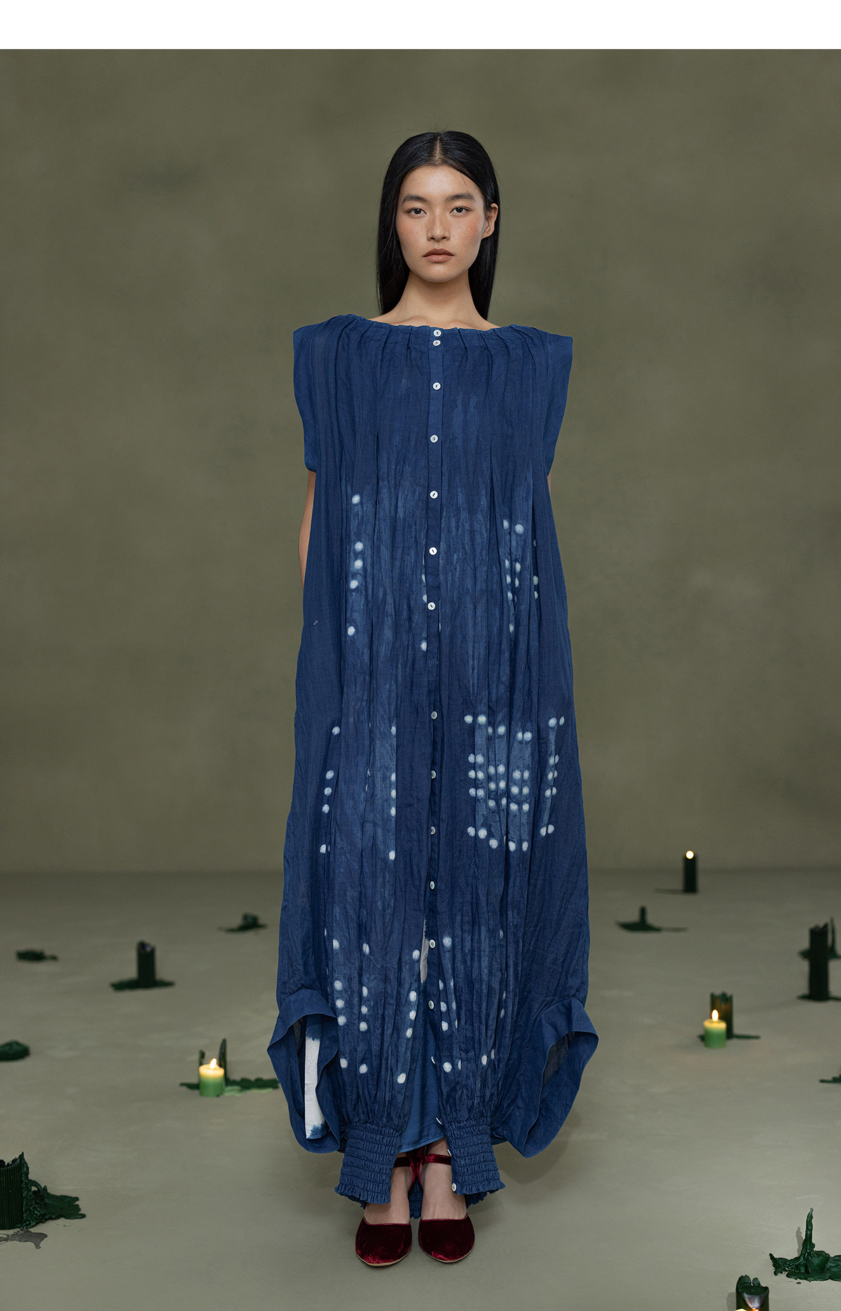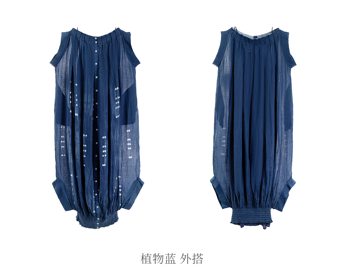 【林栖设计小店】植物染色|手工植物蓝苎麻上下两穿2026春新款开襟连衣裙1961020