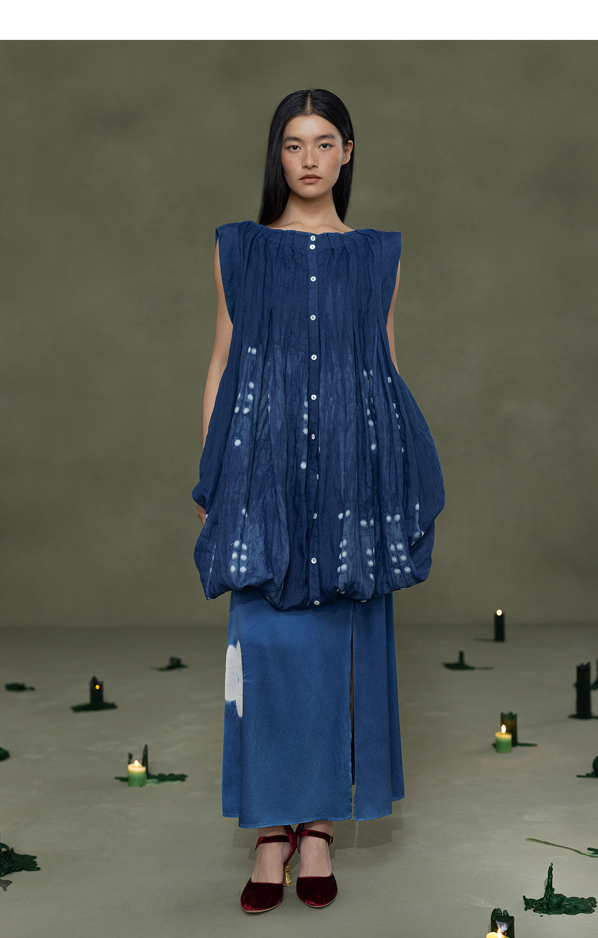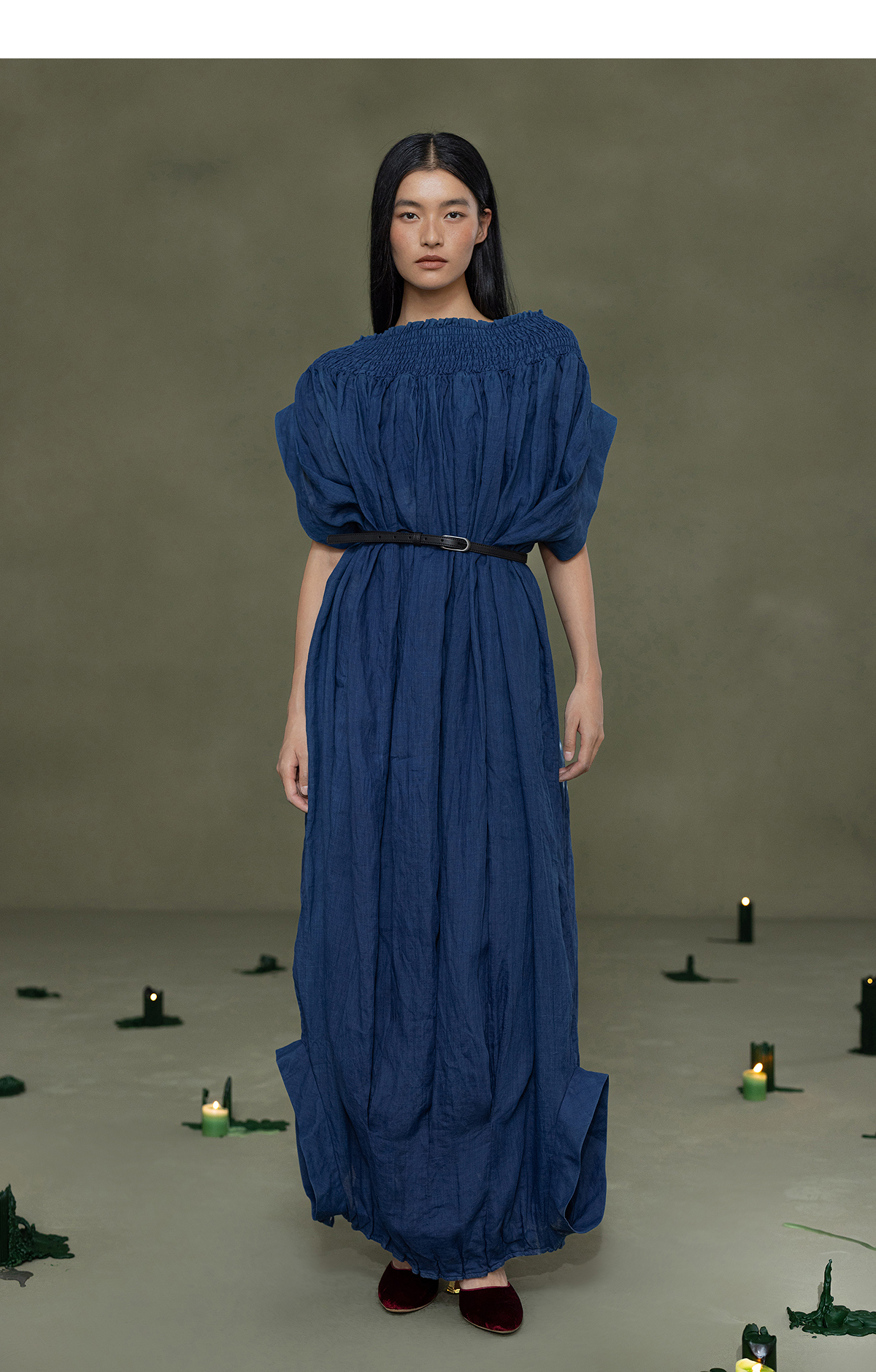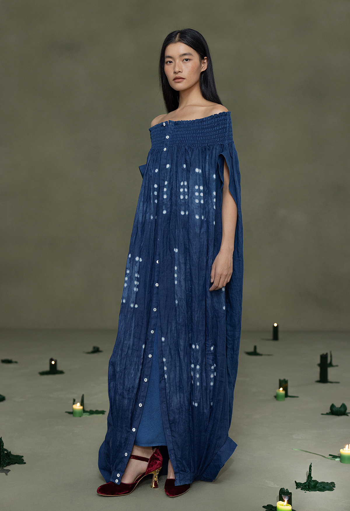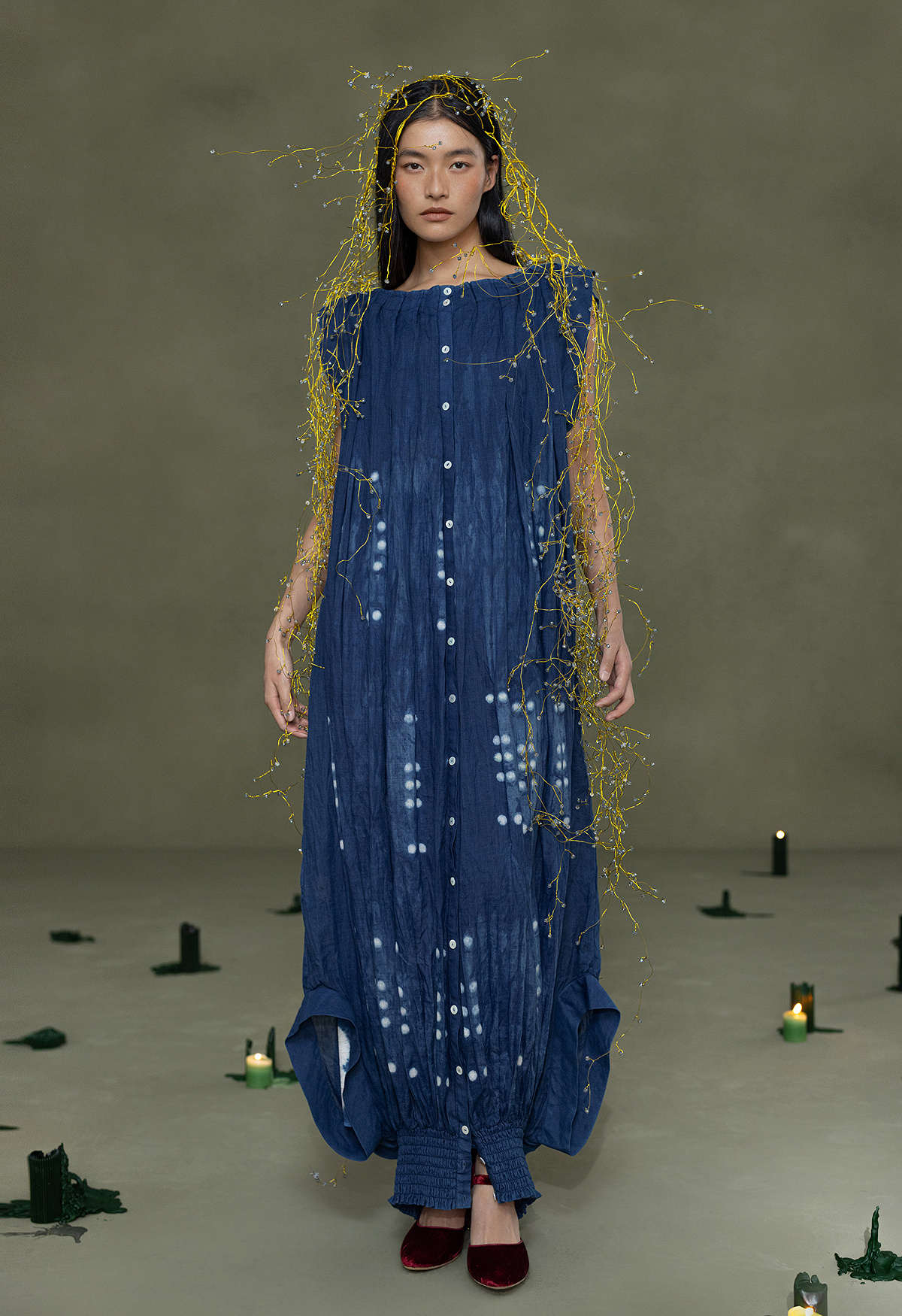 【林栖设计小店】植物染色|手工植物蓝苎麻上下两穿2026春新款开襟连衣裙1961020