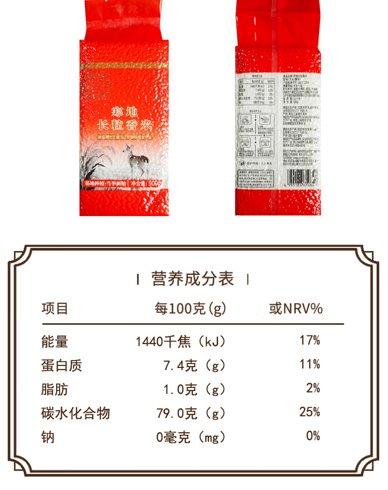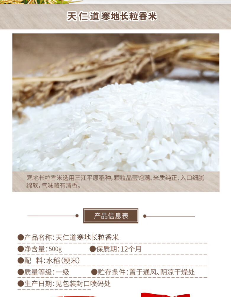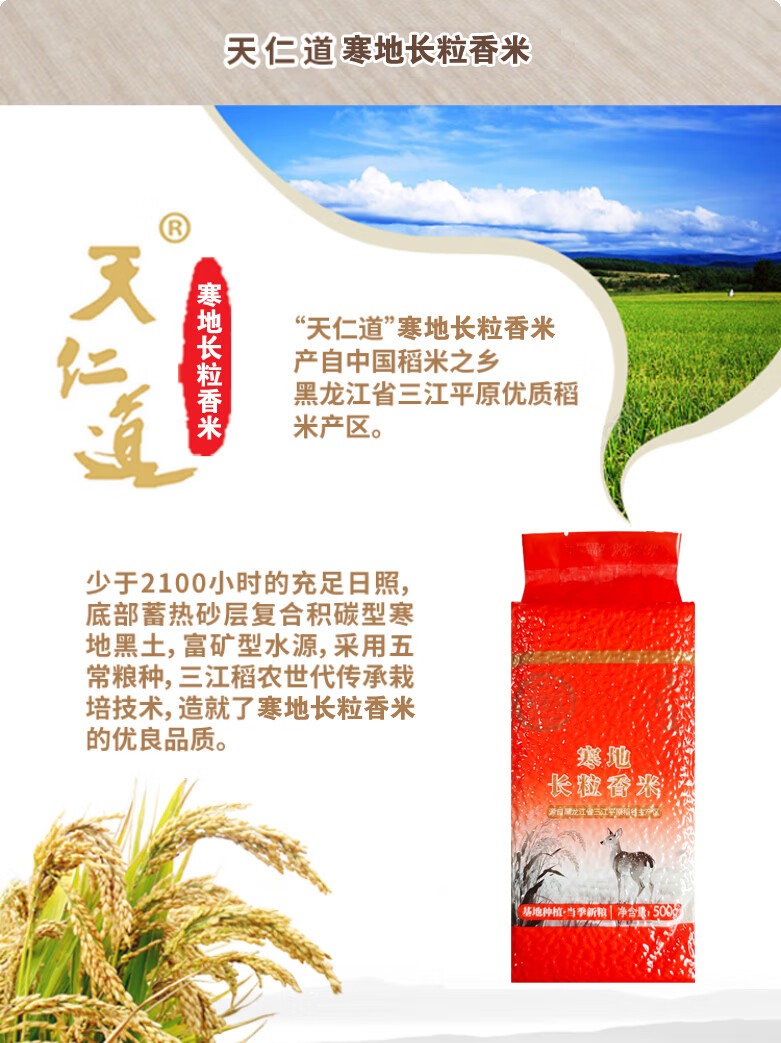 天仁道寒地长粒香米 500g/袋