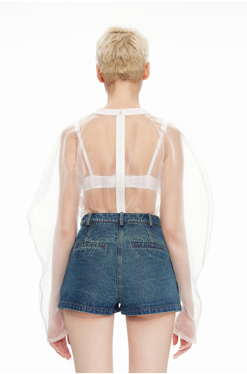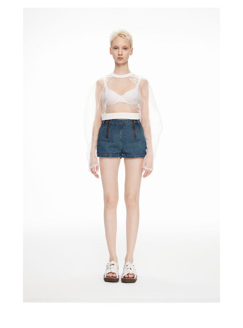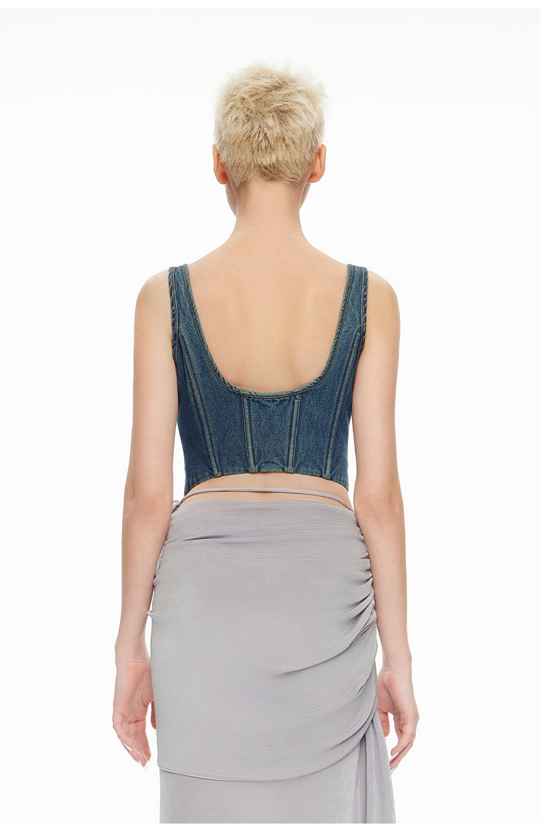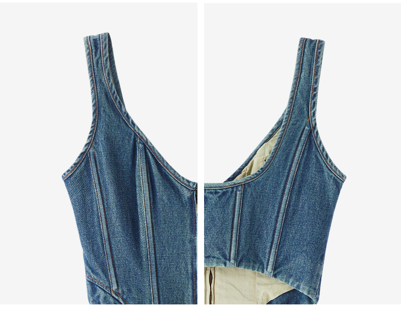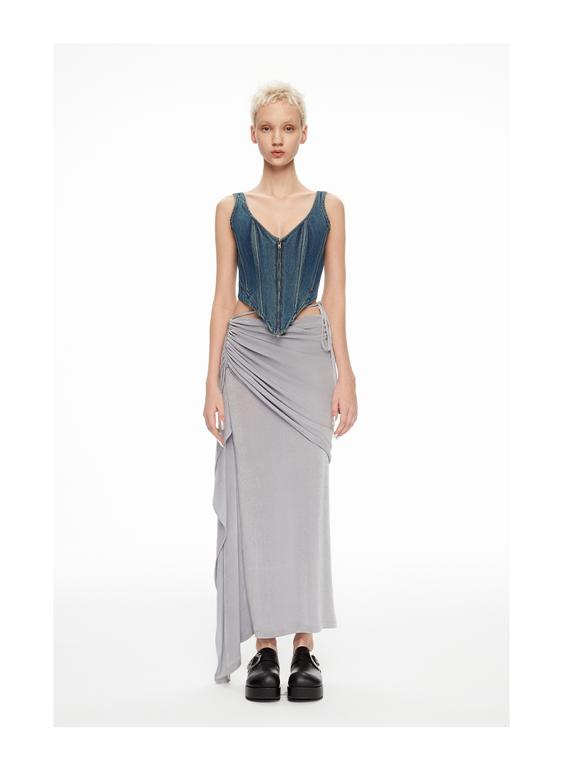 lost in echo2024春季新品设计师款鱼骨拉链酸洗牛仔马甲短裤套装