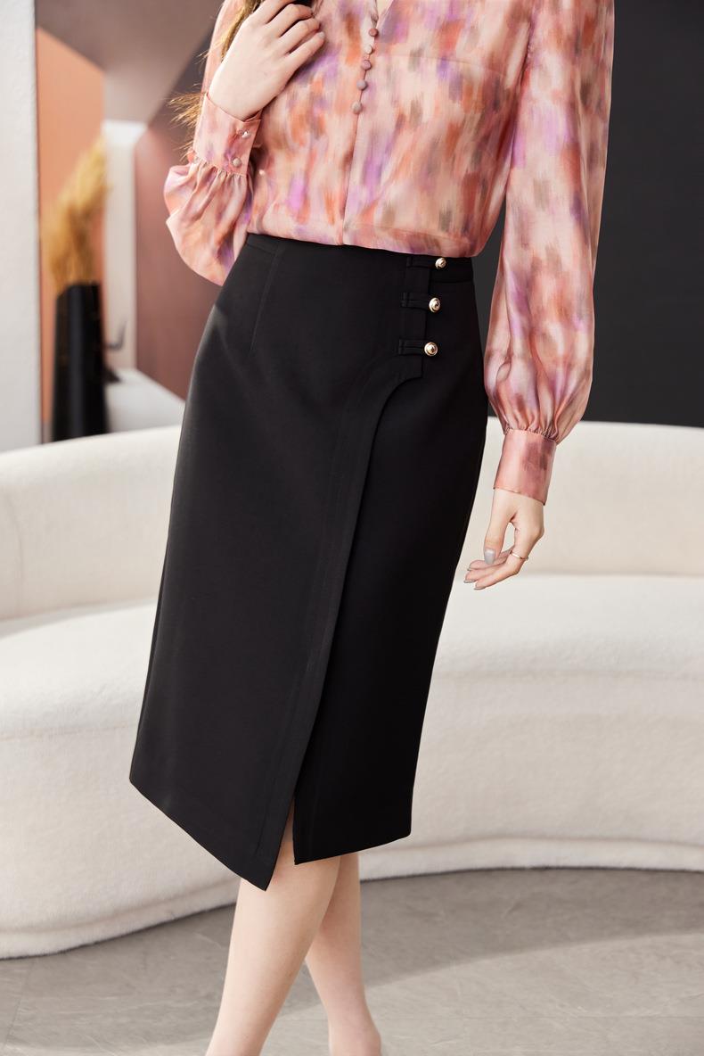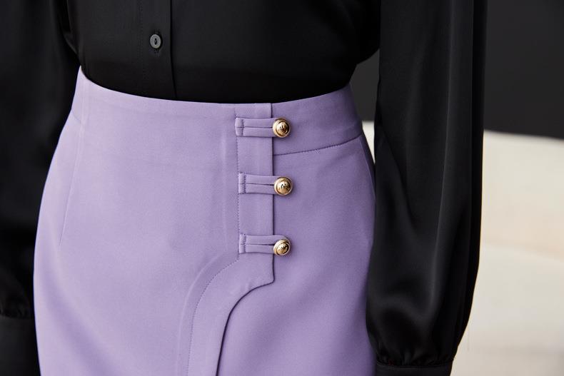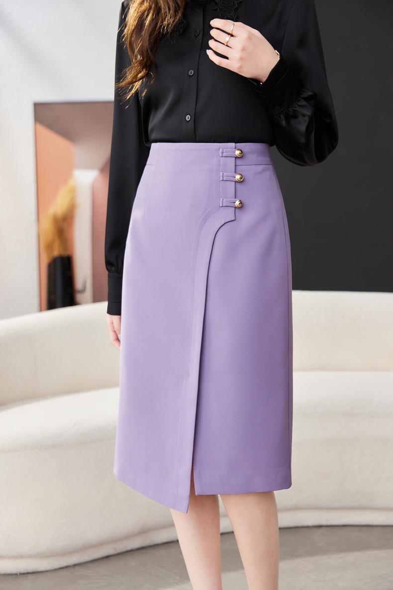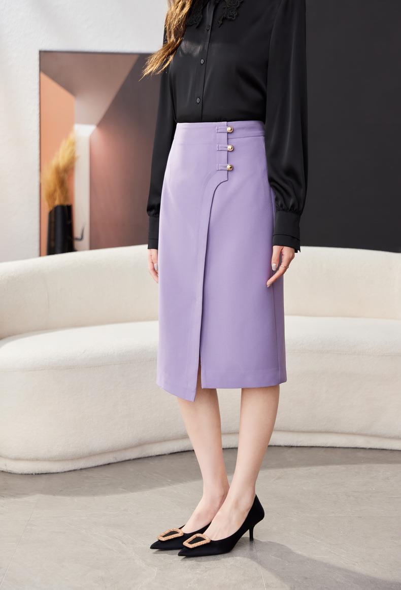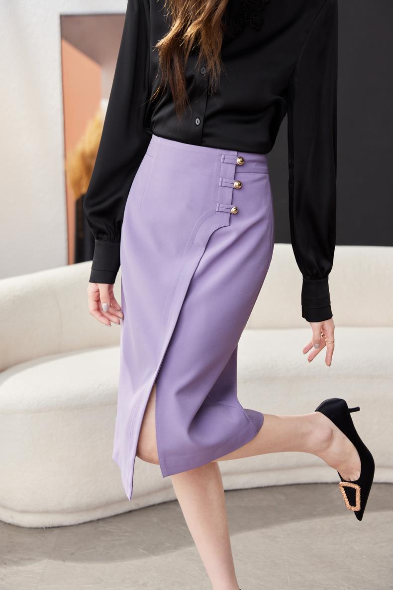 紫色半身裙女2024春装新款高腰显瘦西装裙中长款包臀裙1777