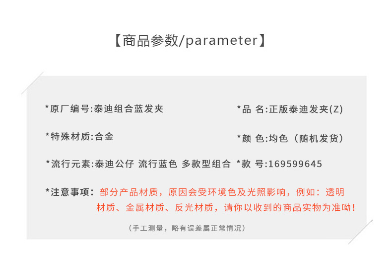 正版泰迪实用百搭组合蓝发夹-纪念日百货门店同款169599645