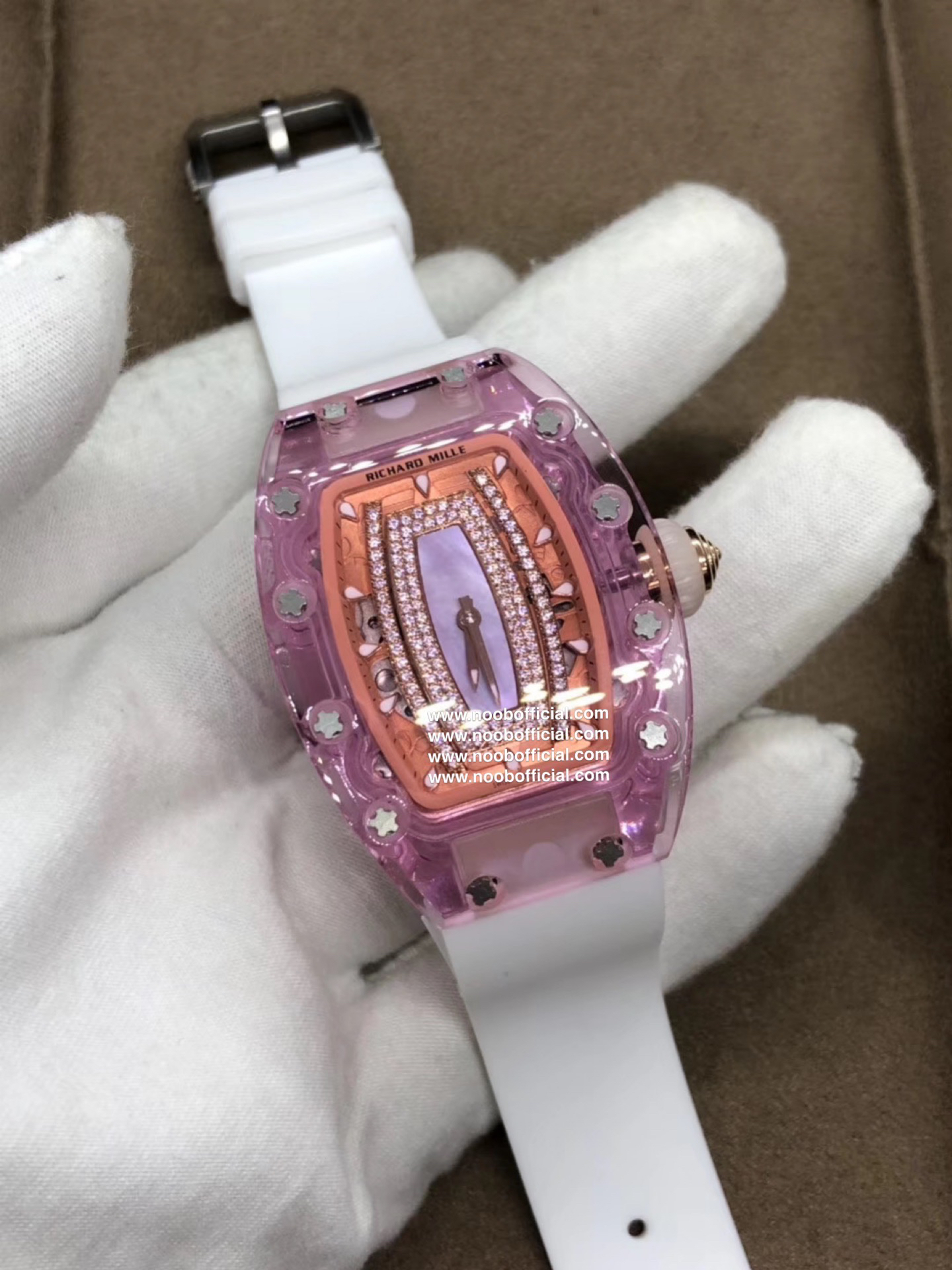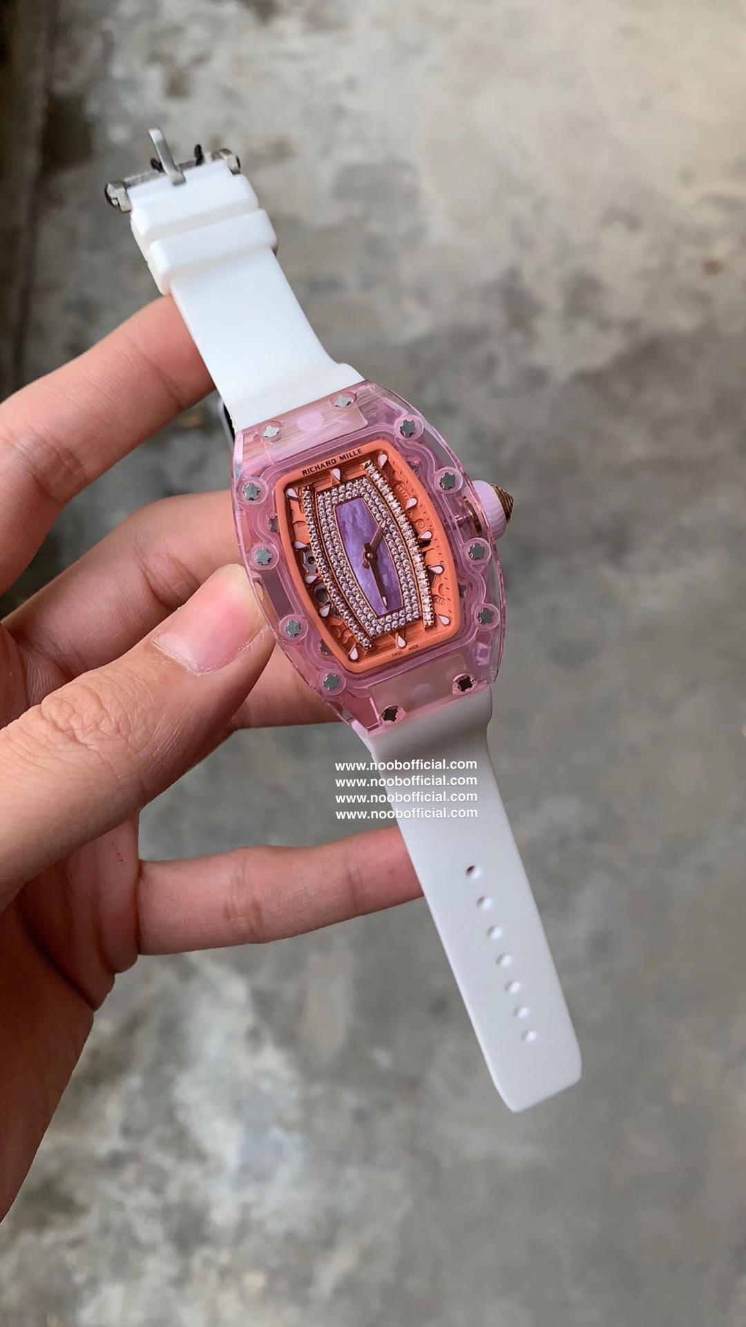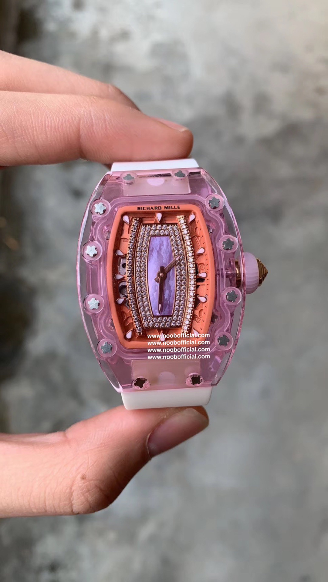 理查德米勒RM07-02女装实拍,透明粉紫色亚克力材质。轻量化,搭全自动进口机芯![色]