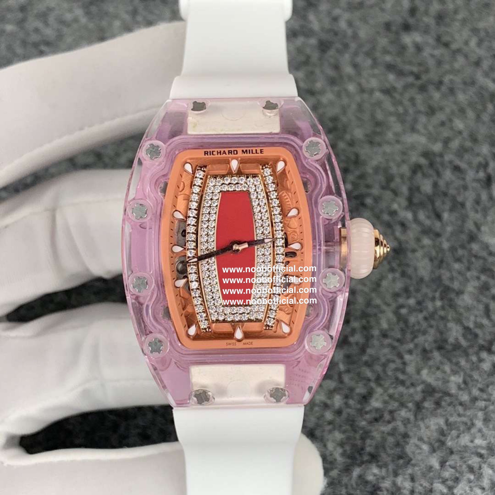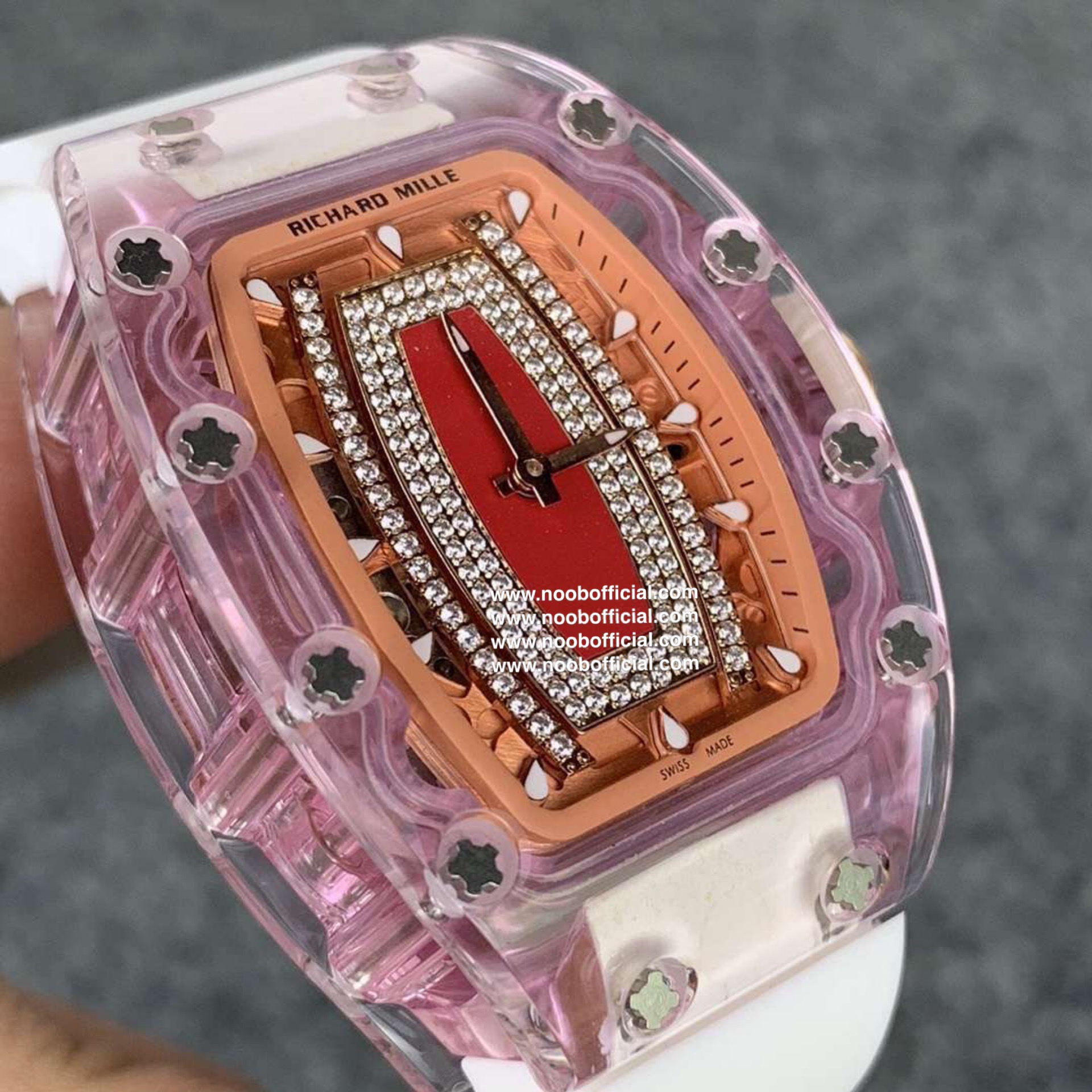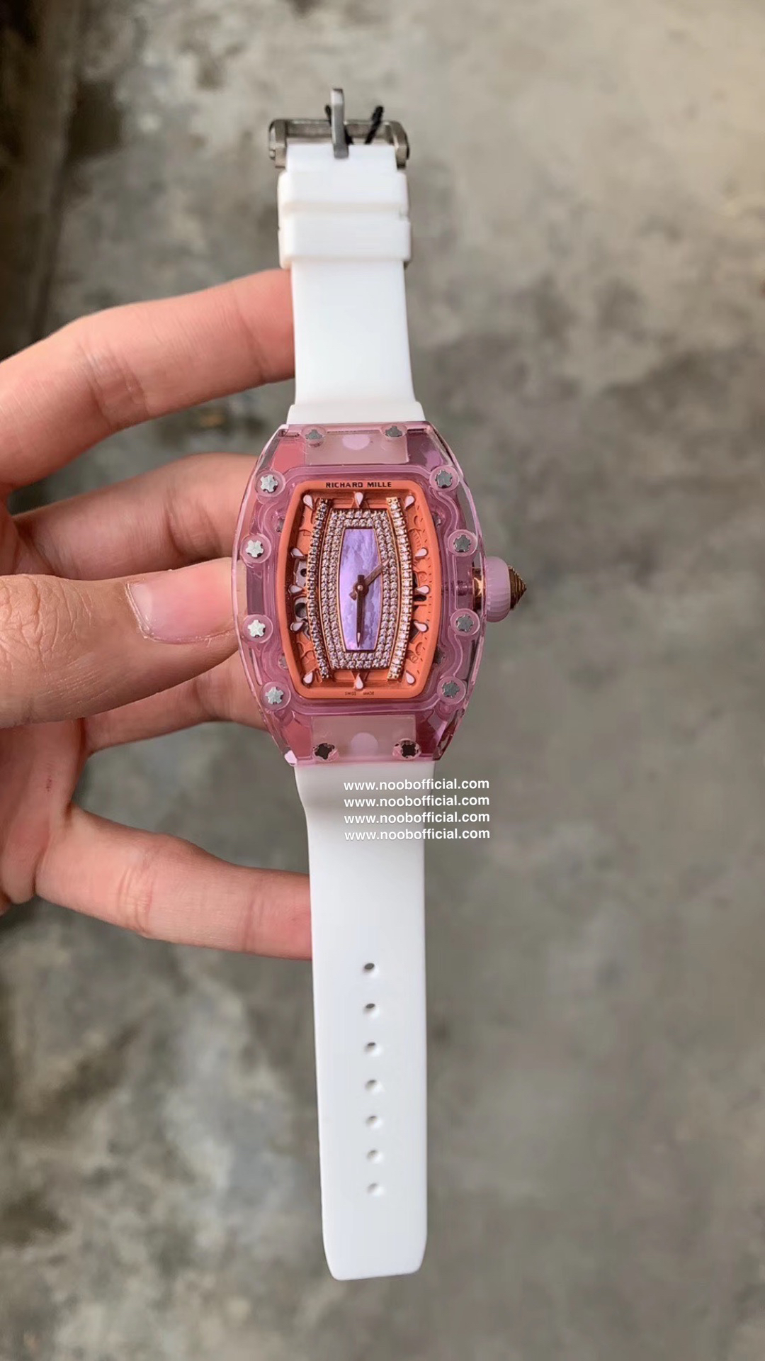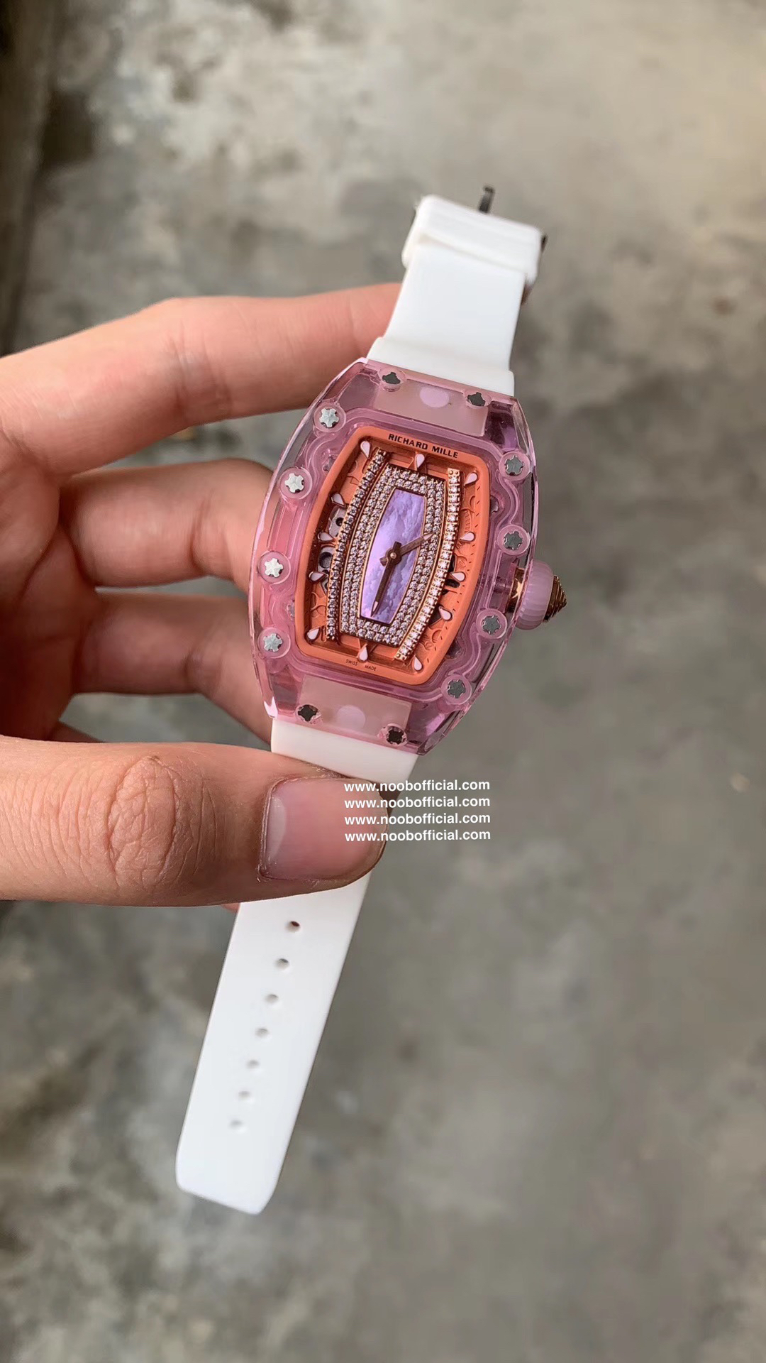 理查德米勒RM07-02女装实拍,透明粉紫色亚克力材质。轻量化,搭全自动进口机芯![色]
