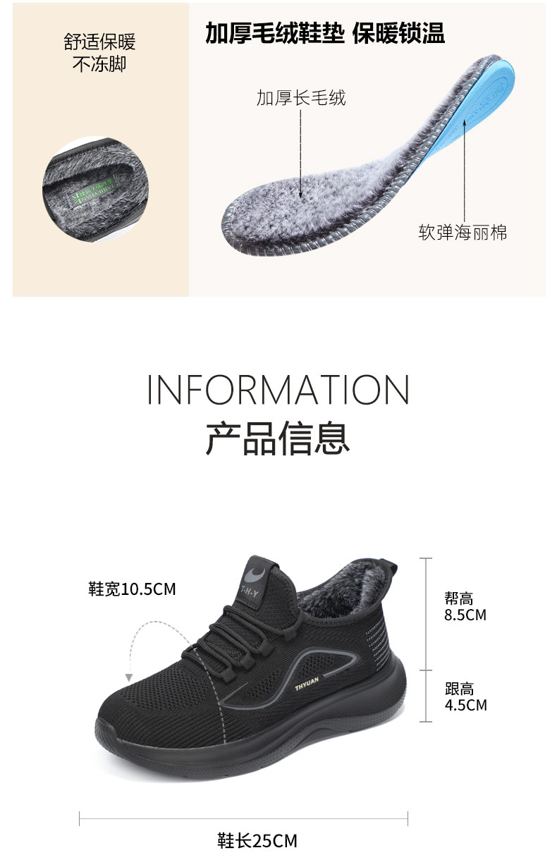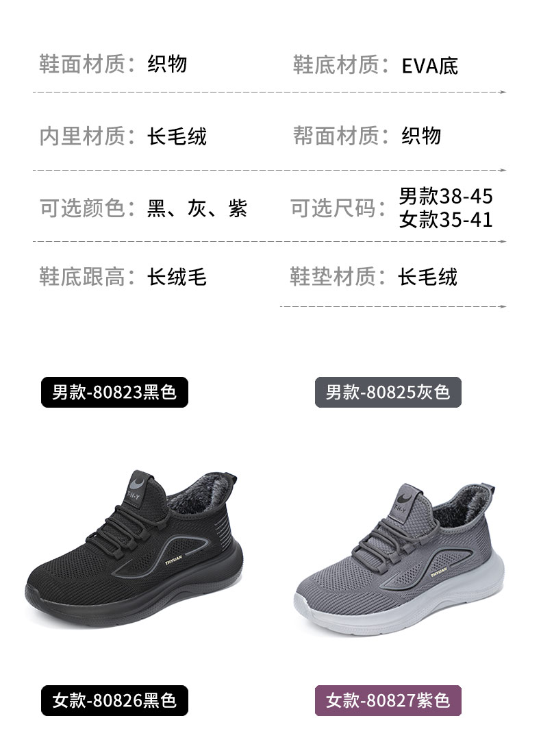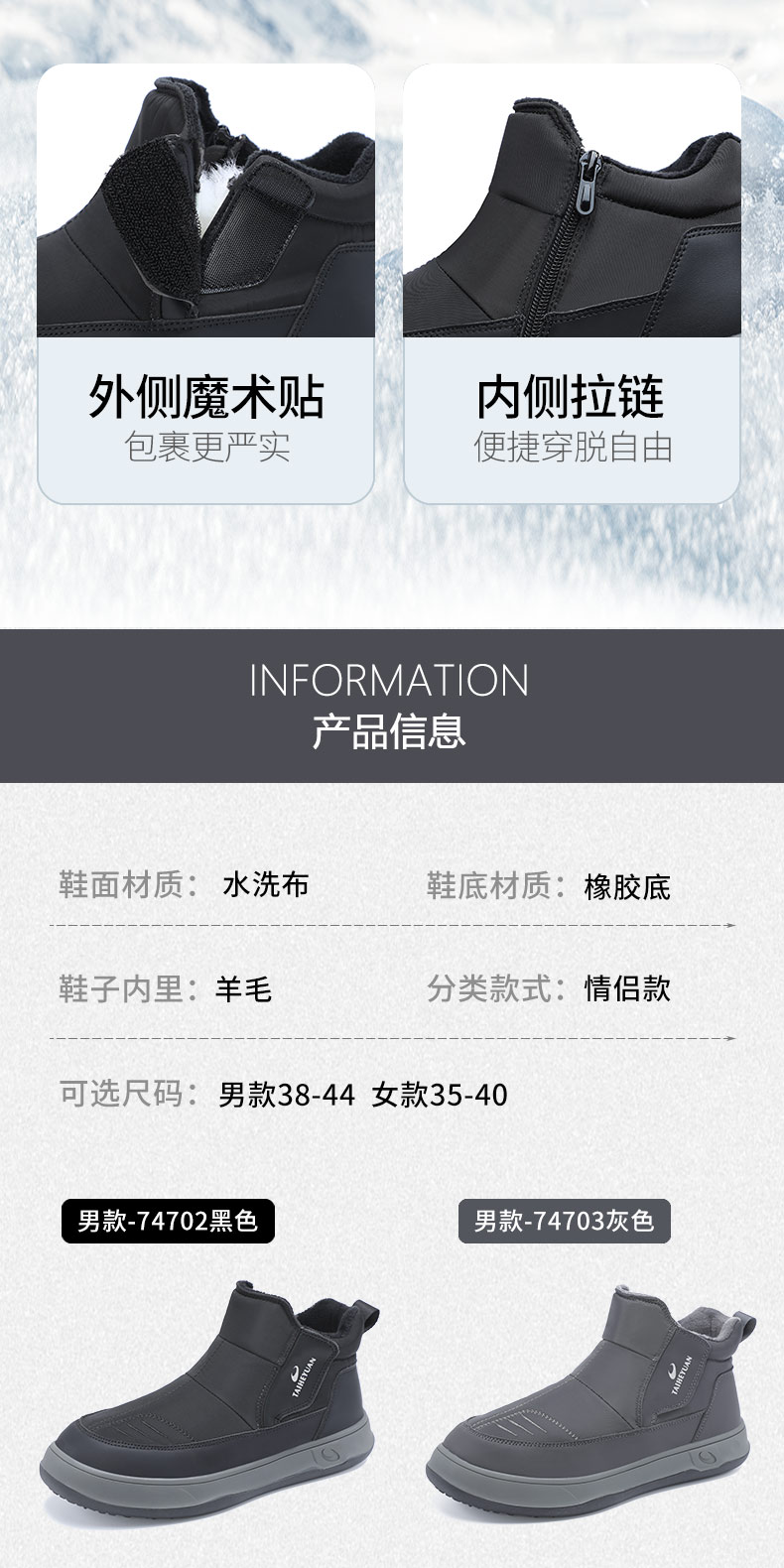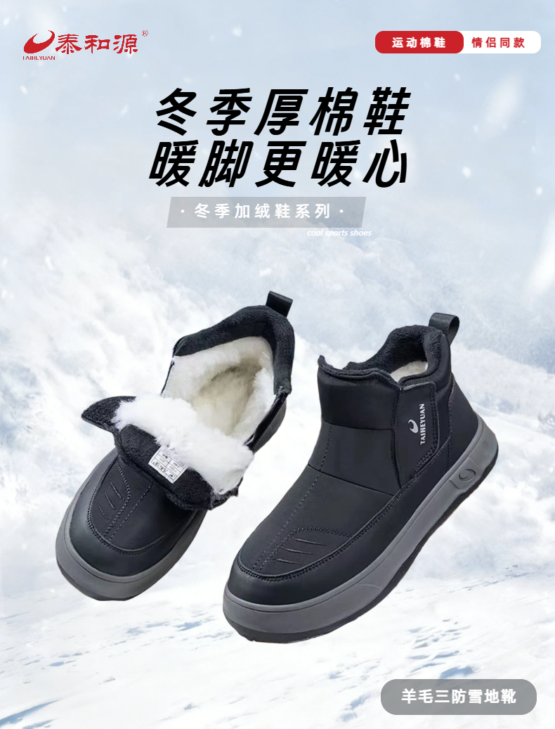 泰和源冬季加绒棉鞋系列 长毛绒飞织鞋 羊毛三防雪地靴 男女同款