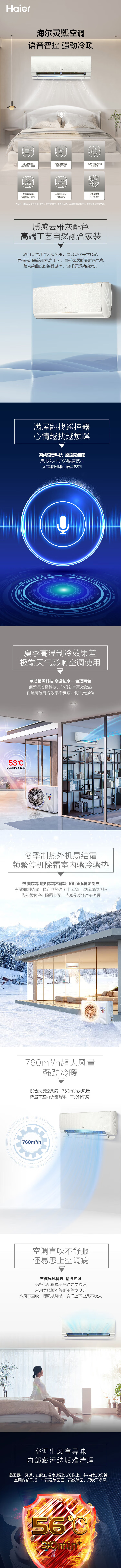 海尔(110909)1.5匹壁挂式变频空调 家用 三翼导风+自清洁+独立除湿 一级能效KFR-35GW/C1DAC81VU1