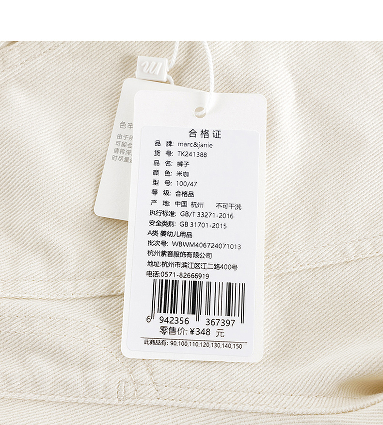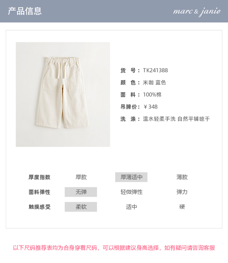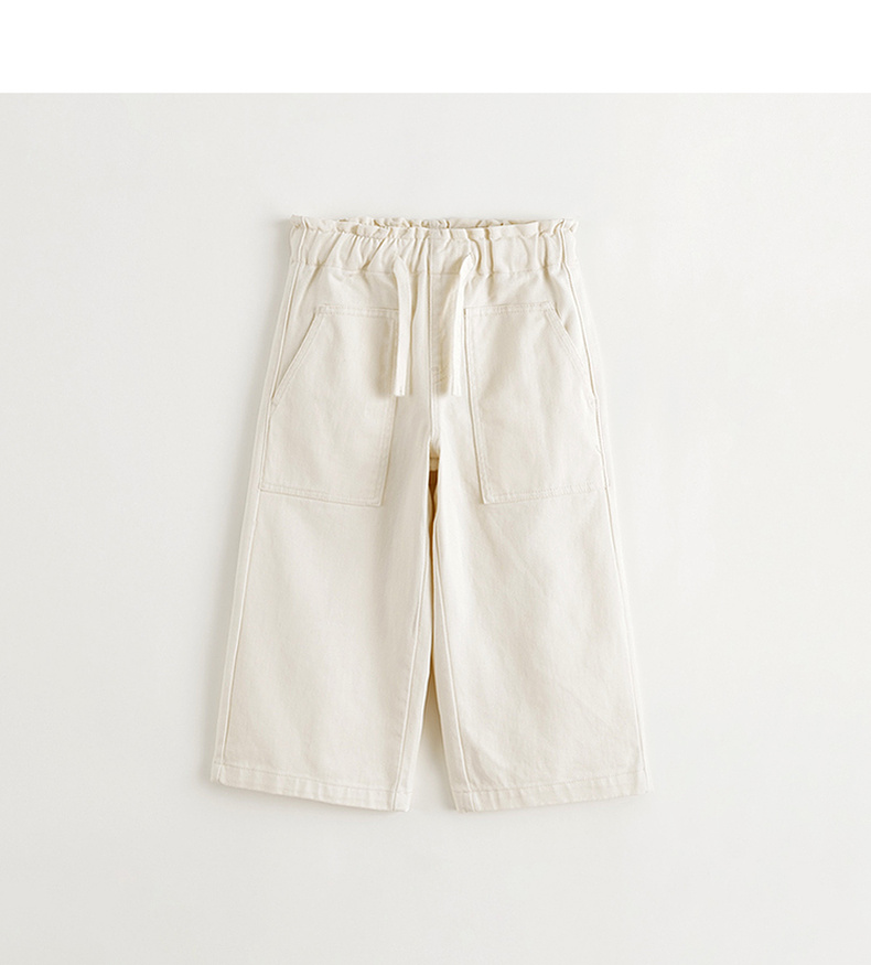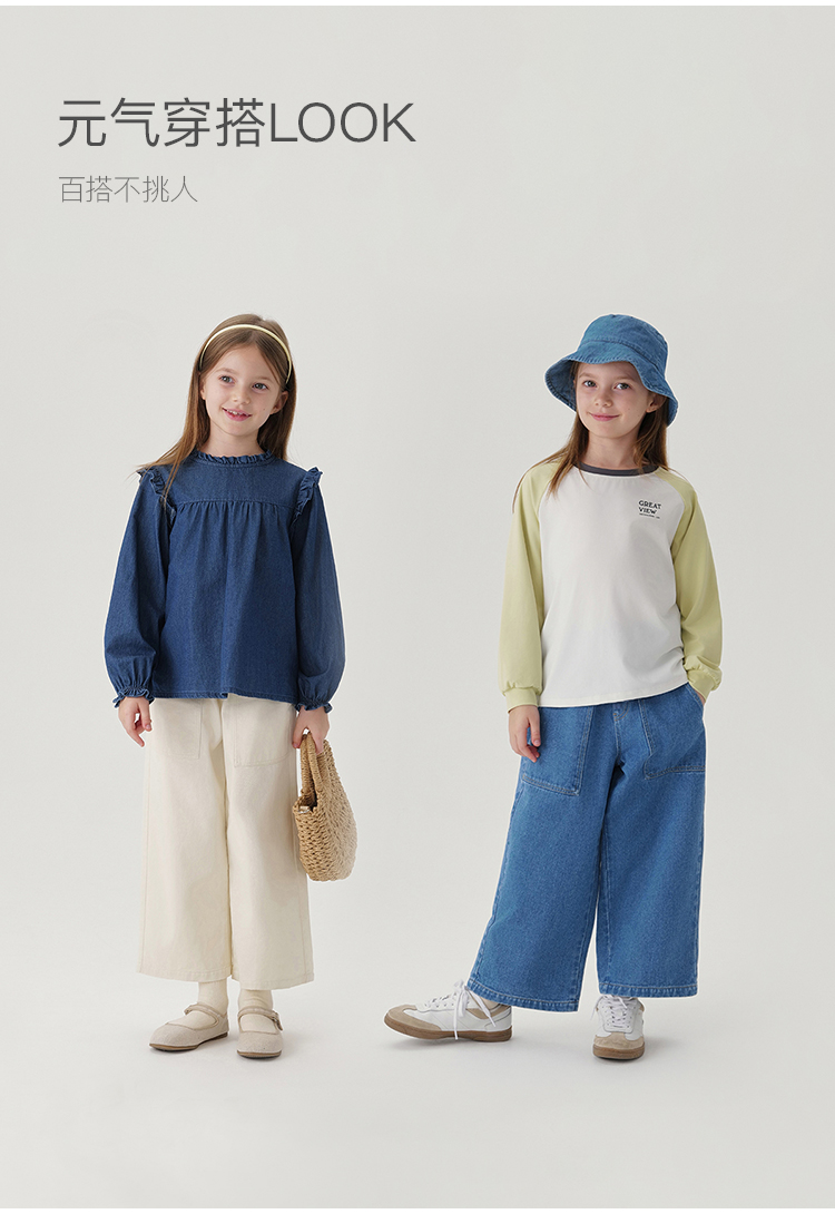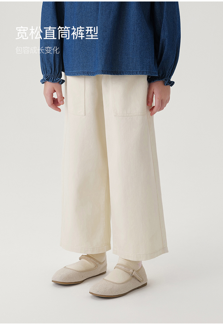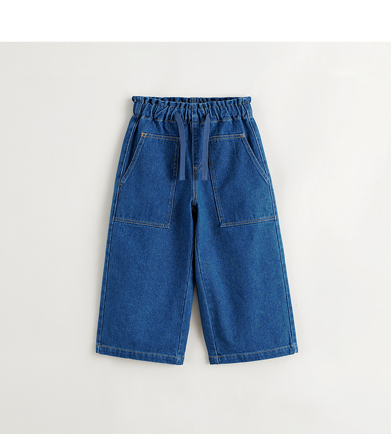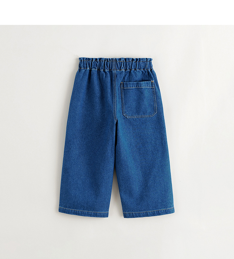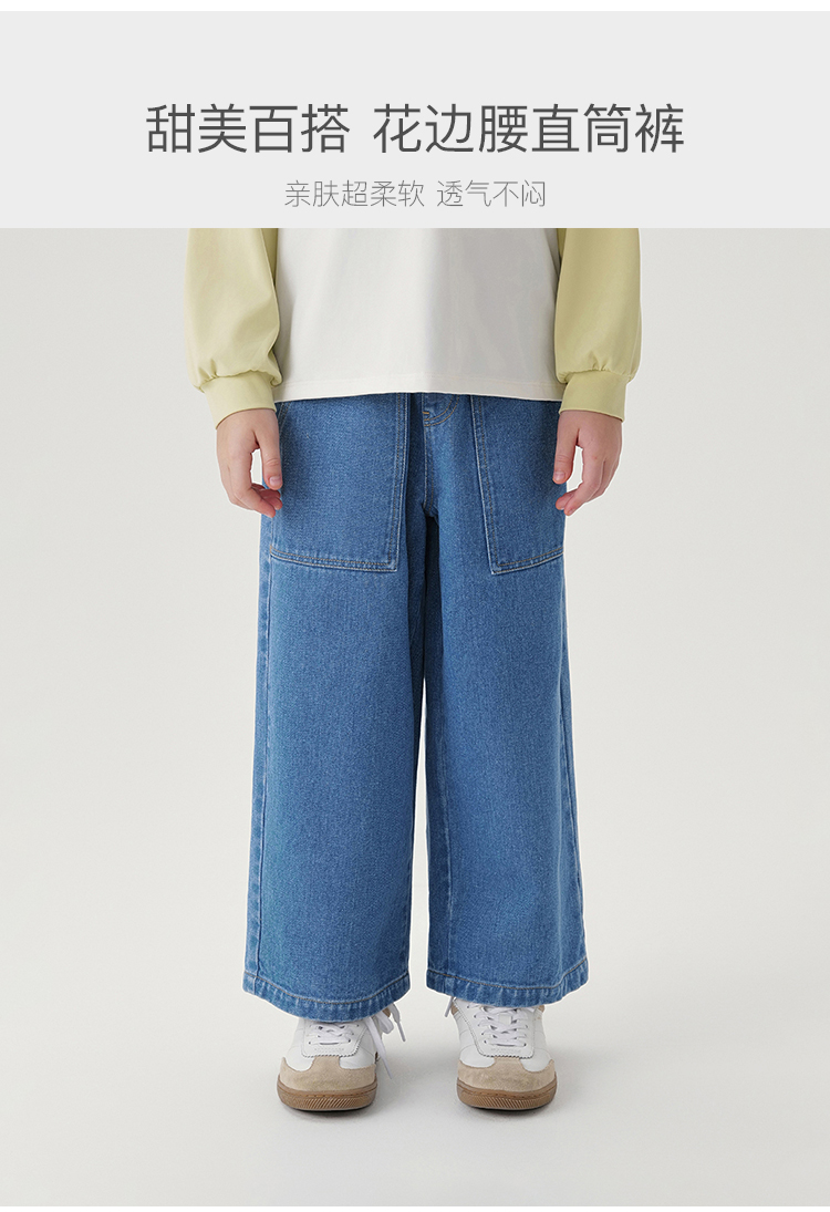 马克珍妮女童花边腰大口袋牛仔裤直筒裤儿童裤子秋装新款241388