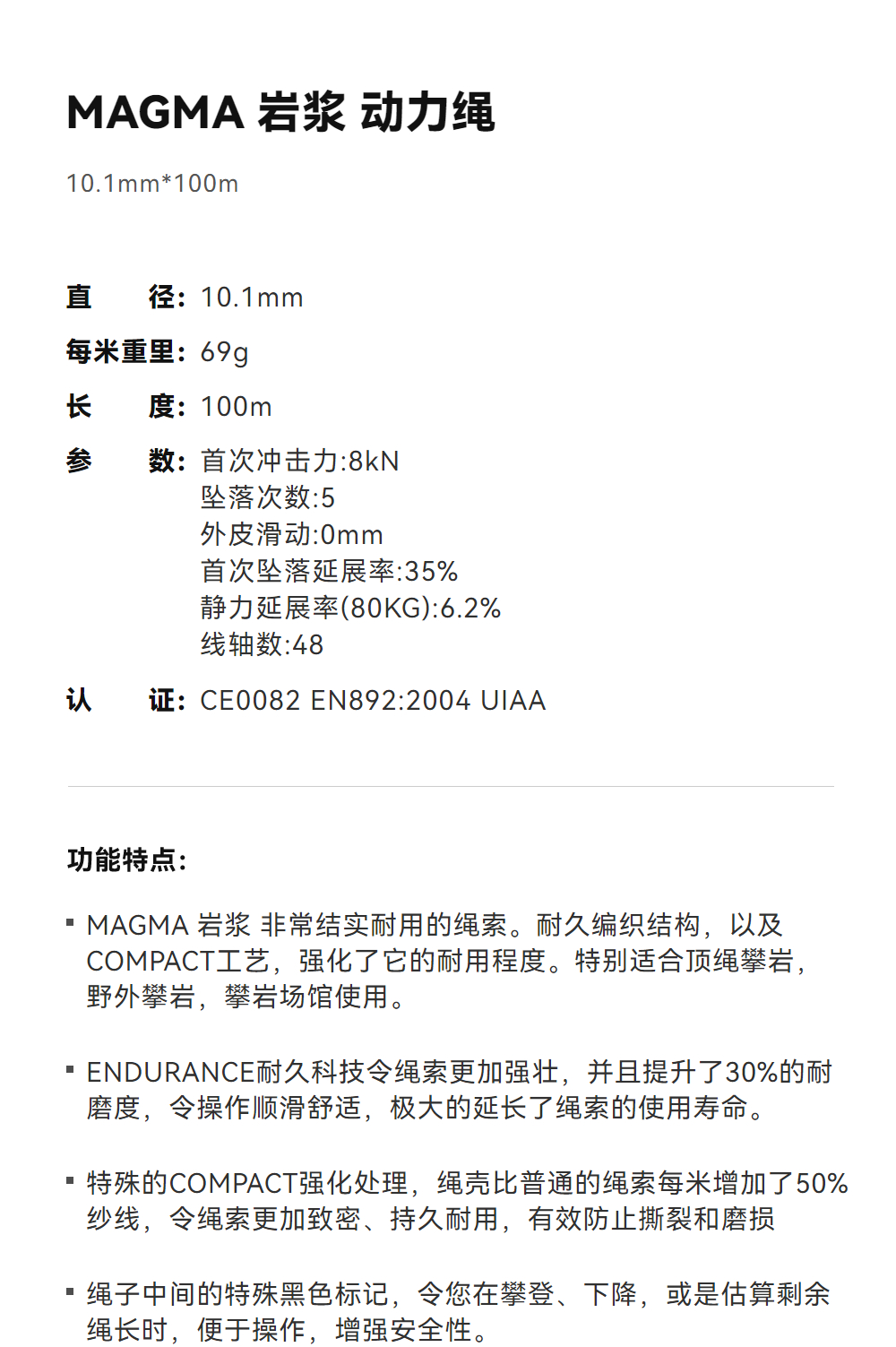 KAILAS凯乐石 户外运动 MAGMA 岩浆 10.1mm*100m动力绳 ER108C