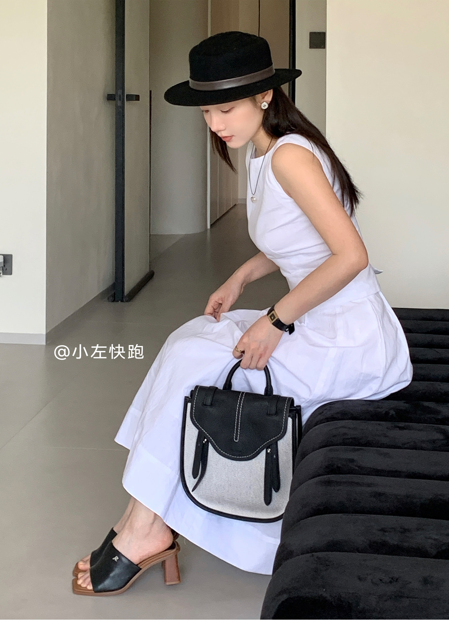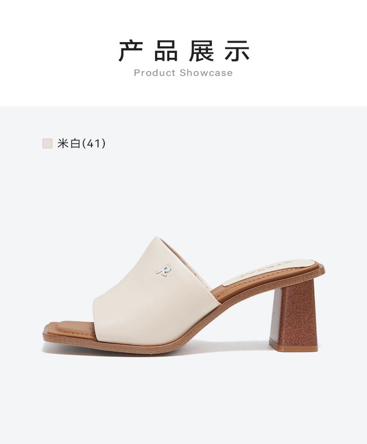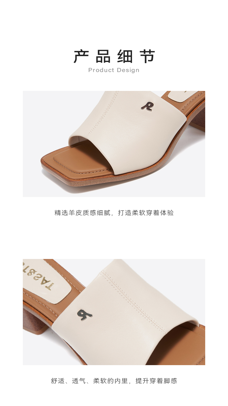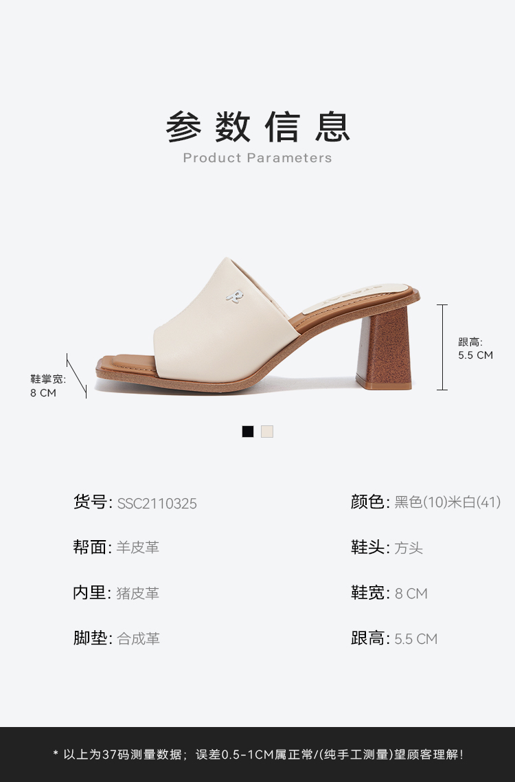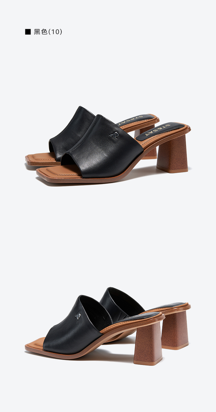 星期六方头极简风粗跟凉拖SSC2110325