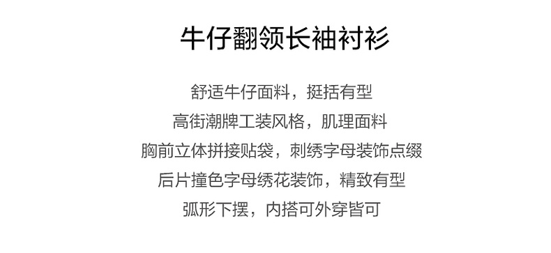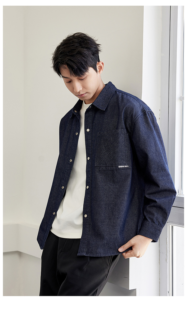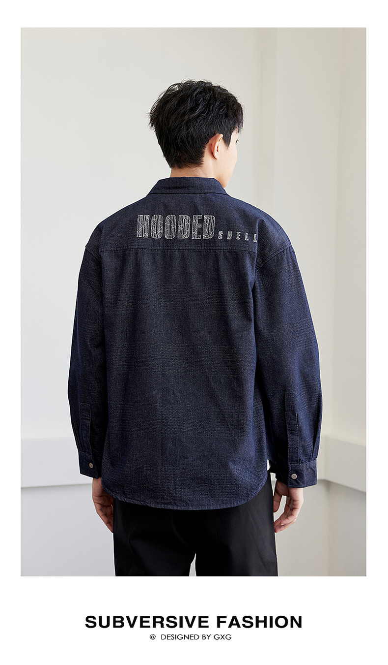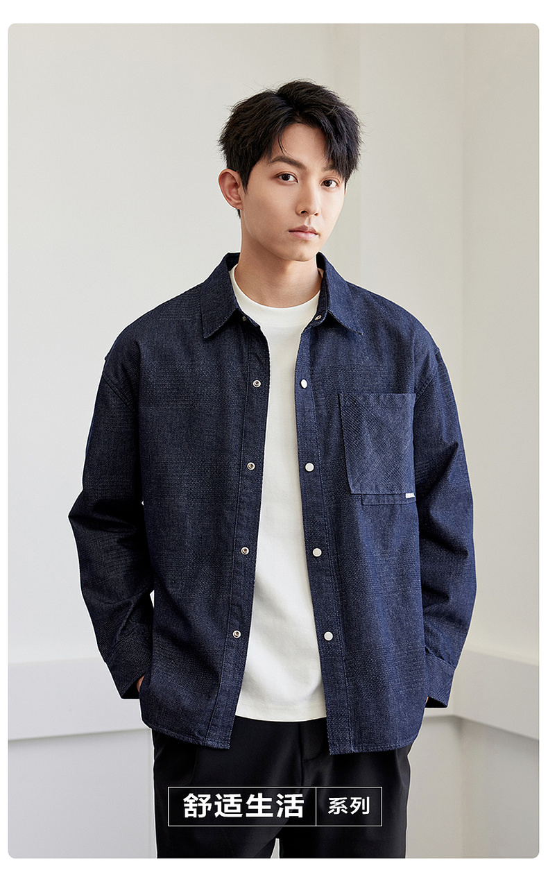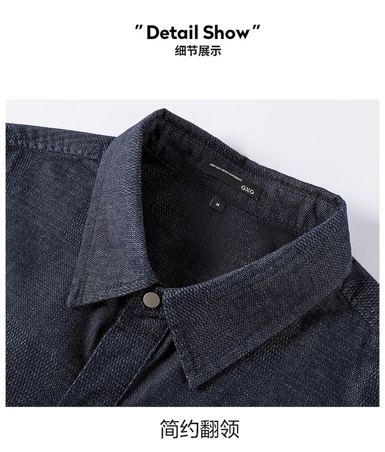 GXG男装【贴布口袋】春季男款时尚休闲牛仔翻领长袖衬衫K&C