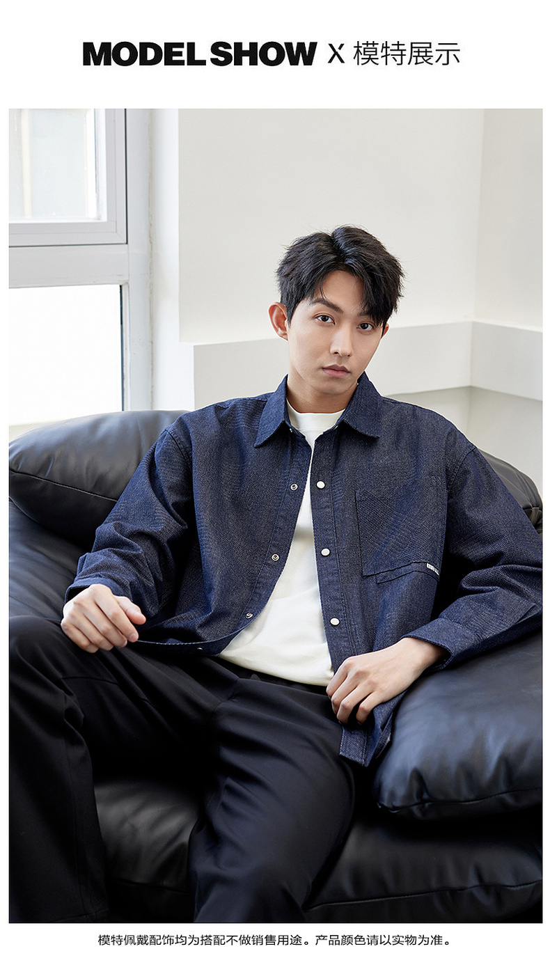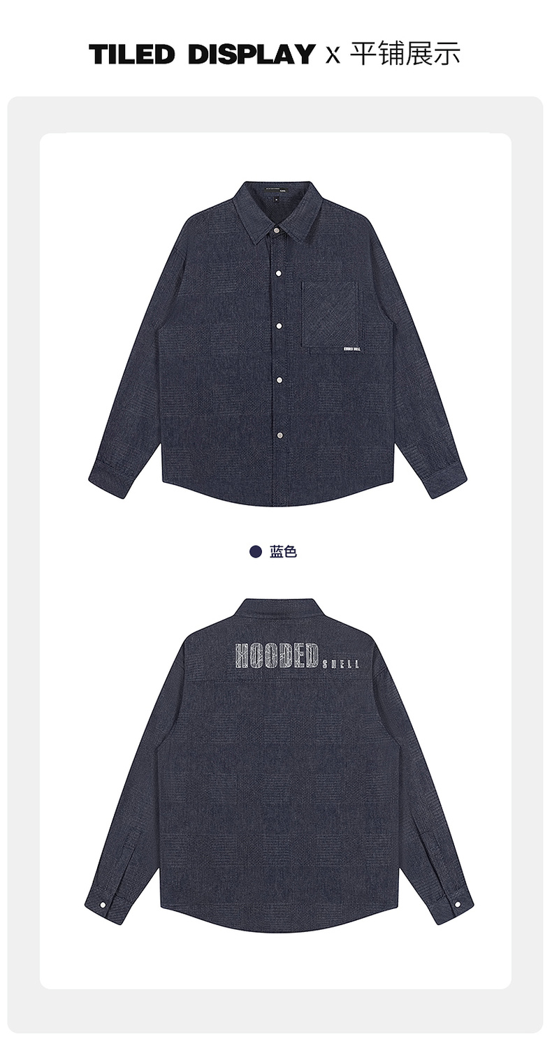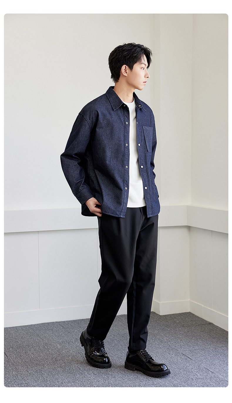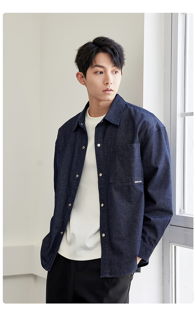 GXG男装【贴布口袋】春季男款时尚休闲牛仔翻领长袖衬衫K&C