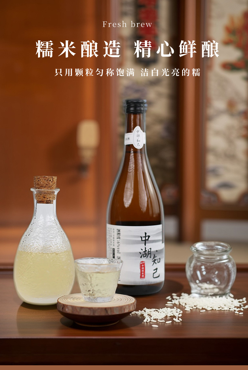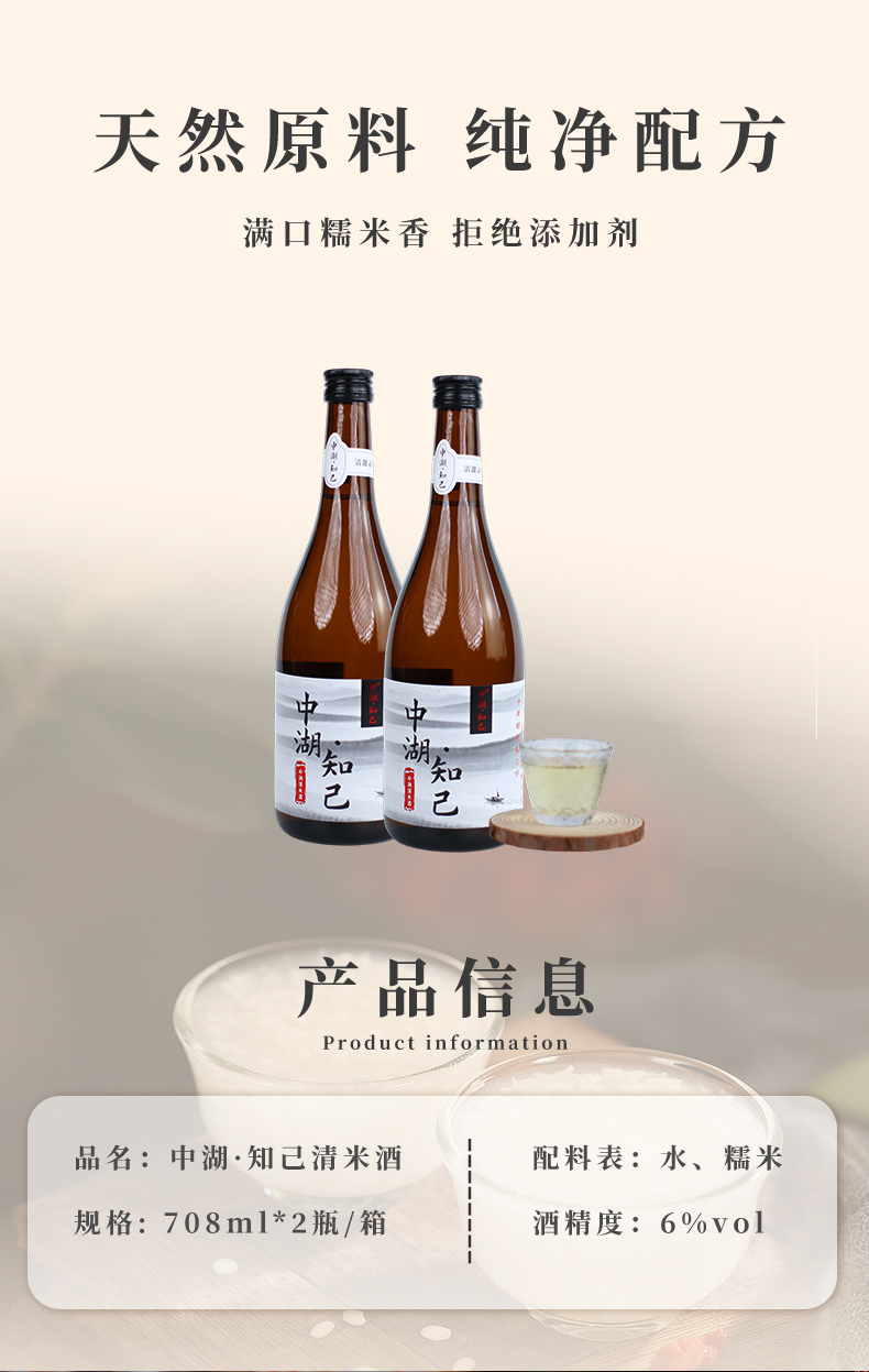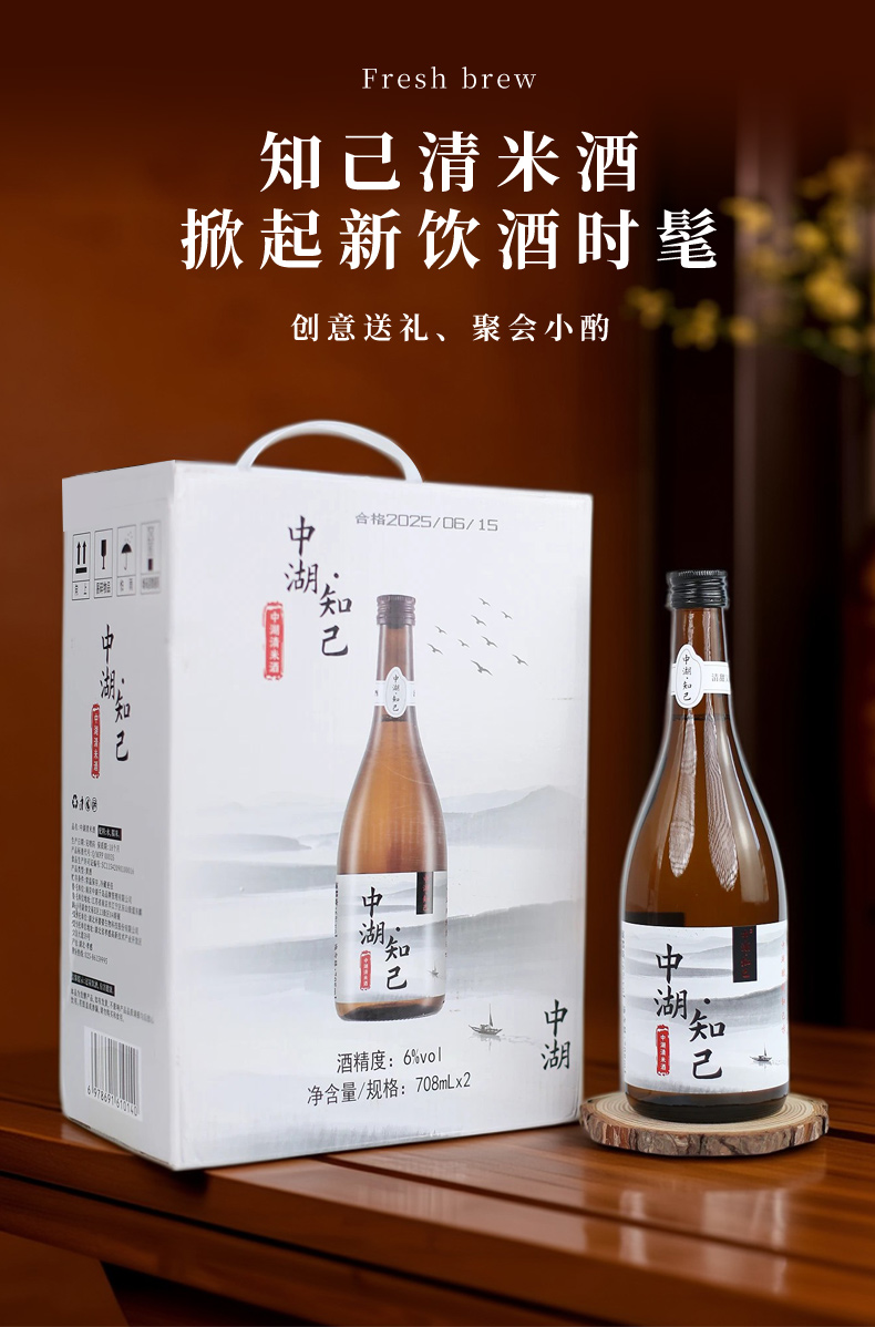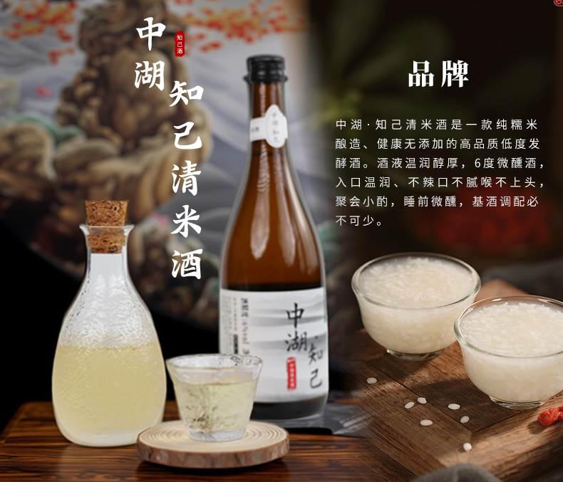 【2箱送1盒葛根醒元饮】中湖·知己6度清米酒 糯米酿造酒 1箱2瓶