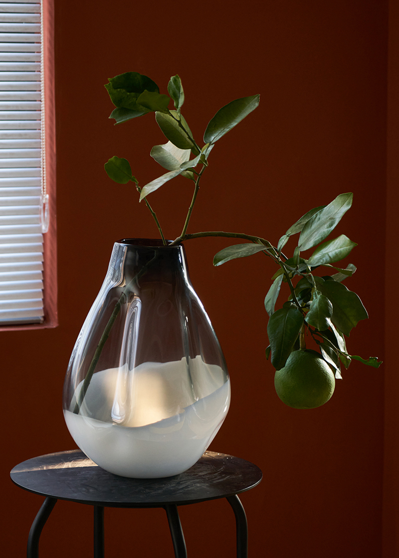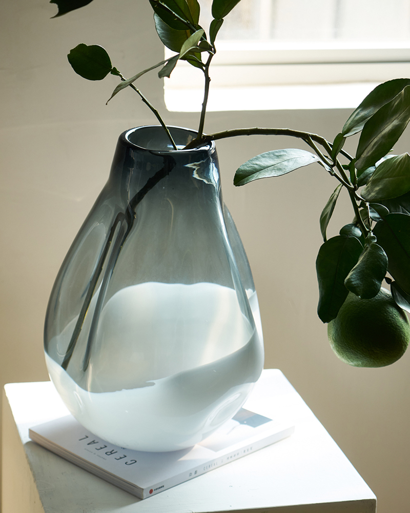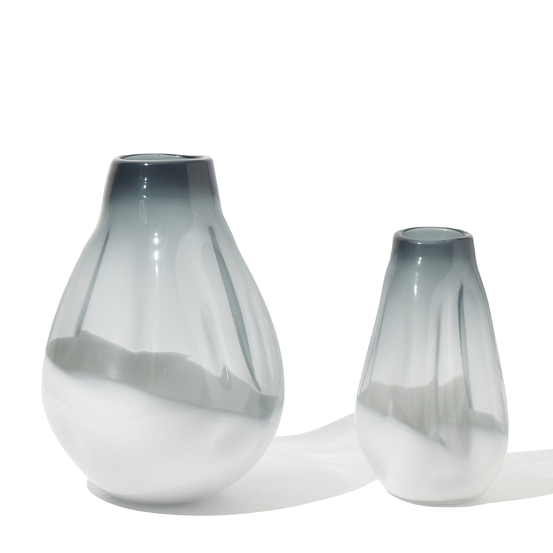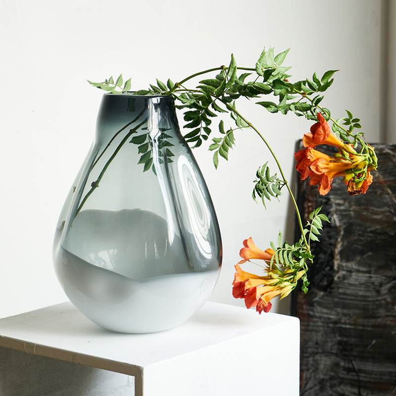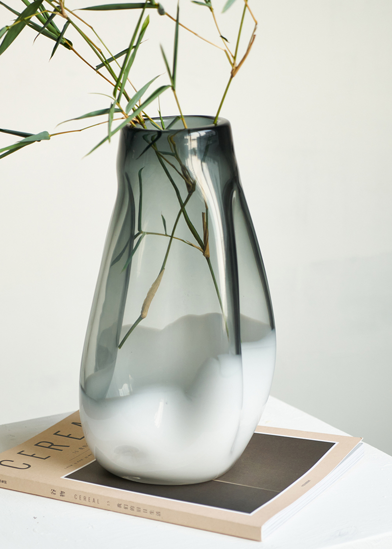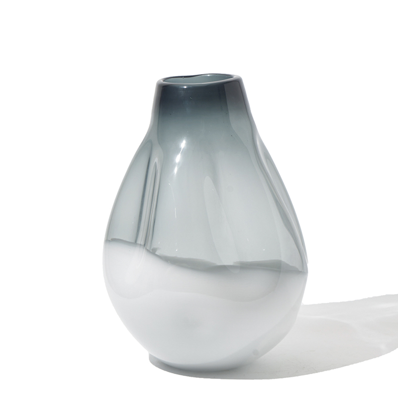 轻奢风简约小口大肚子水滴花瓶上烟灰下白渐变台面花瓶室内装饰品