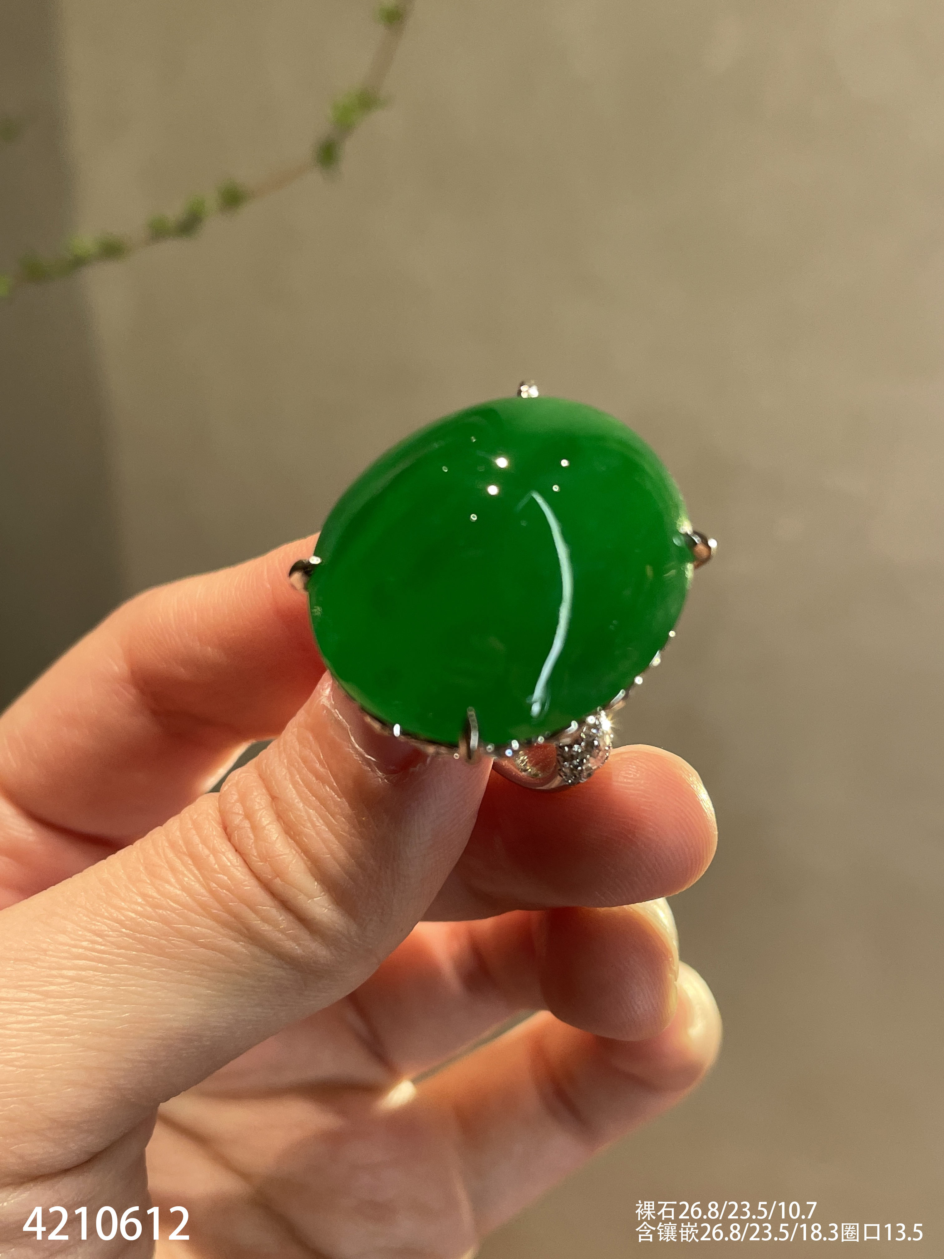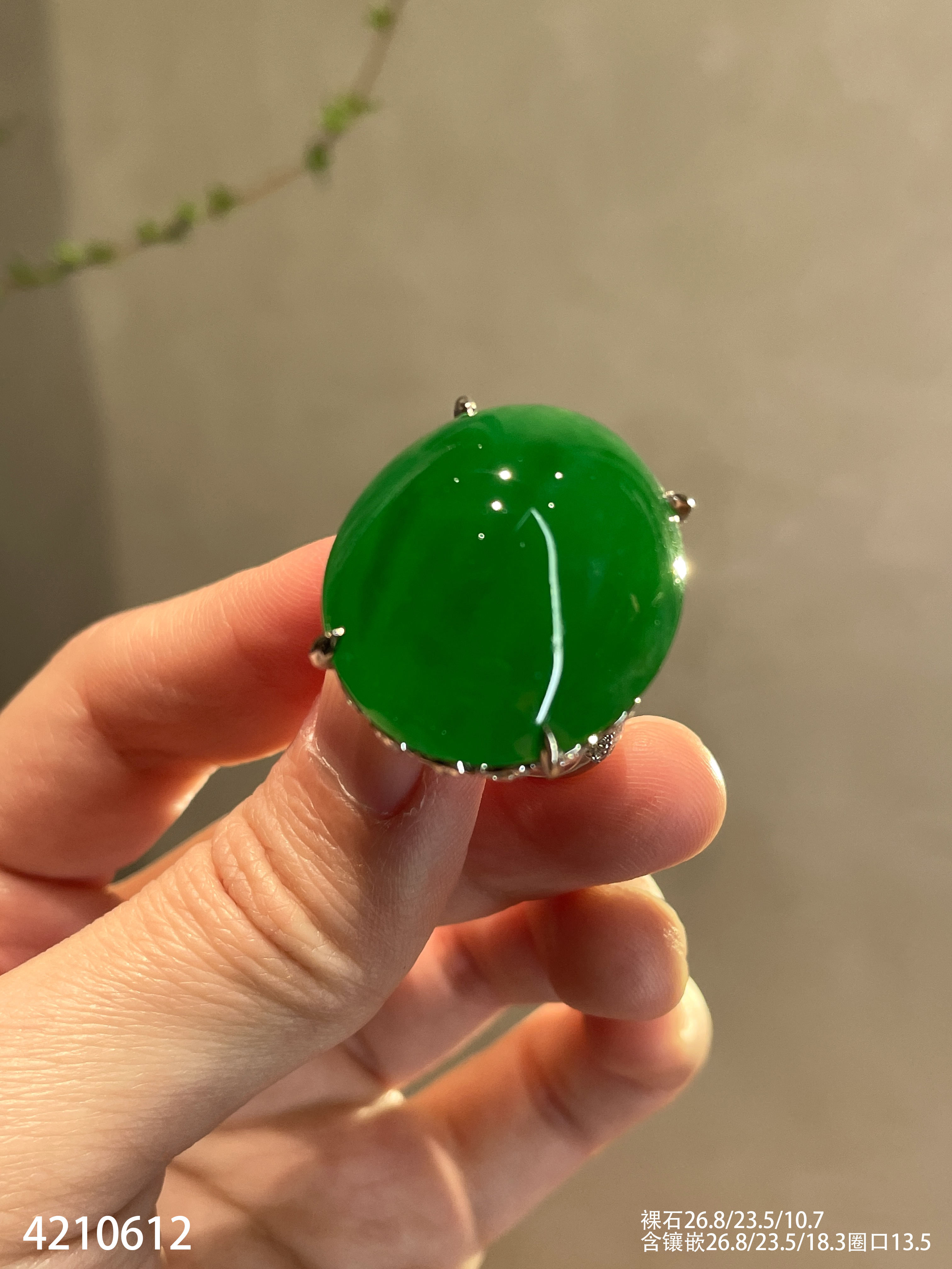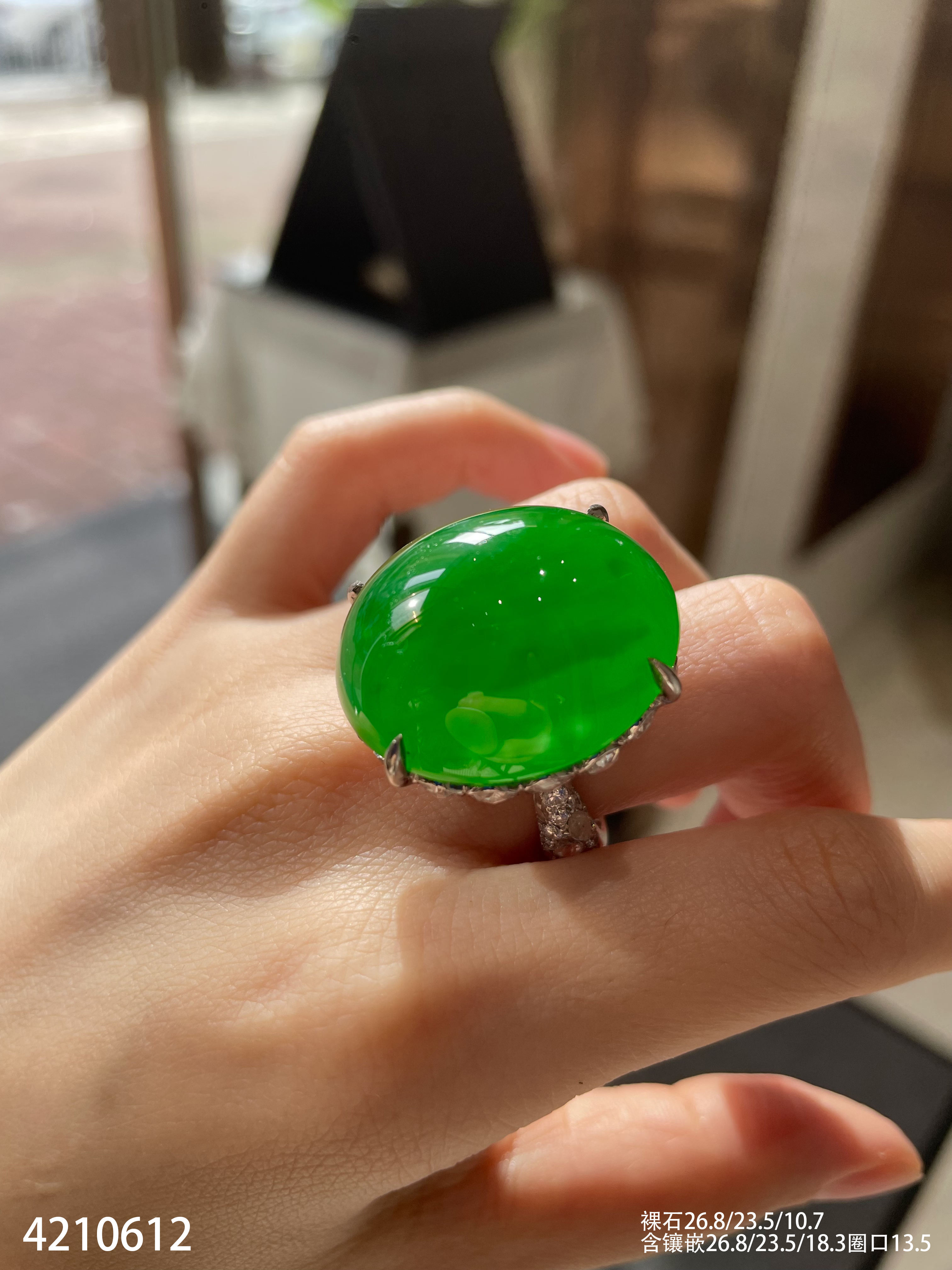 老坑艳绿蛋面戒指【4210612】具体价格微信咨询