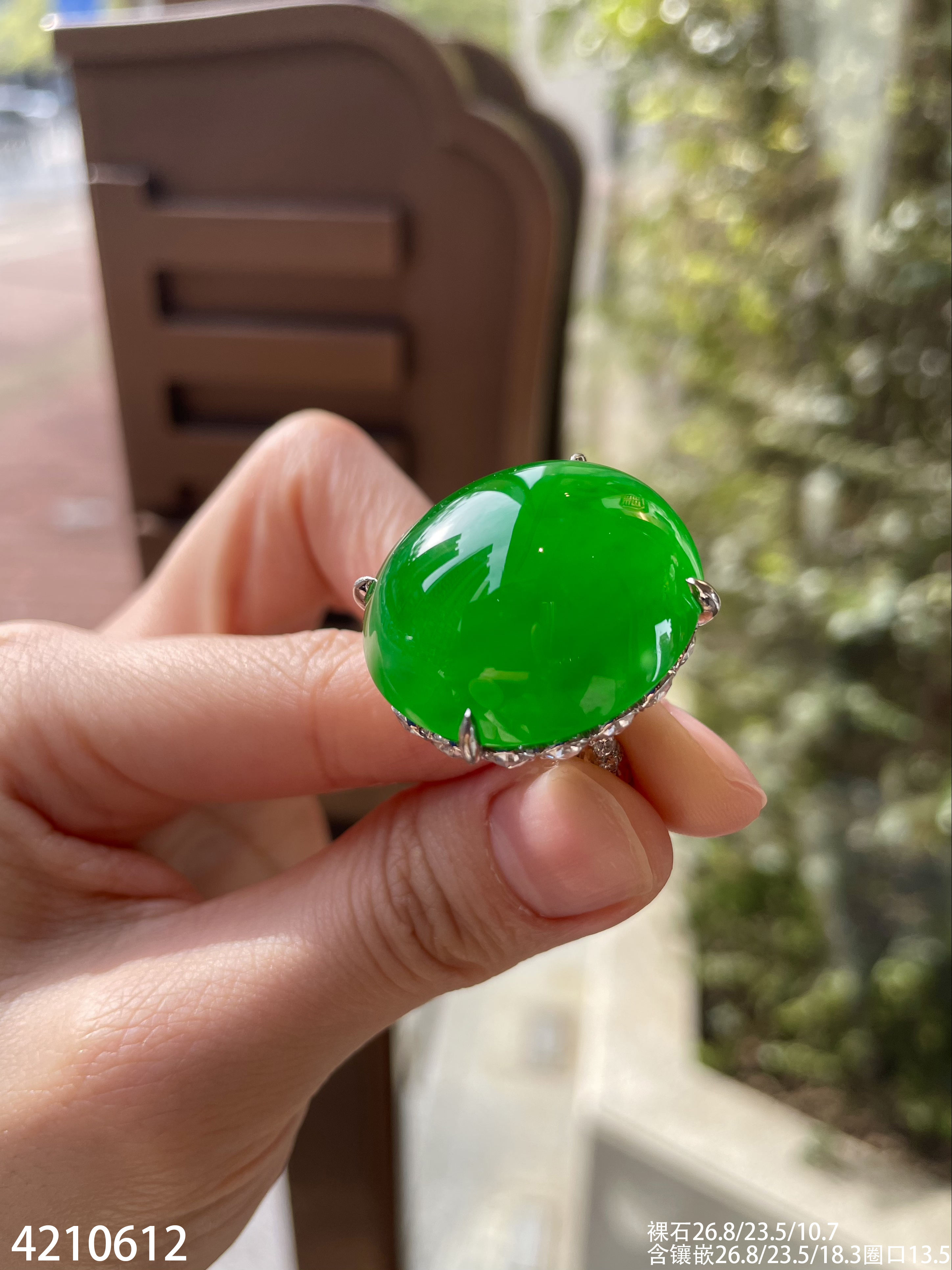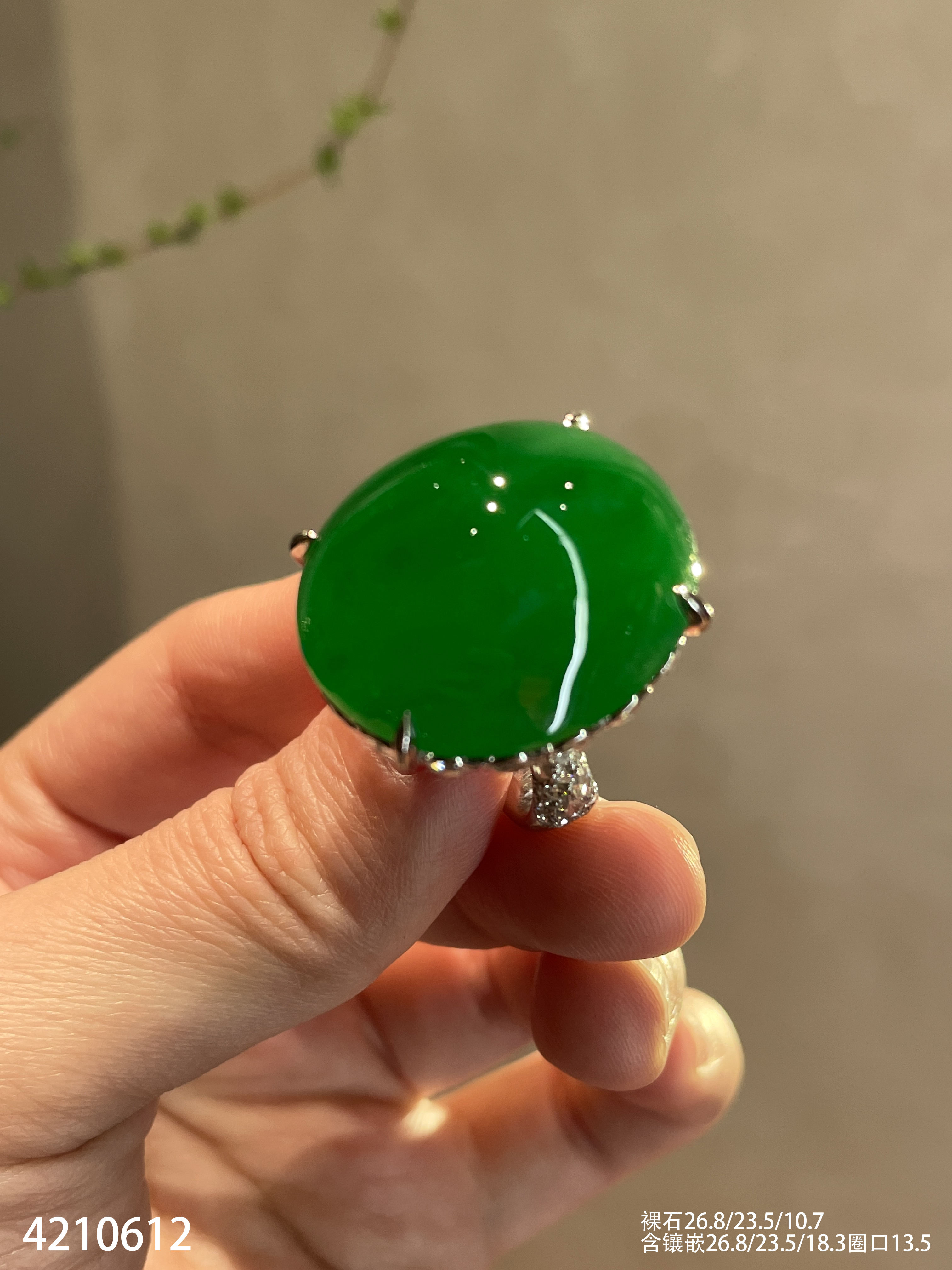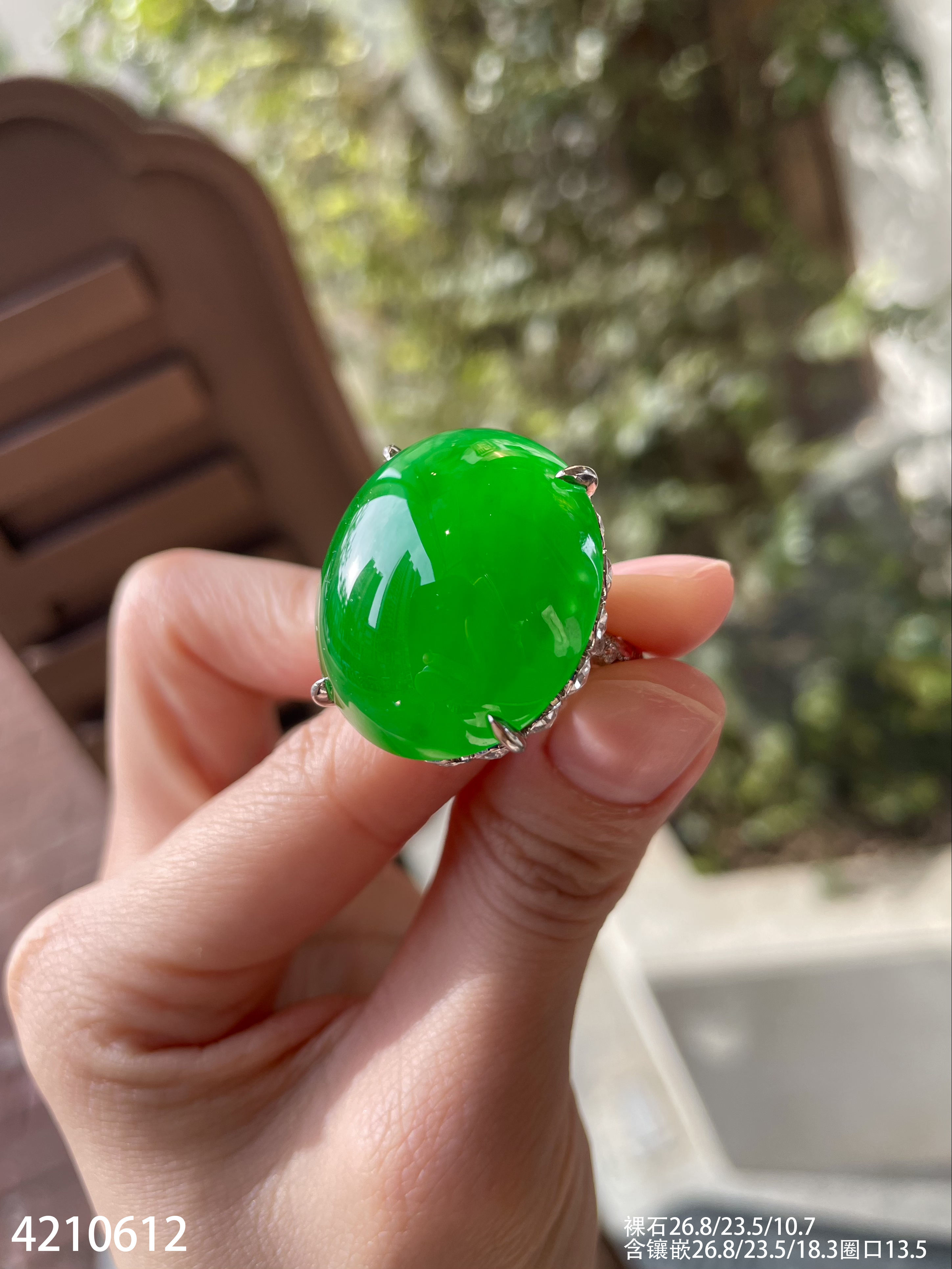 老坑艳绿蛋面戒指【4210612】具体价格微信咨询