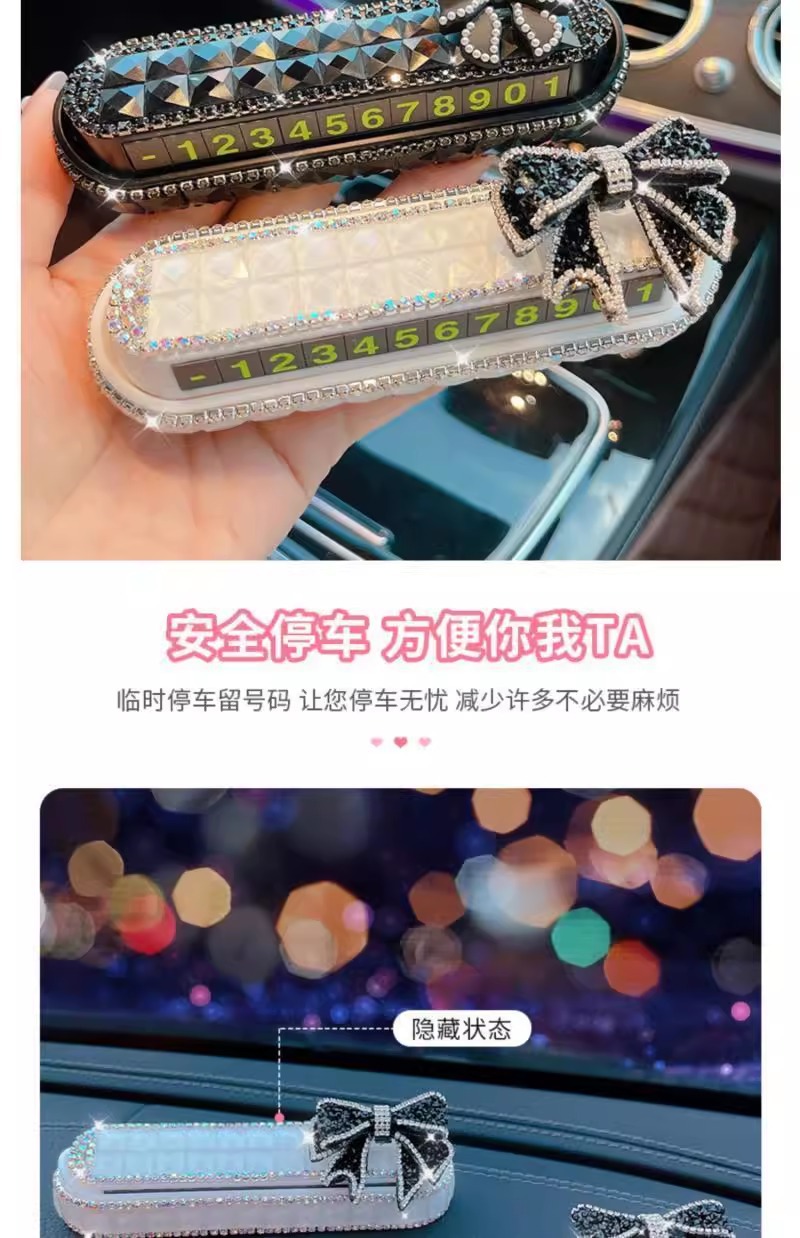 「高颜值!隐藏可移动号牌」停车号码牌 夜光塑料防滑型通用款黑色电话牌挪车牌车载饰品