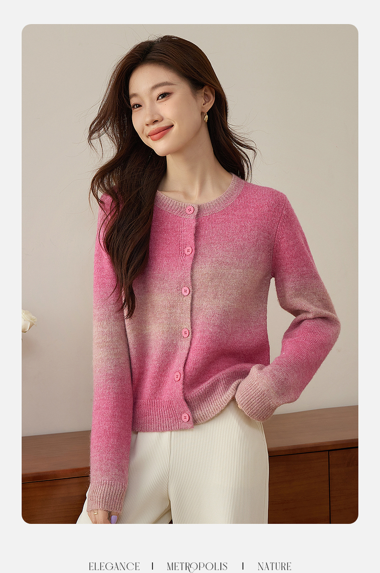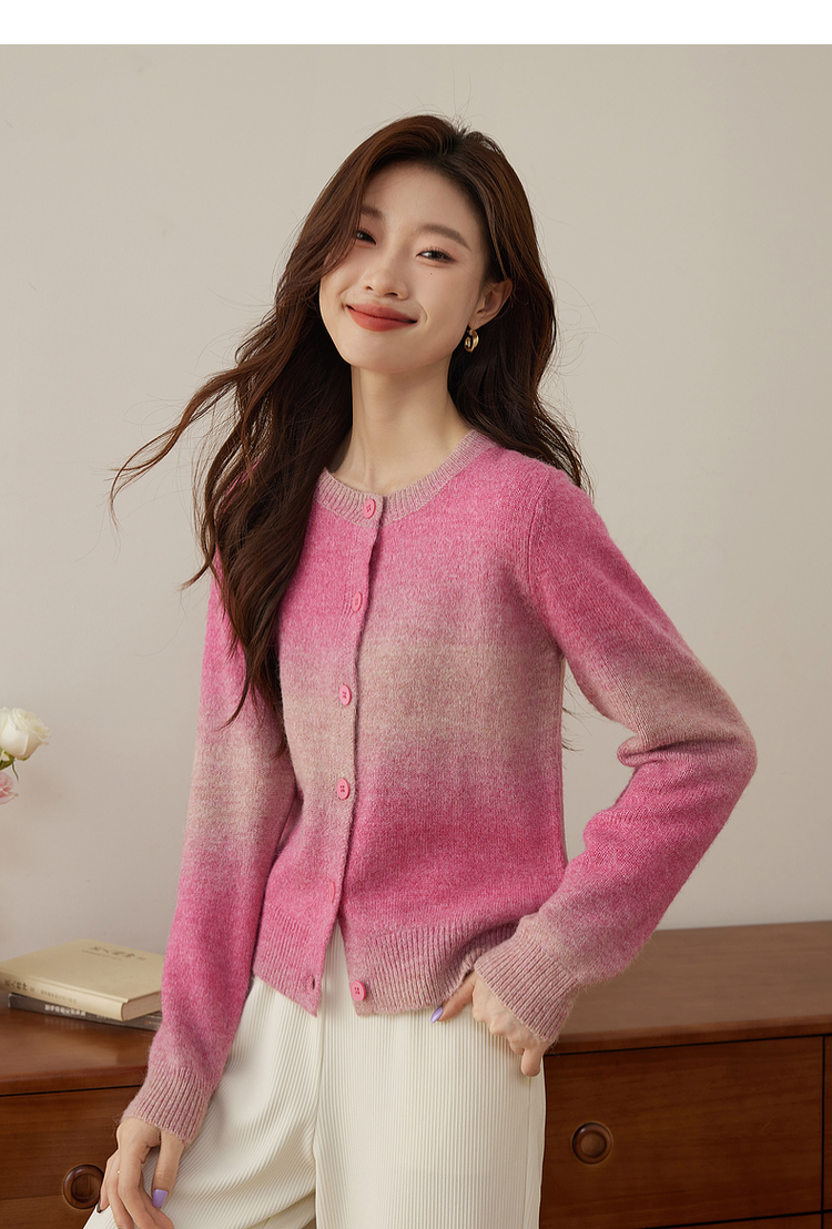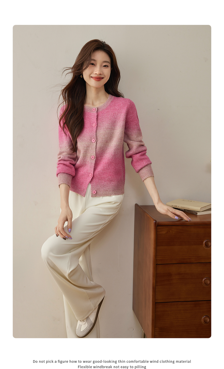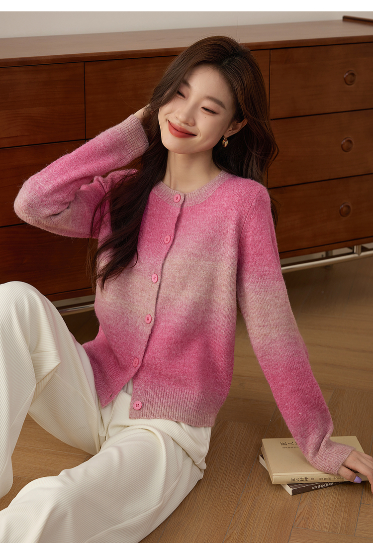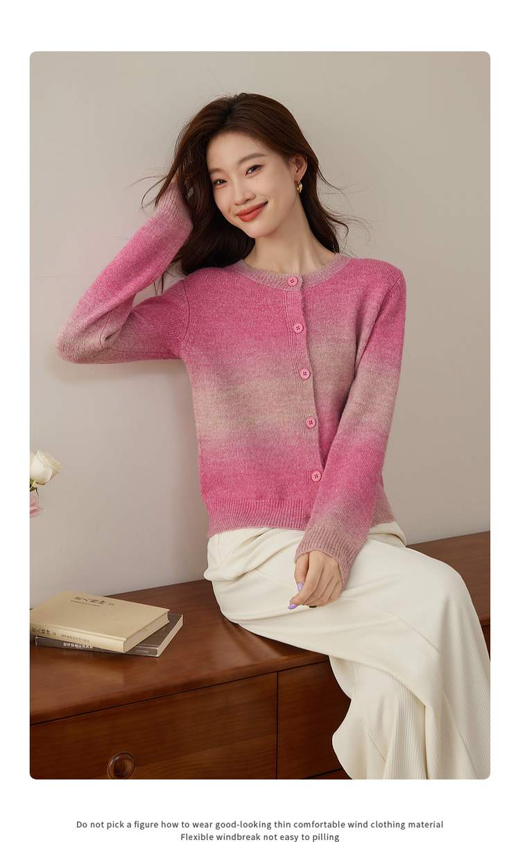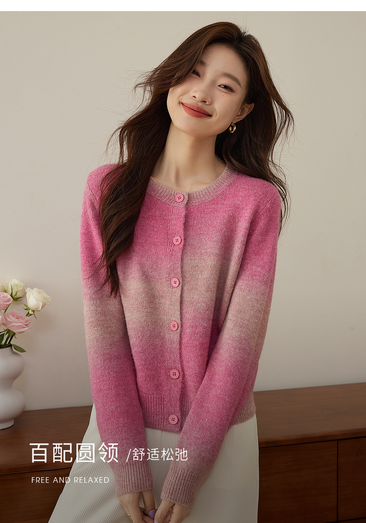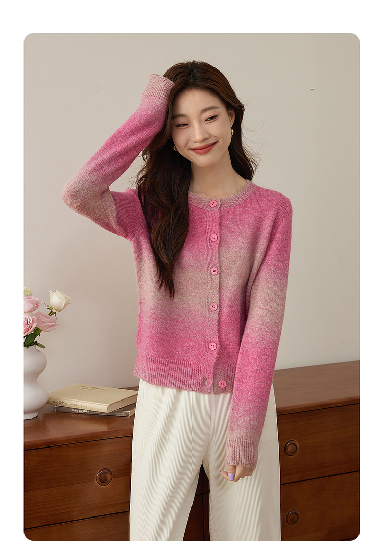【年终特卖】熙世界多巴胺渐变条纹毛衣短外套长袖羊毛针织开衫2025秋装新款