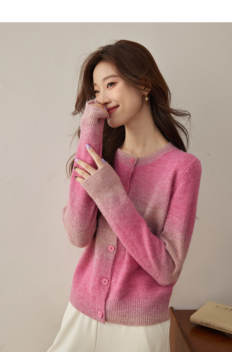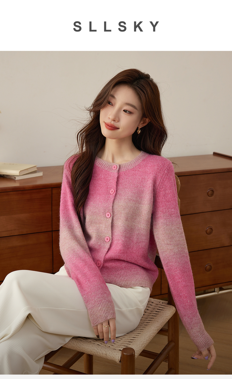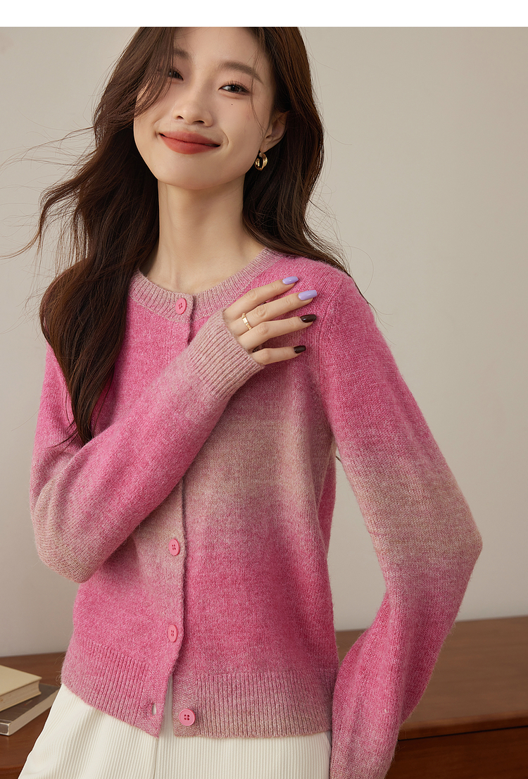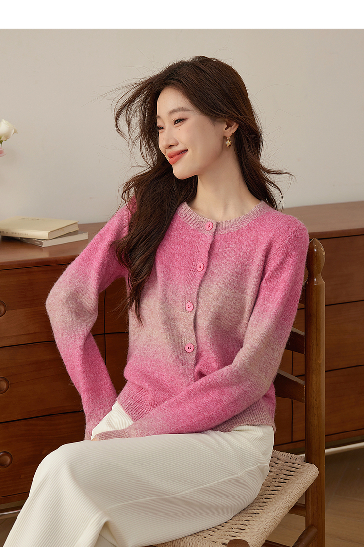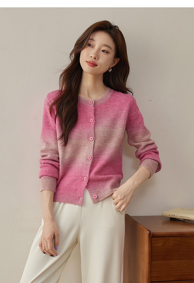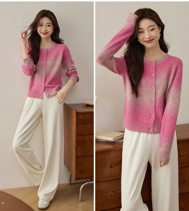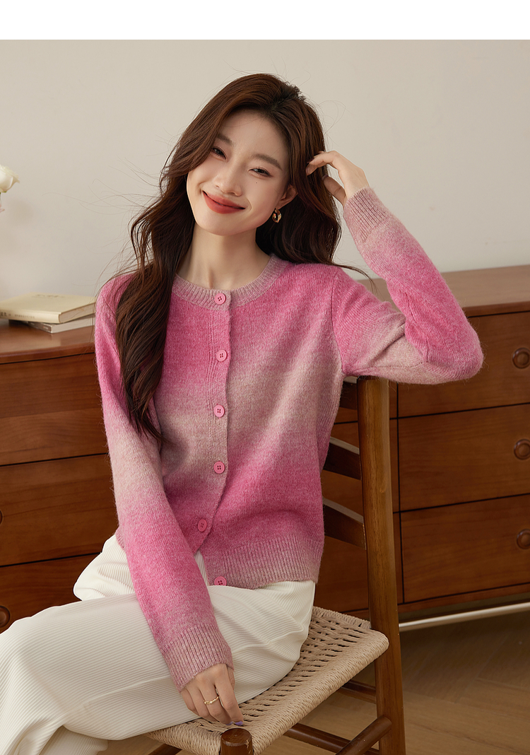 【年终特卖】熙世界多巴胺渐变条纹毛衣短外套长袖羊毛针织开衫2025秋装新款