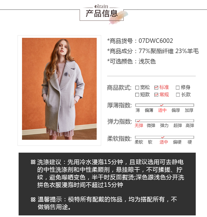 “精致”是欧芮儿olrain品牌文化的核心,欧芮儿认为,精致的女人,不但要外在动人,更要内在迷人,内外兼修,有魅力、有气质、有内涵,自信而不自傲,优雅而不矫揉,自有万种风情而不轻浮,更不故作矜持。