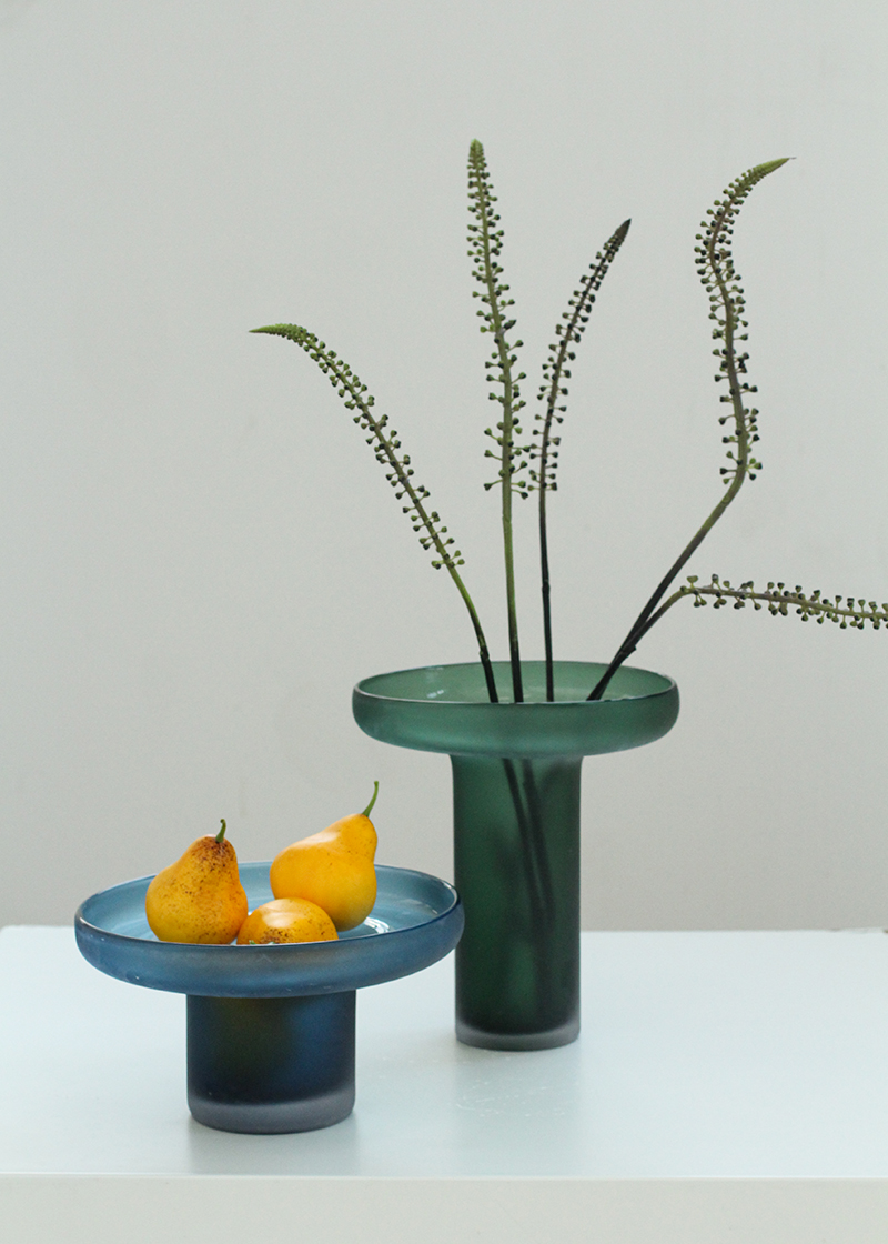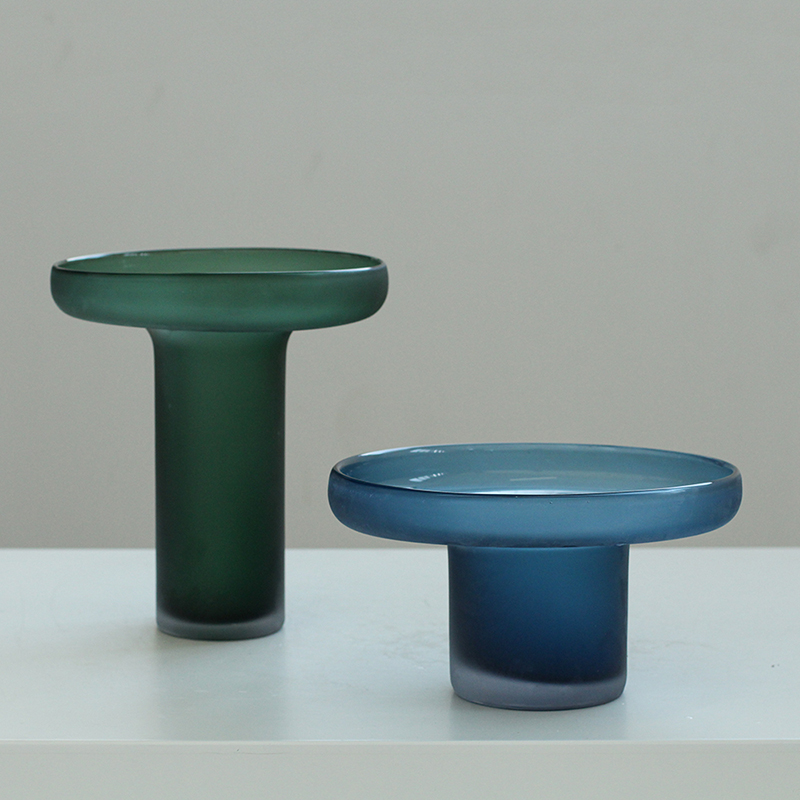 轻奢风创意克莱因蓝手工异形直筒磨砂玻璃花瓶客厅孔雀蓝台面花瓶