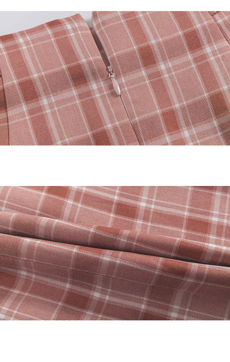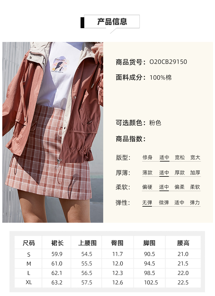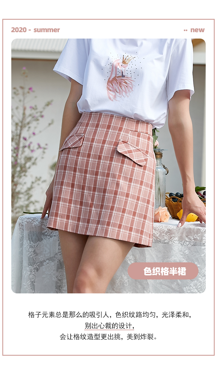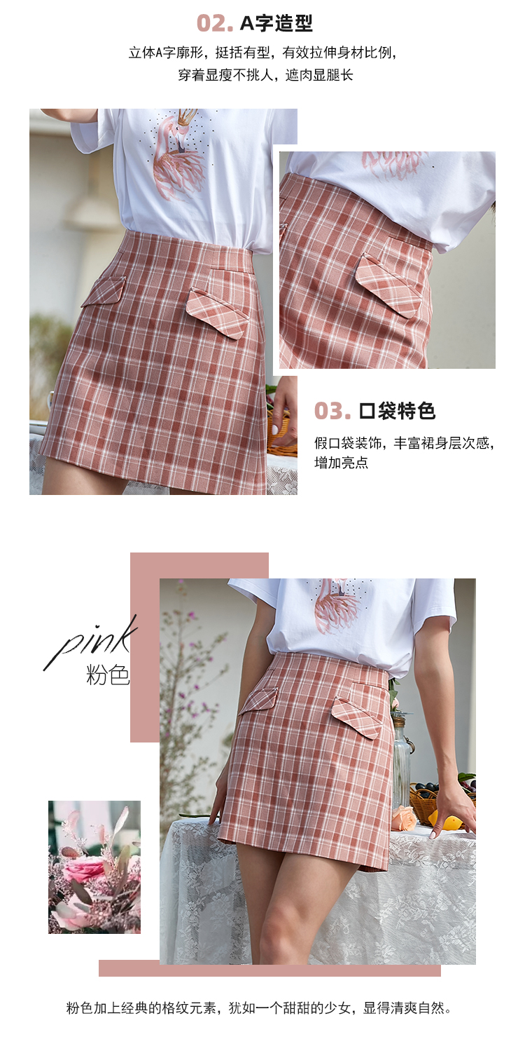欧芮儿夏装新款高腰显瘦格子半身裙女粉色短裙百搭a字包臀裙