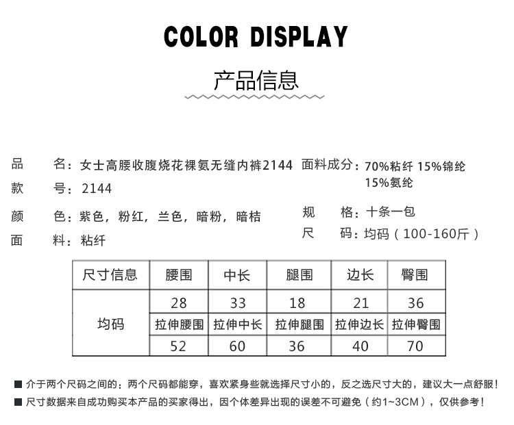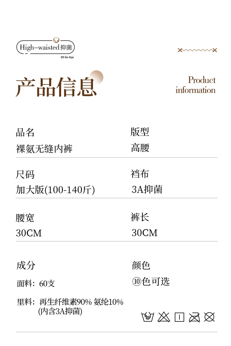女士高腰收腹塑腰裸氨脚口无痕三角内裤2191/2144/92179