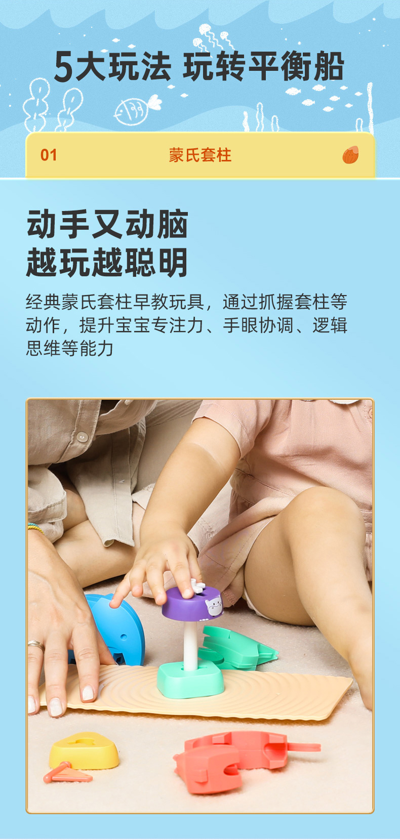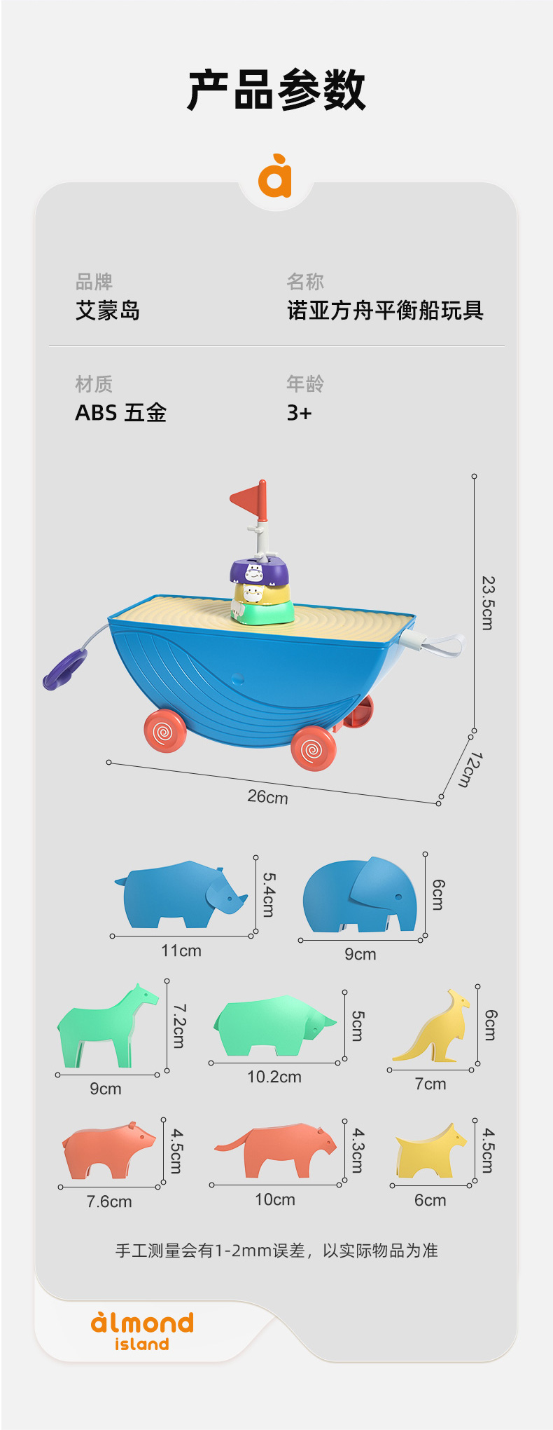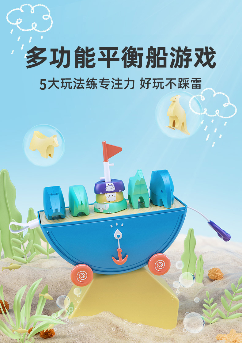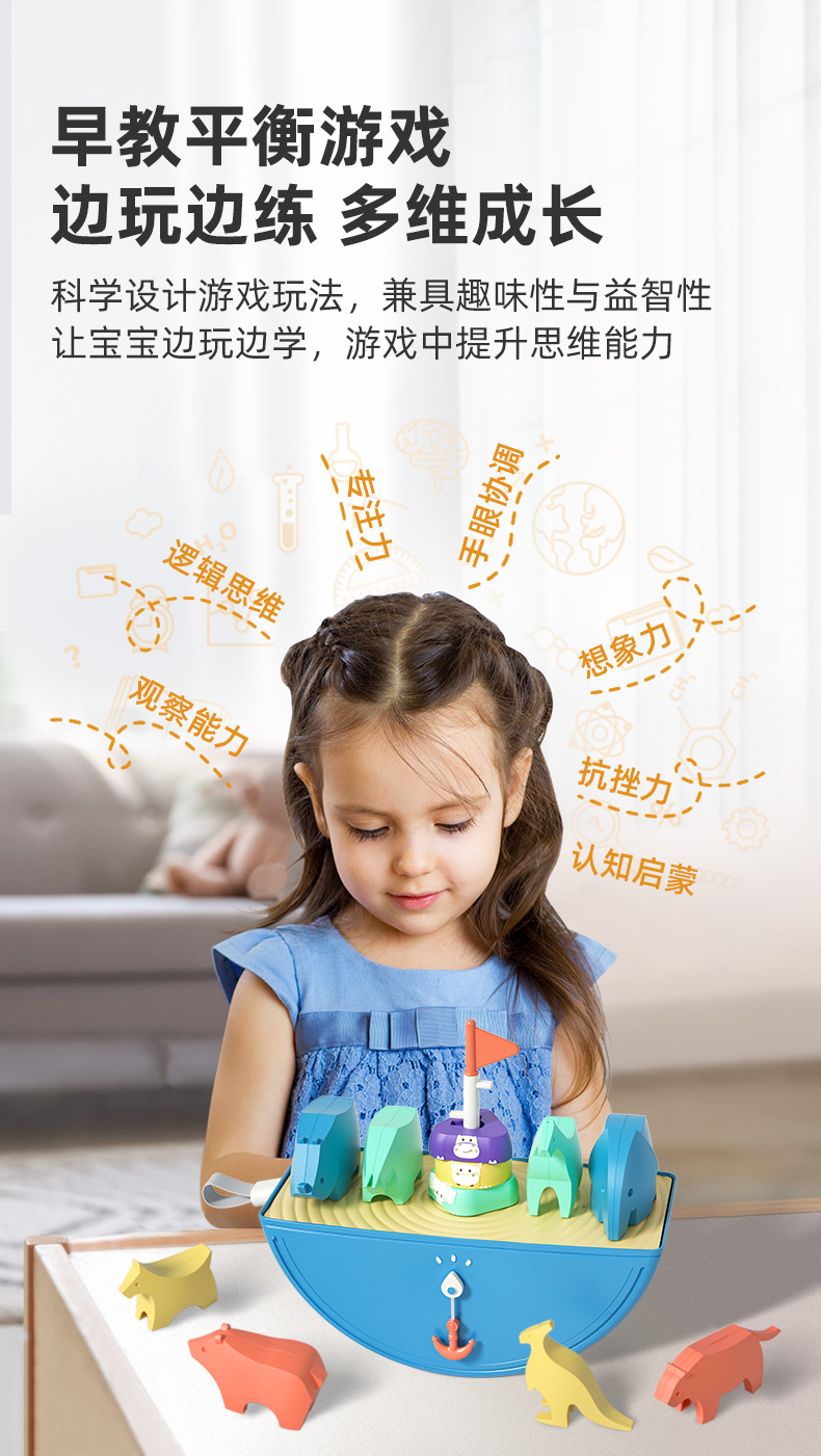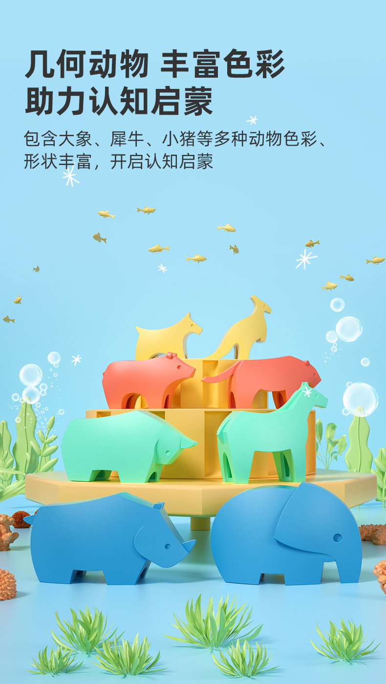 【艾蒙岛】诺亚方舟平衡船几何动物男孩女孩早教叠叠乐益智玩具