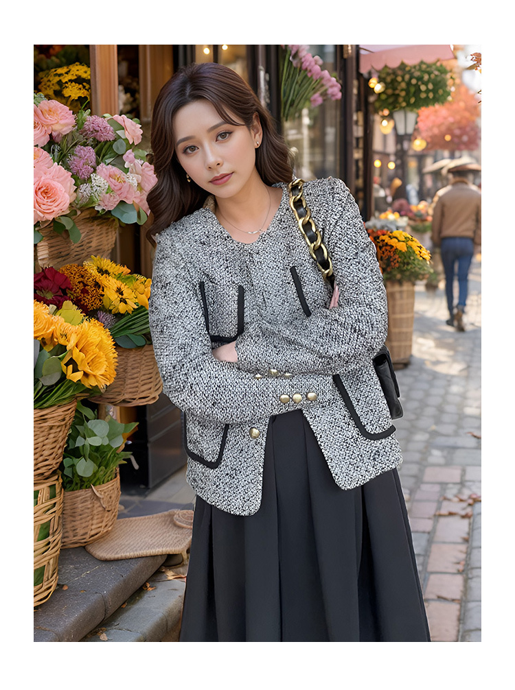 9/8奢姿大码女装2024秋季小香风外套连衣裙两件套胖妹妹时尚拼接套装9943991303