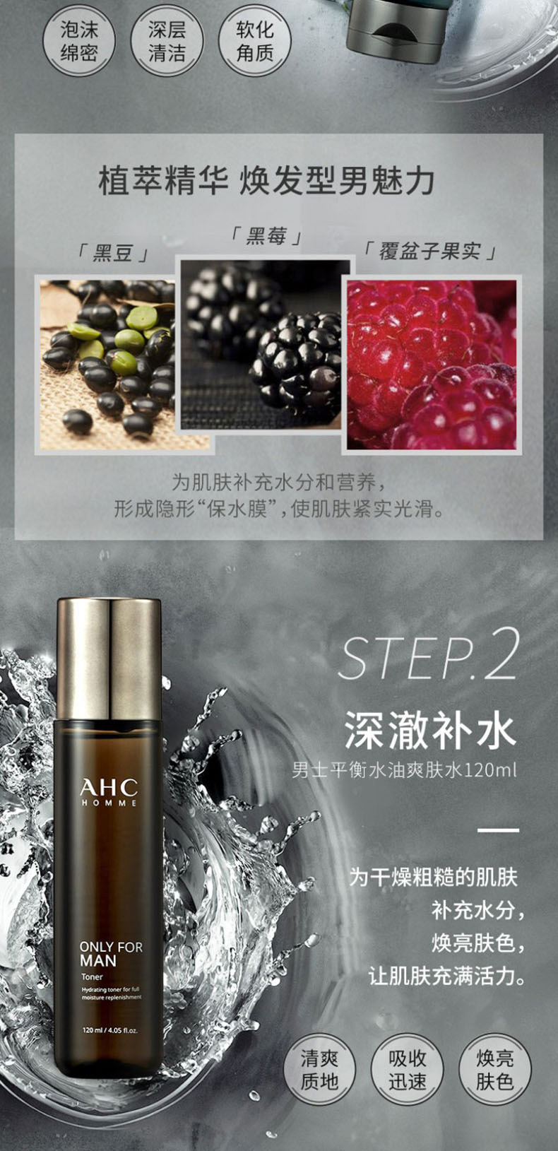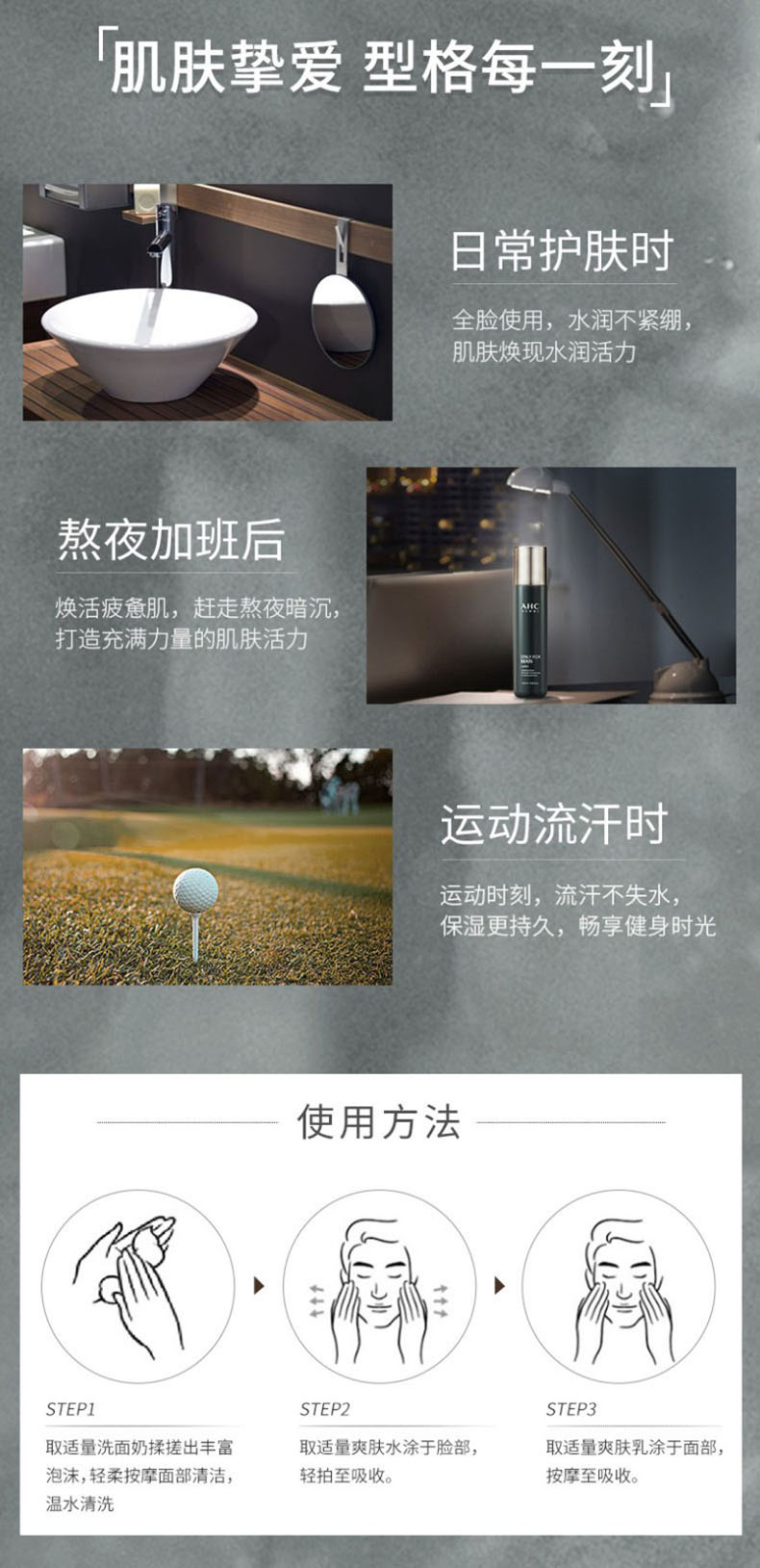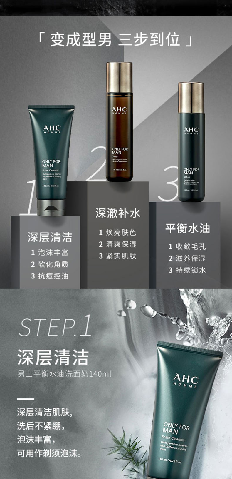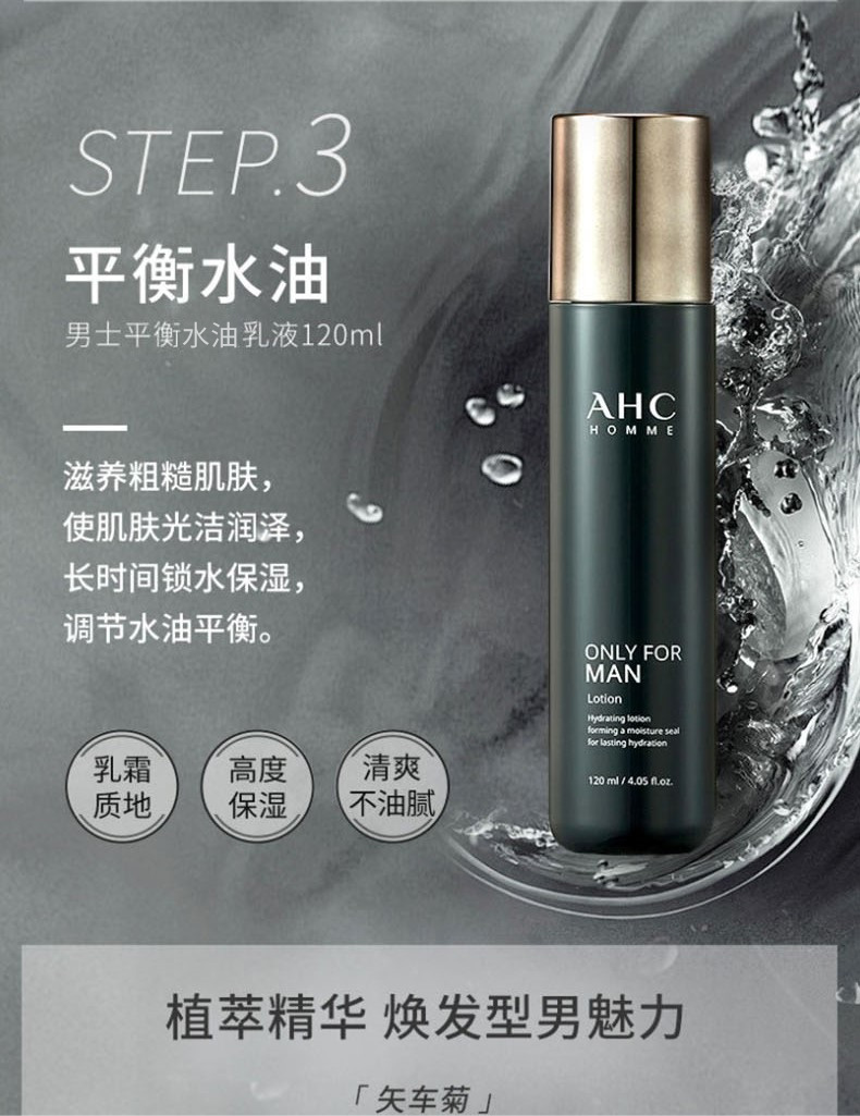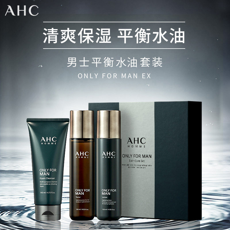 AHC 爱和纯男士平衡舒润洁水乳三件套装 控油补水保湿
