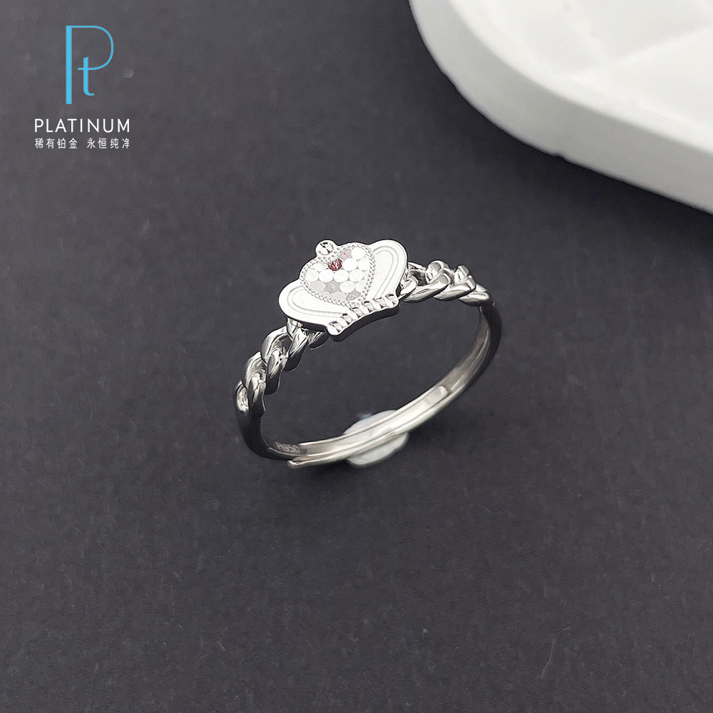 【限时8.8折】【线上铂金馆】PT950 #皇冠 【国际铂金协会】铂金锁链戒臂活口女戒鱼鳞皇冠女戒(BJZ00170)预售产品下单后不退款不退货不换货不补差价)