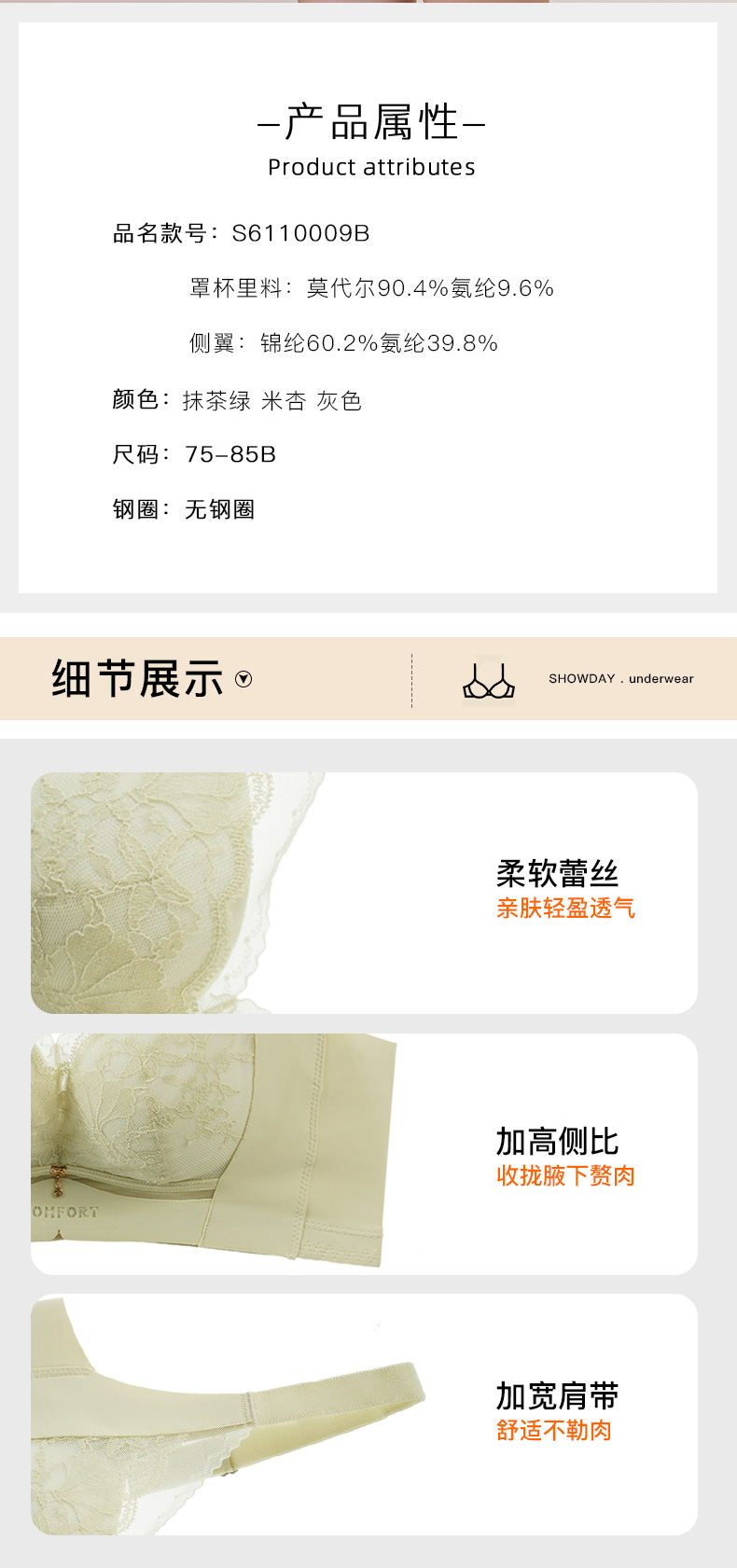 【6.9折限时优惠】【B杯单件】【秀黛】蕾丝新调无钢圈中厚杯文胸S6110009B【门店同款】