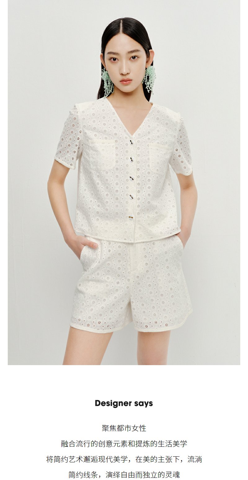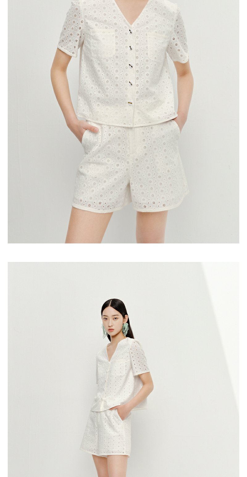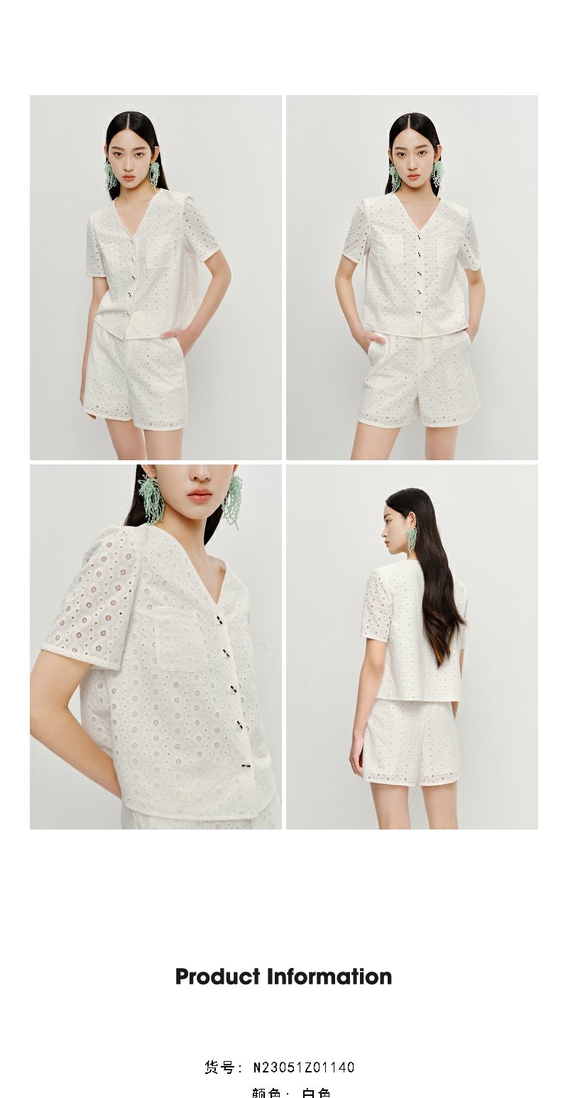 NEELLY纳俪商场同款夏季新款气质V领短袖衬衫女阔腿短裤时尚套装N23051Z01140