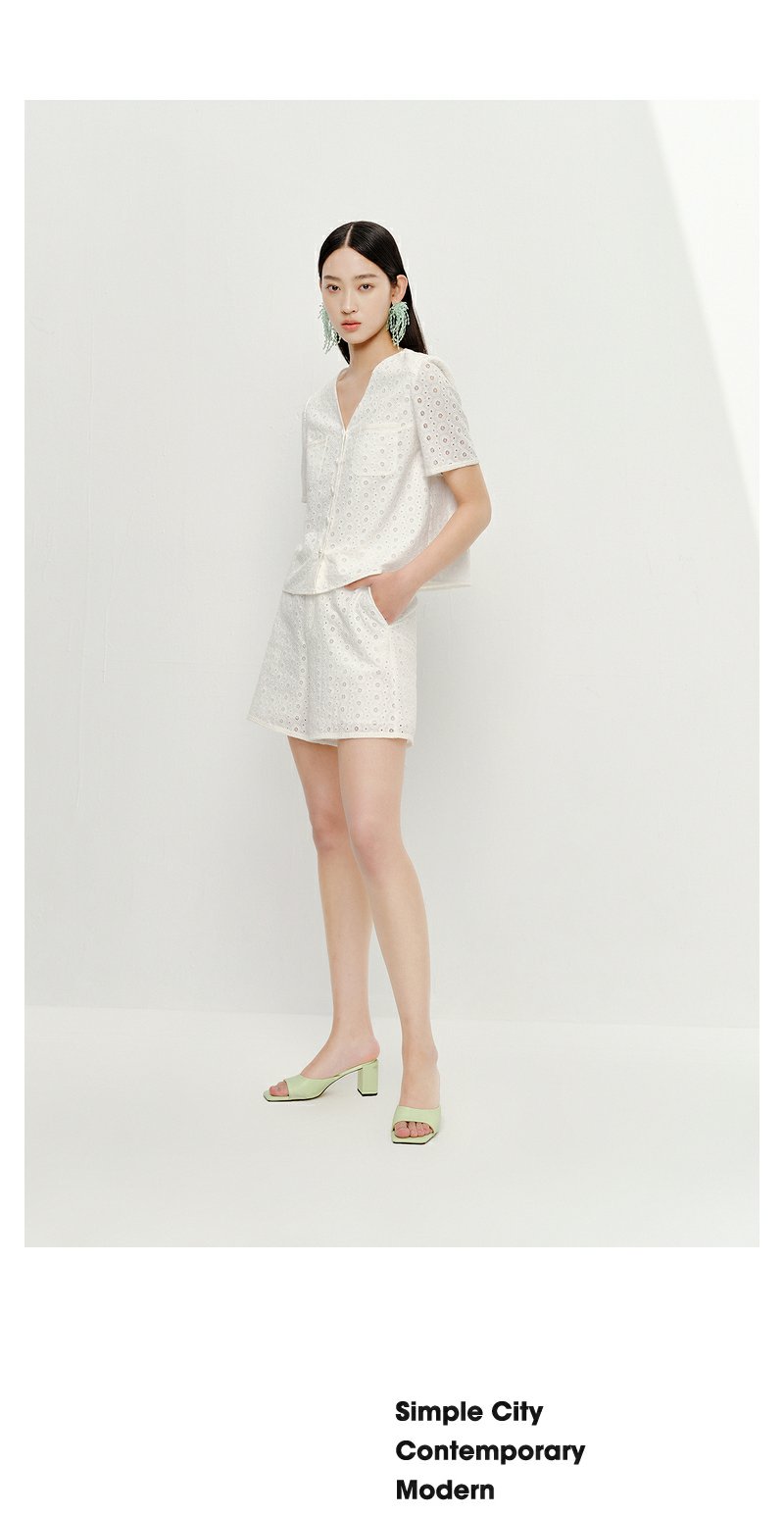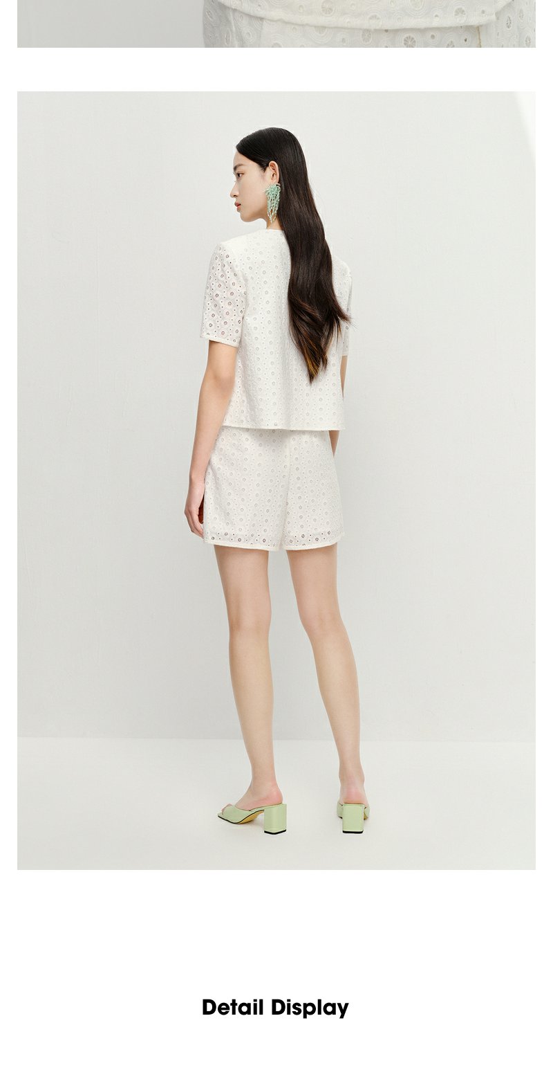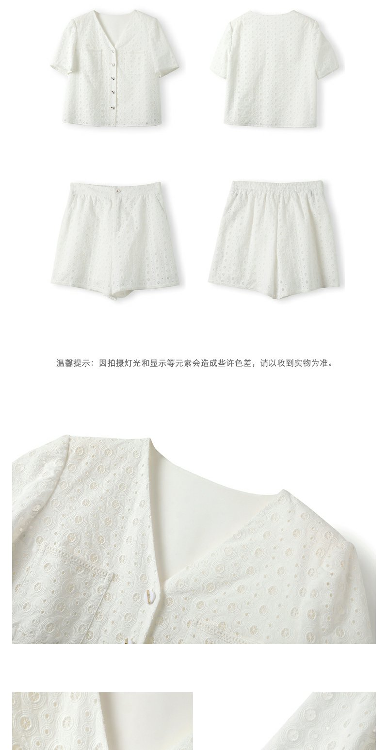 NEELLY纳俪商场同款夏季新款气质V领短袖衬衫女阔腿短裤时尚套装N23051Z01140