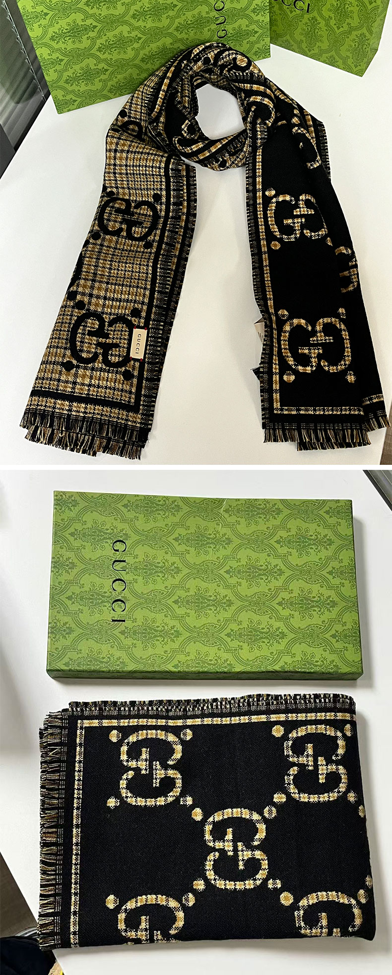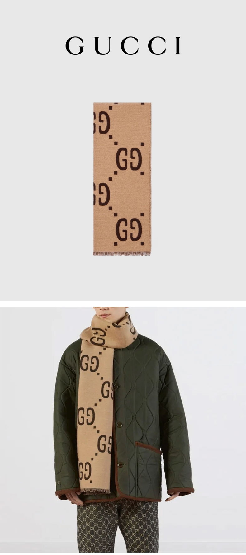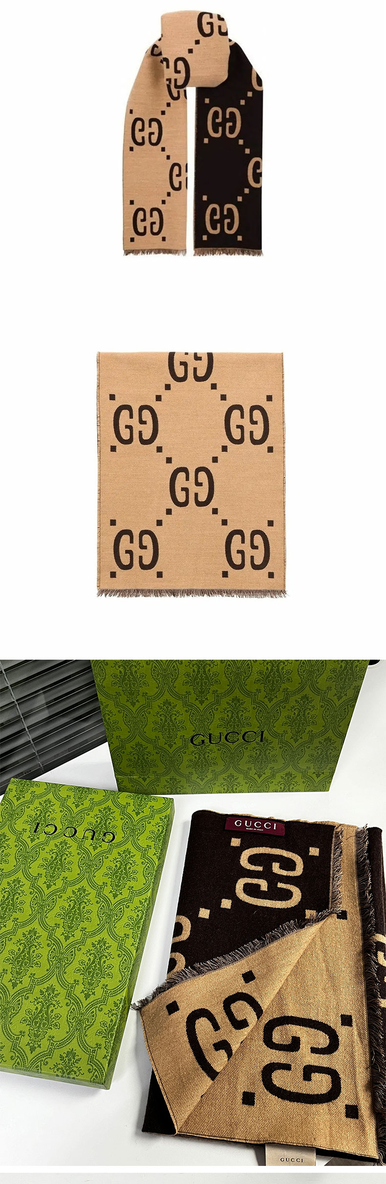 【双12特惠】【送礼盒礼袋】Gucci古驰爆款围巾披肩合集 红色双面色 棕卡双面色 卡其色