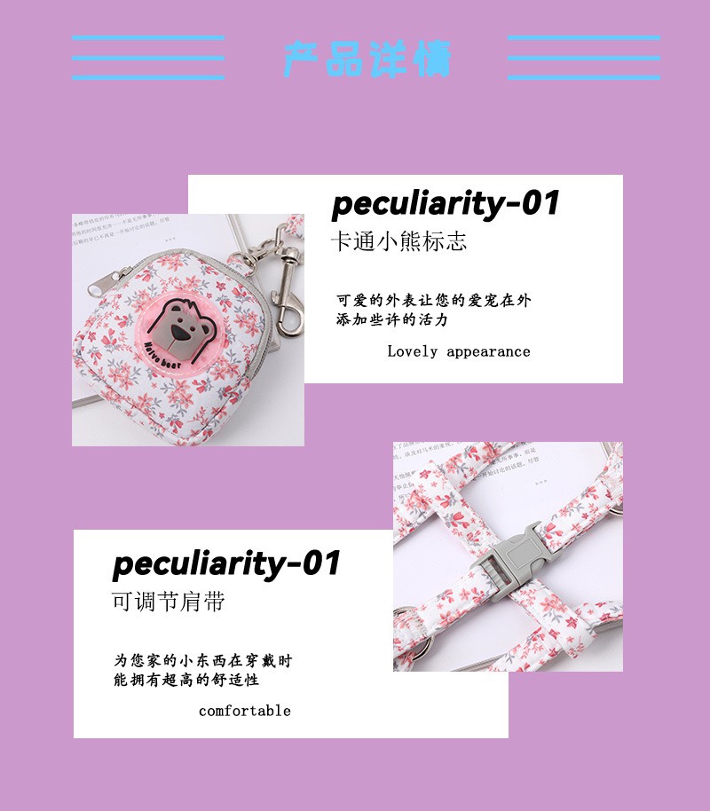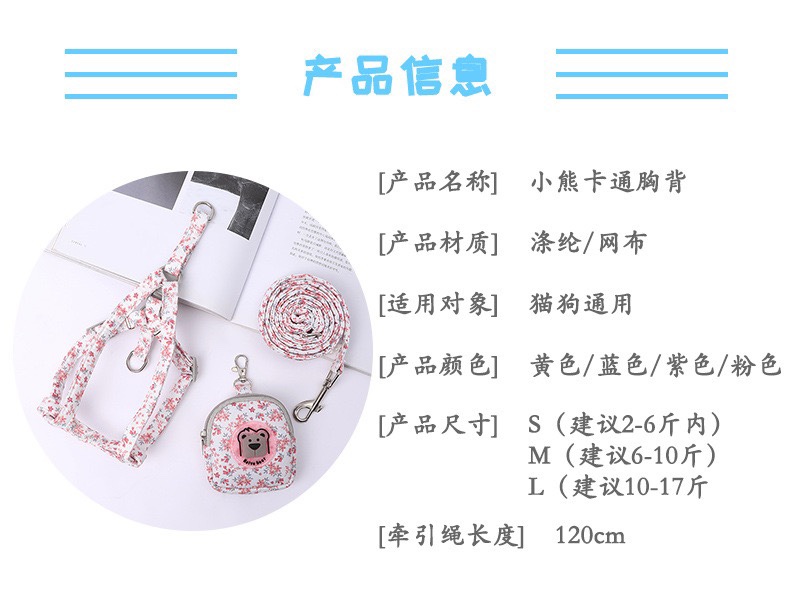 宠物夜光挂包胸背 猫咪狗狗牵引绳 工字型背心 可调节 无项圈