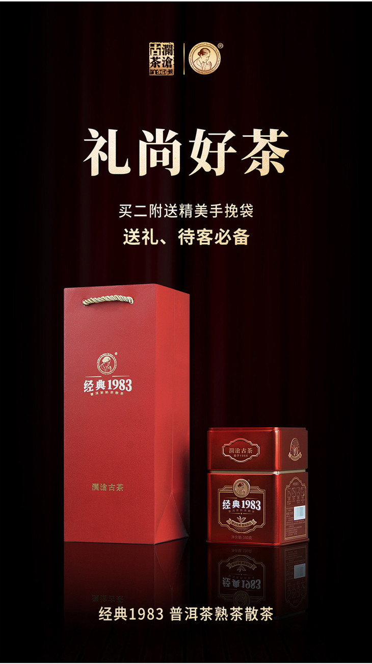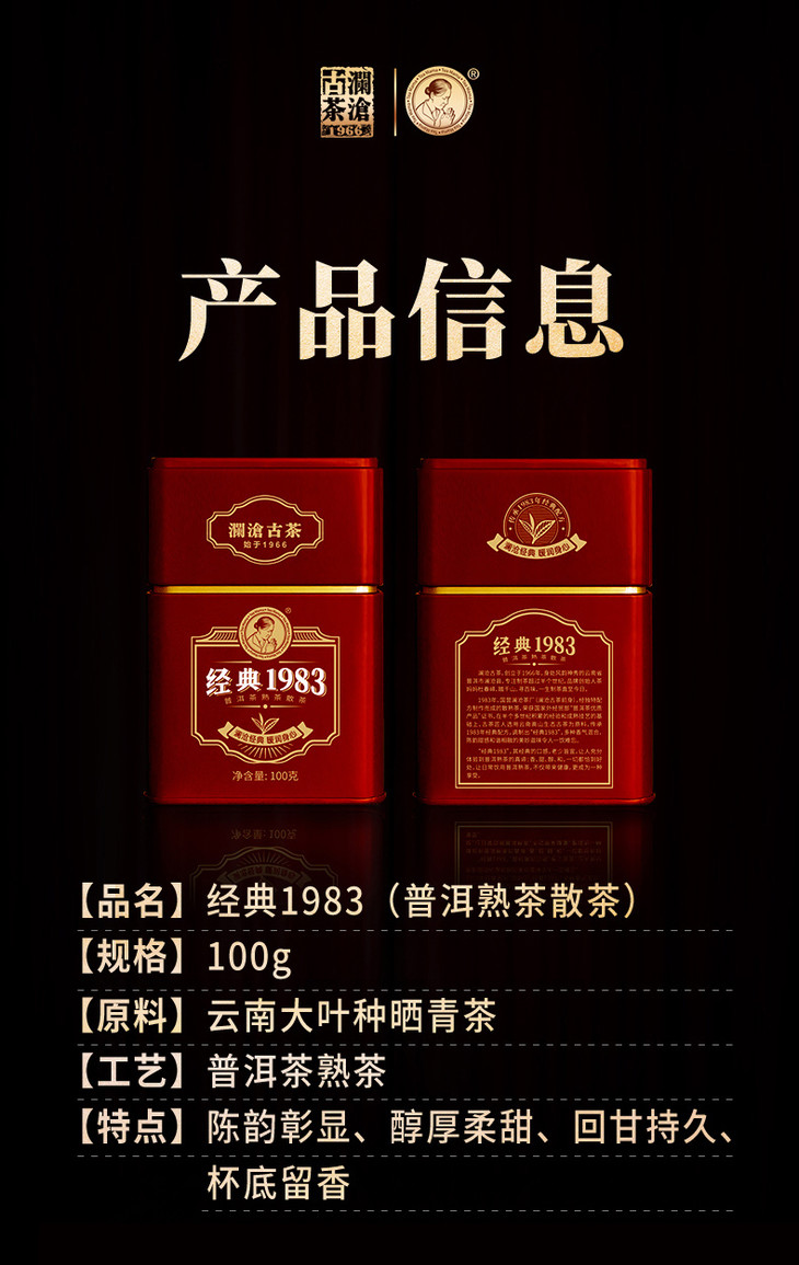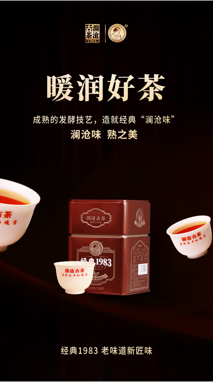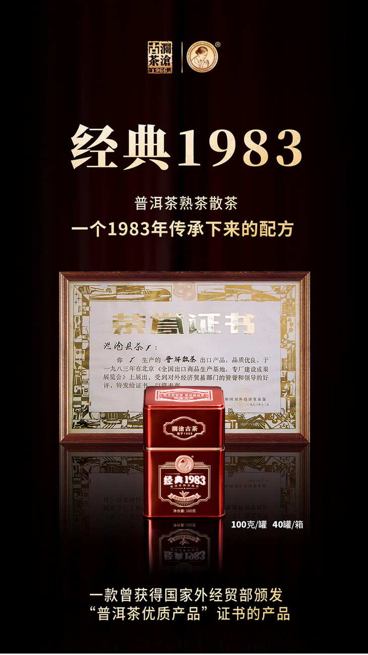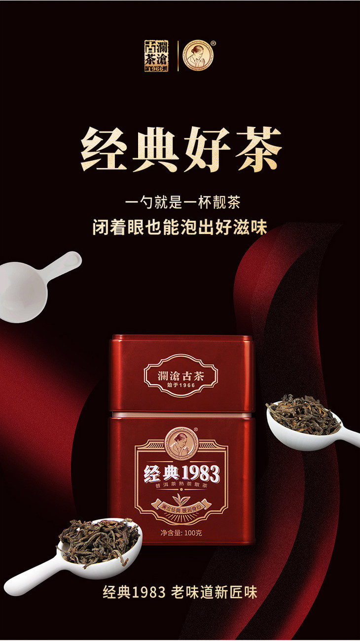 澜沧古茶经典1983散茶普洱茶熟茶云南茶叶熟普便携罐装100g
