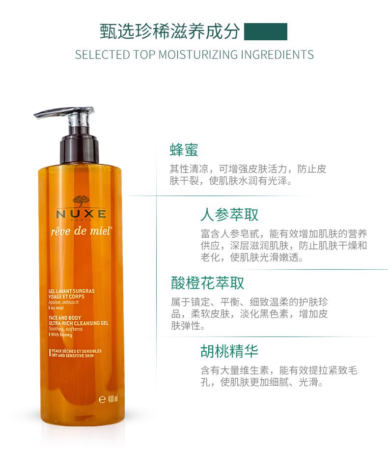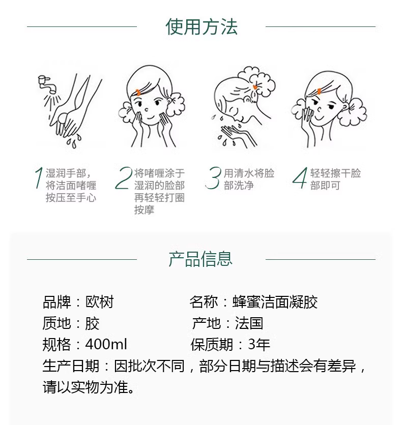 欧树蜂蜜洋槐花洁面凝胶400ml 保湿滋润温和清洁
